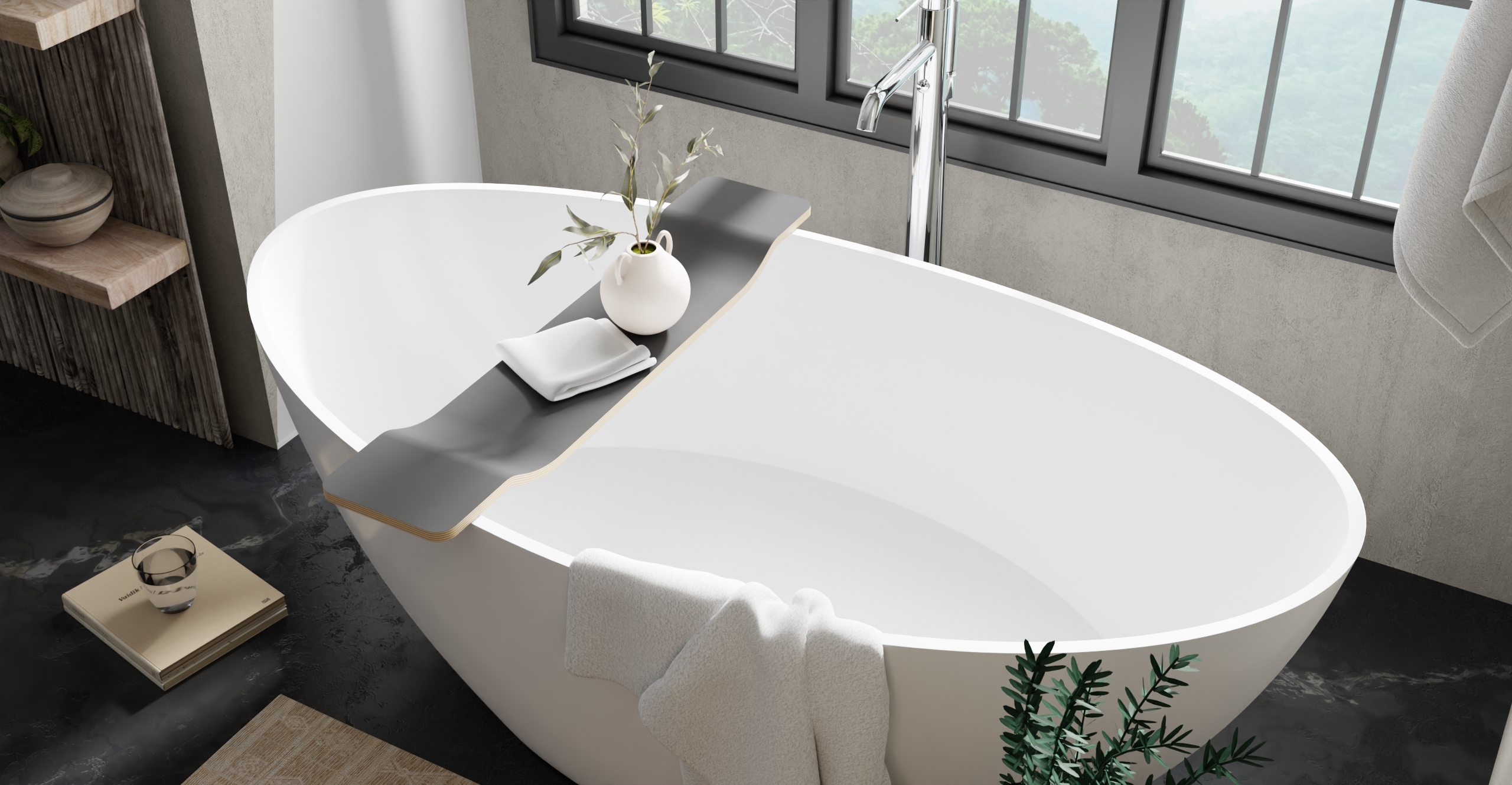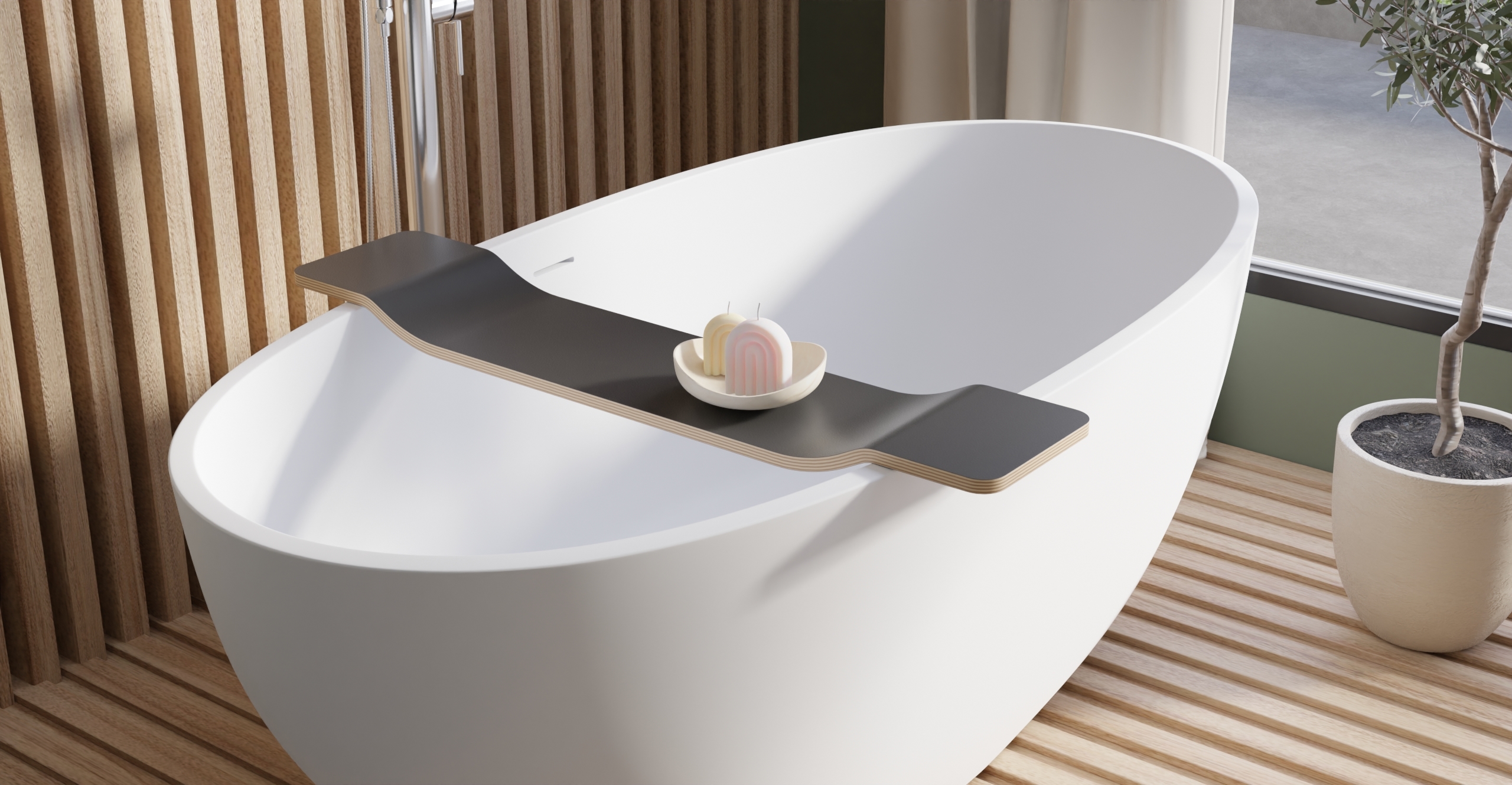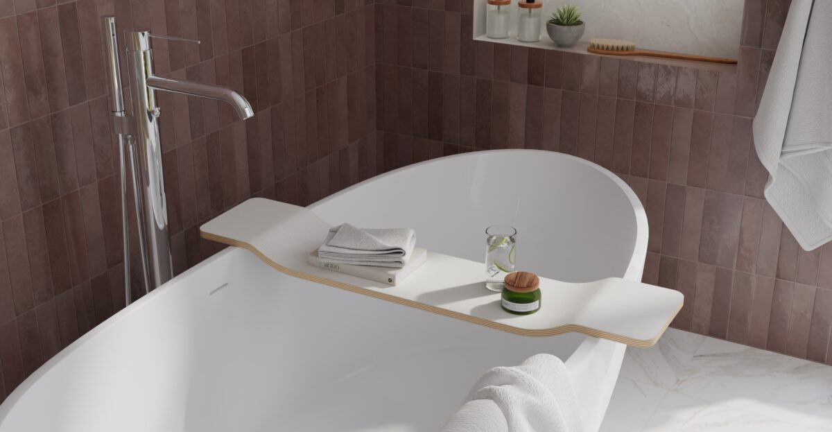 Meet the newest BadeloftBathtub Caddy – a slim, sculpted tray that keeps your book, tablet, candle, or tea right where you want them. The low profile sits securely on the rim of our freestanding tubs, adding spa-level function without visual clutter. Available in Black, White, Natural, and Walnut to match any bathroom palette.