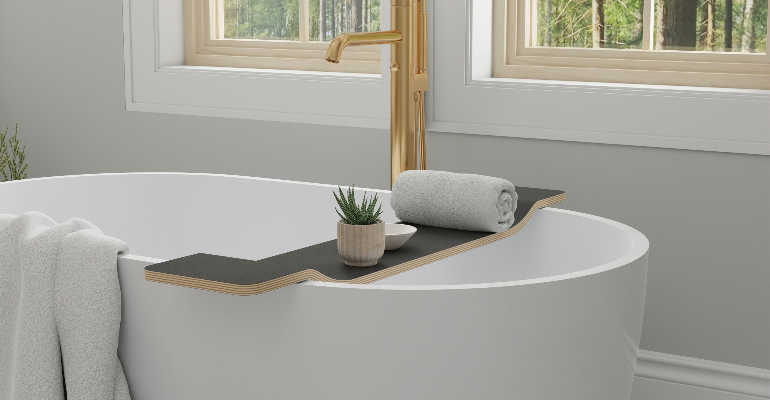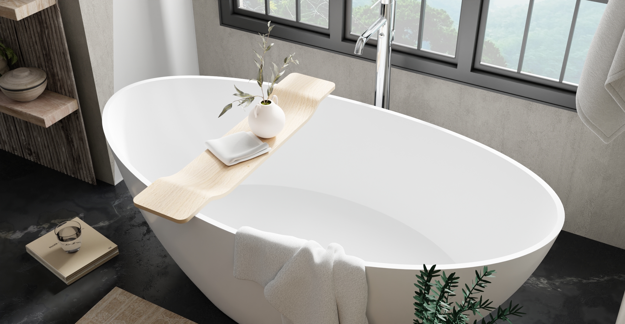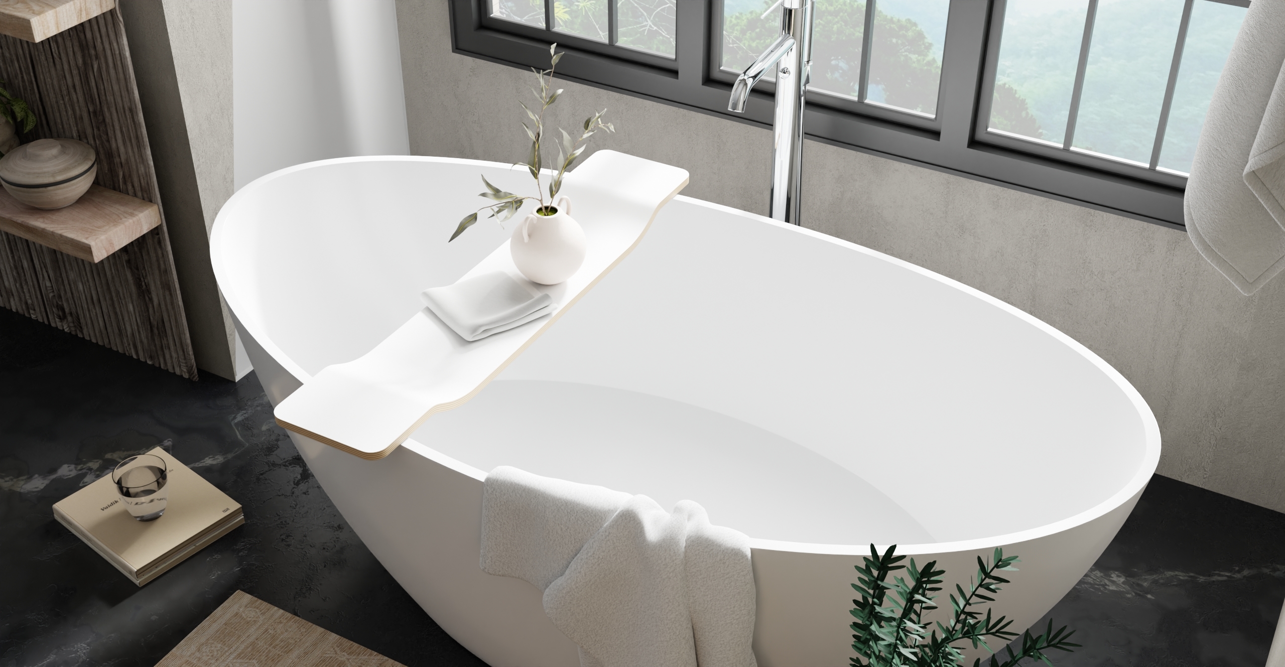 Meet the newest BadeloftBathtub Caddy – a slim, sculpted tray that keeps your book, tablet, candle, or tea right where you want them. The low profile sits securely on the rim of our freestanding tubs, adding spa-level function without visual clutter. Available in Black, White, Natural, and Walnut to match any bathroom palette.