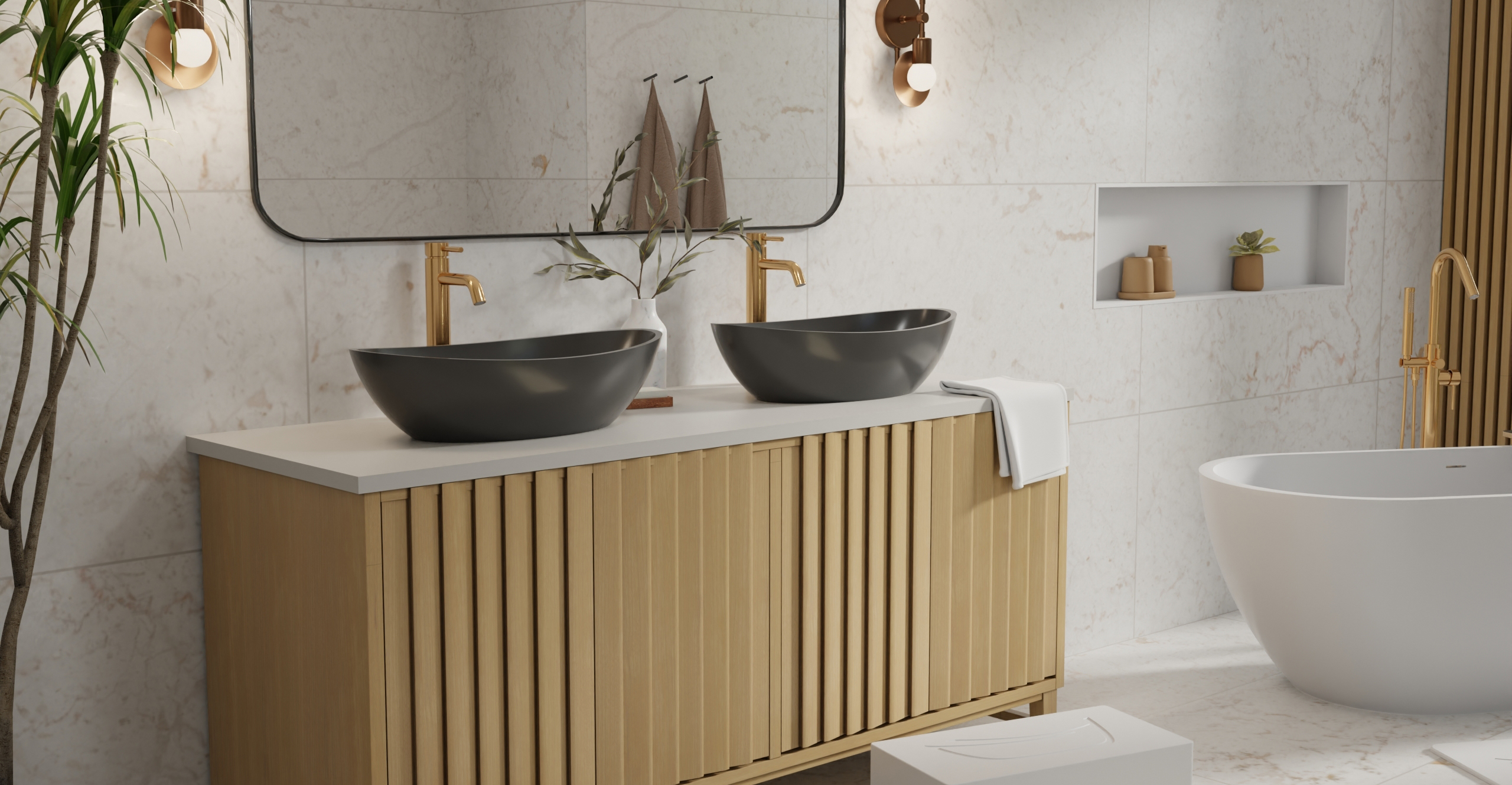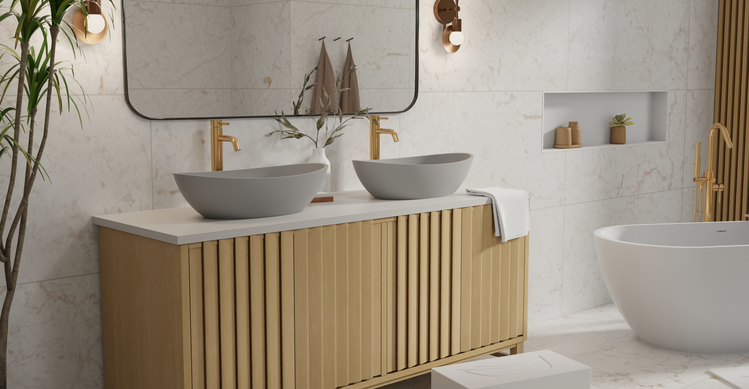 Envision your luxury bathroom with free templates and samples of Badeloft’s stone resin material.