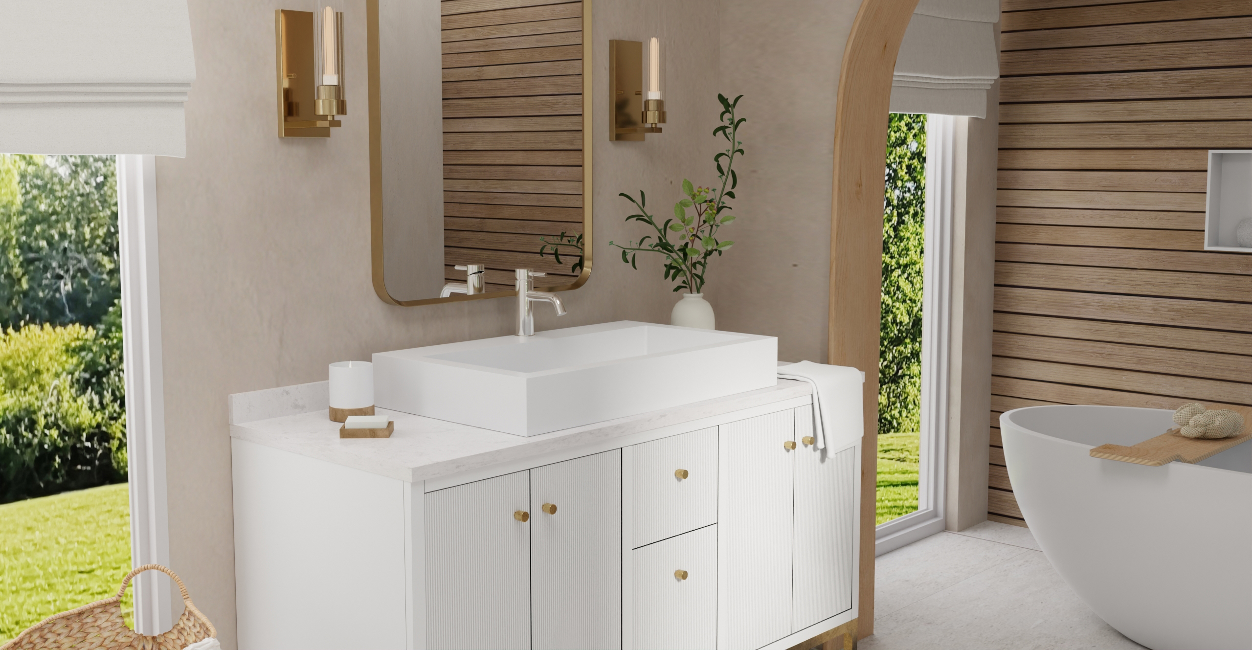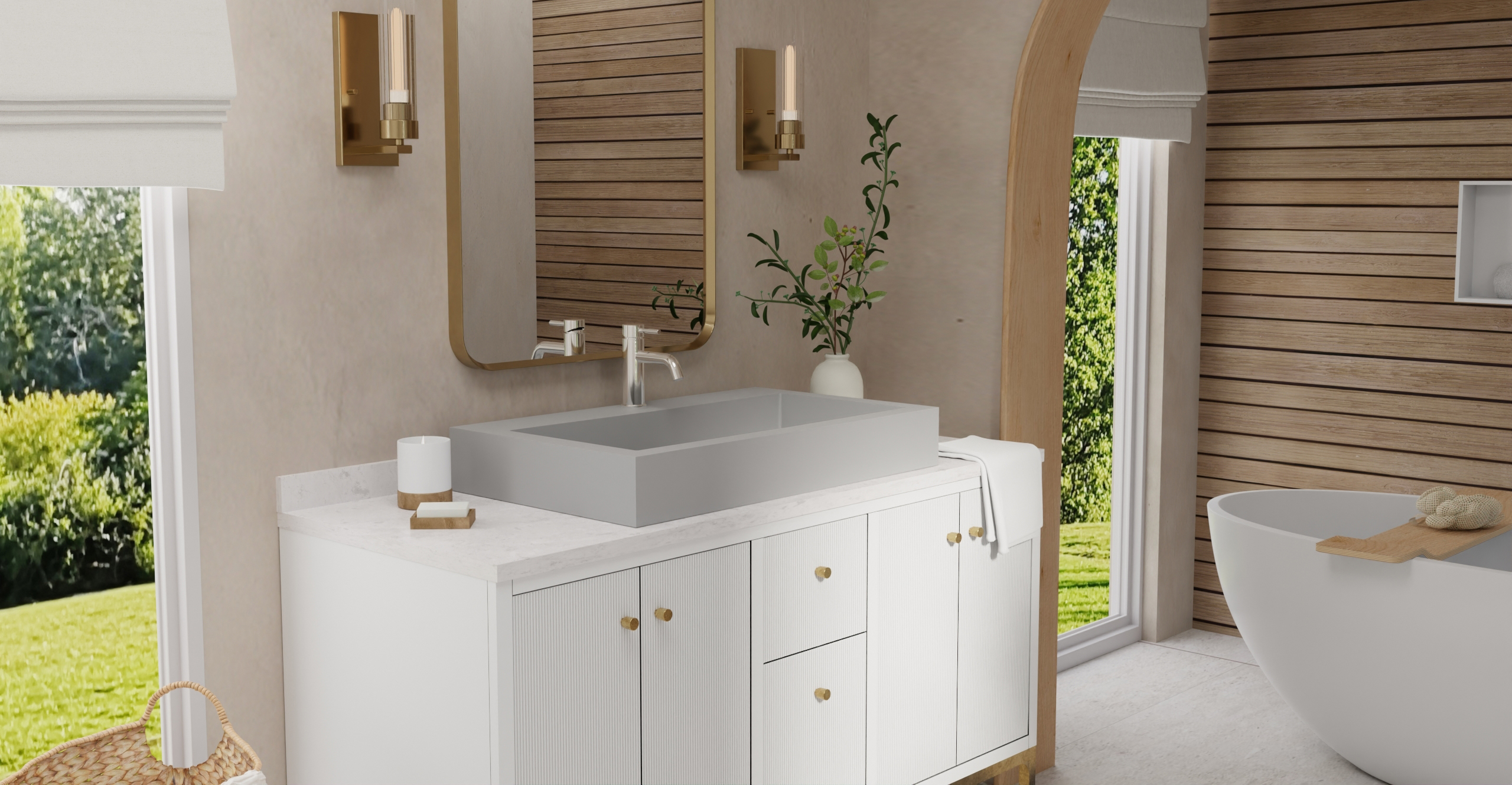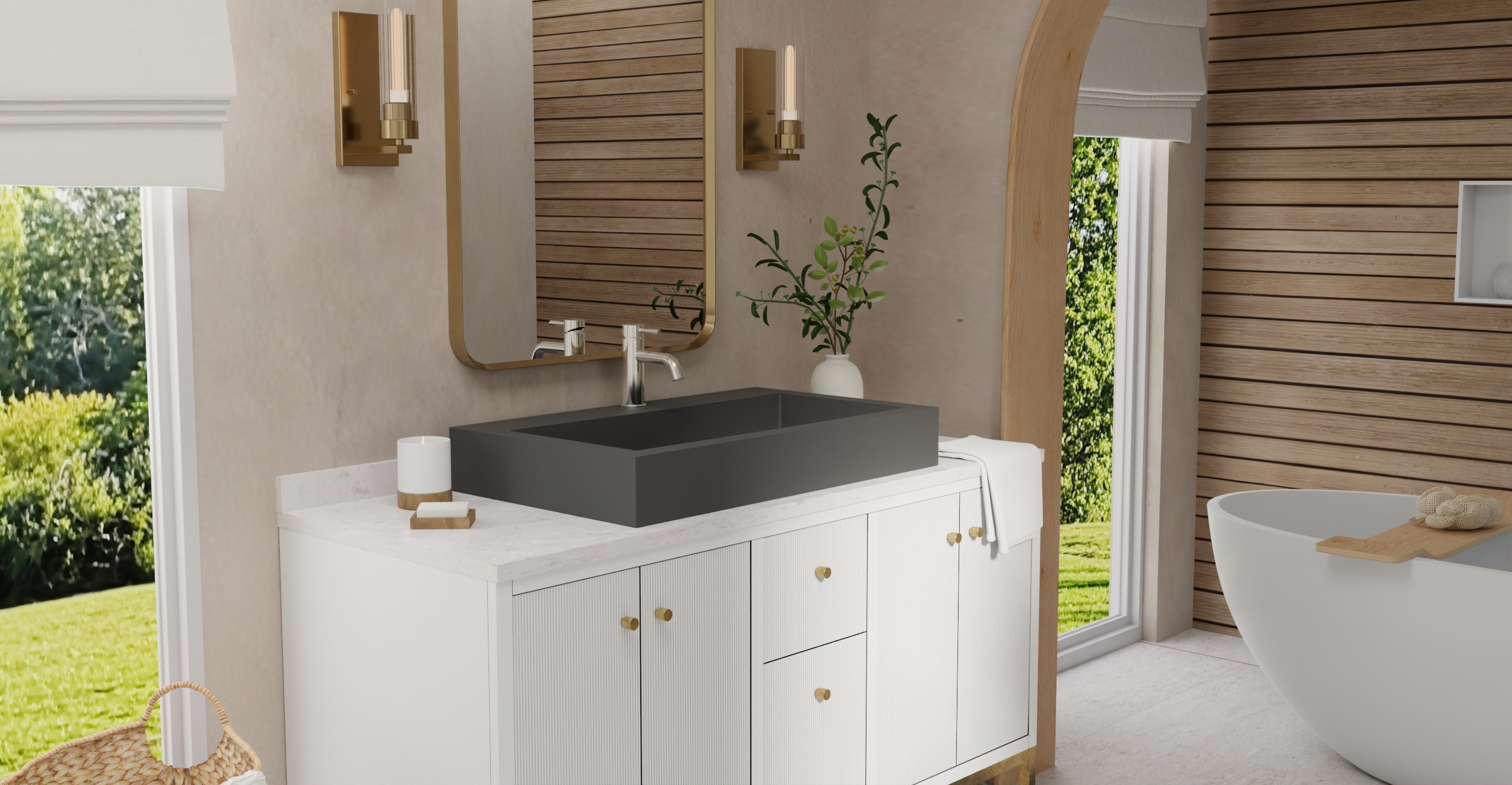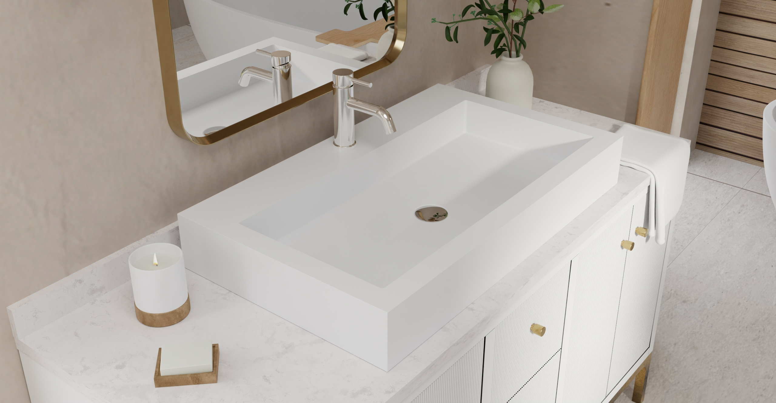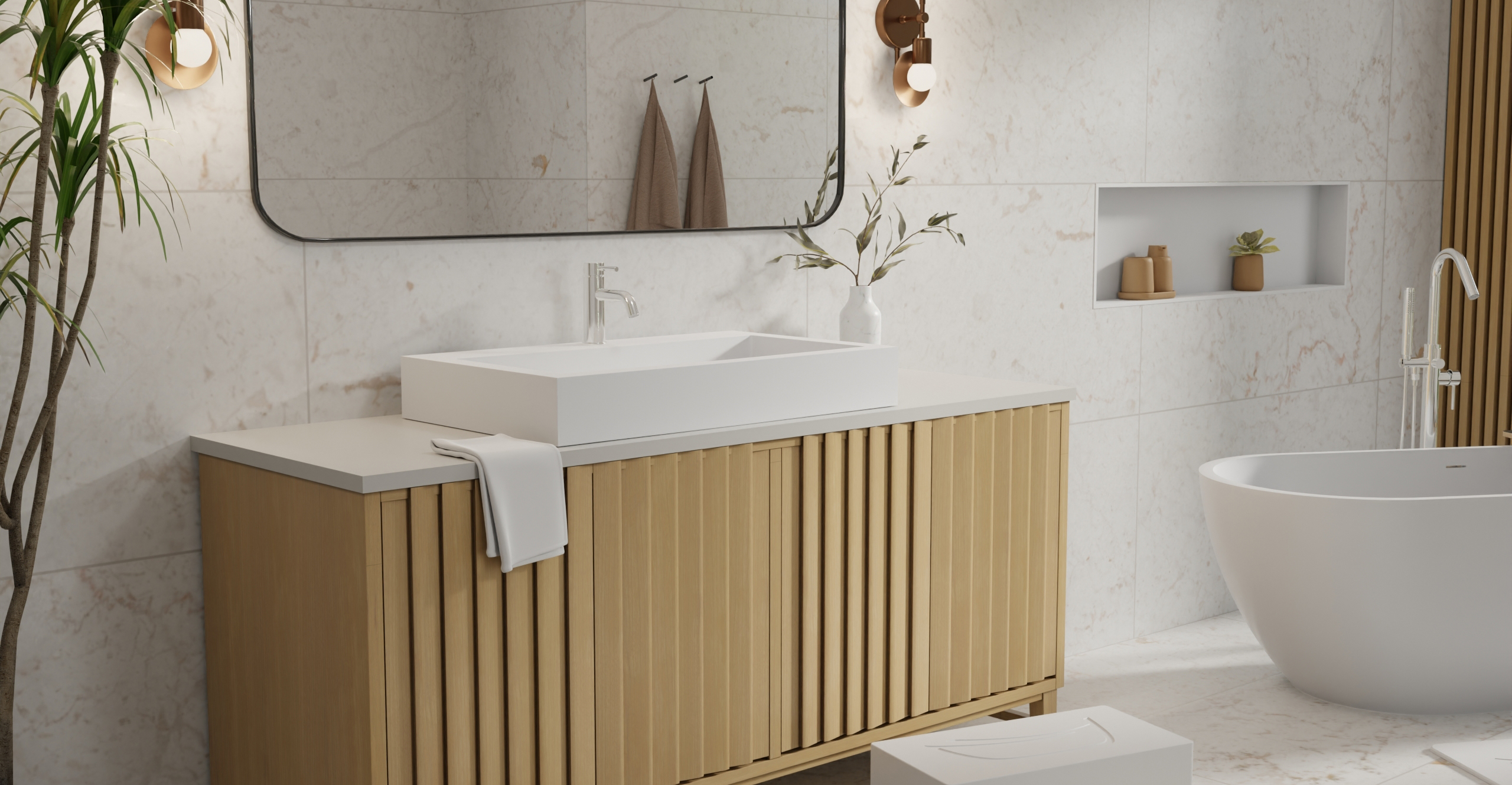 Envision your luxury bathroom with free templates and samples of Badeloft’s stone resin material.