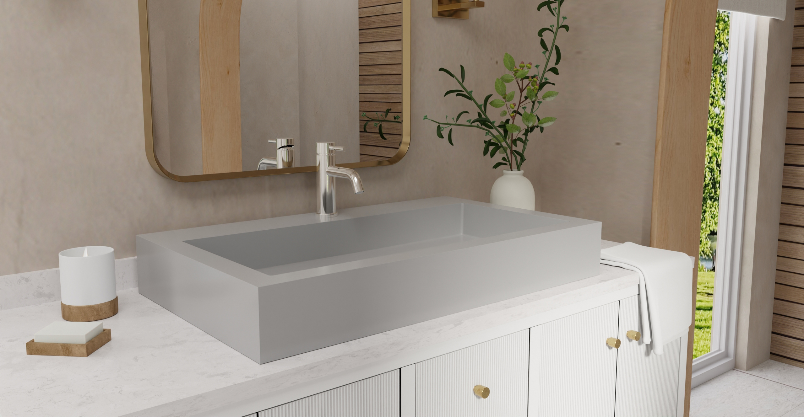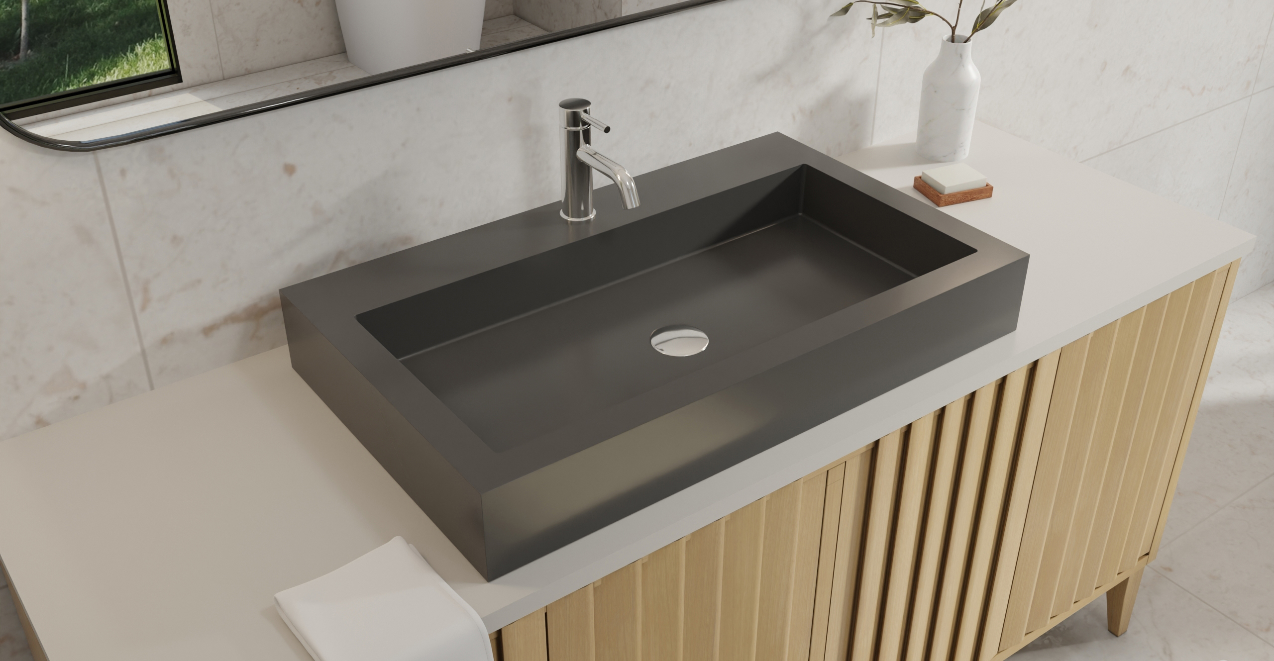 Envision your luxury bathroom before you spend a dime with free templates and samples of Badeloft’s exclusive stone resin material