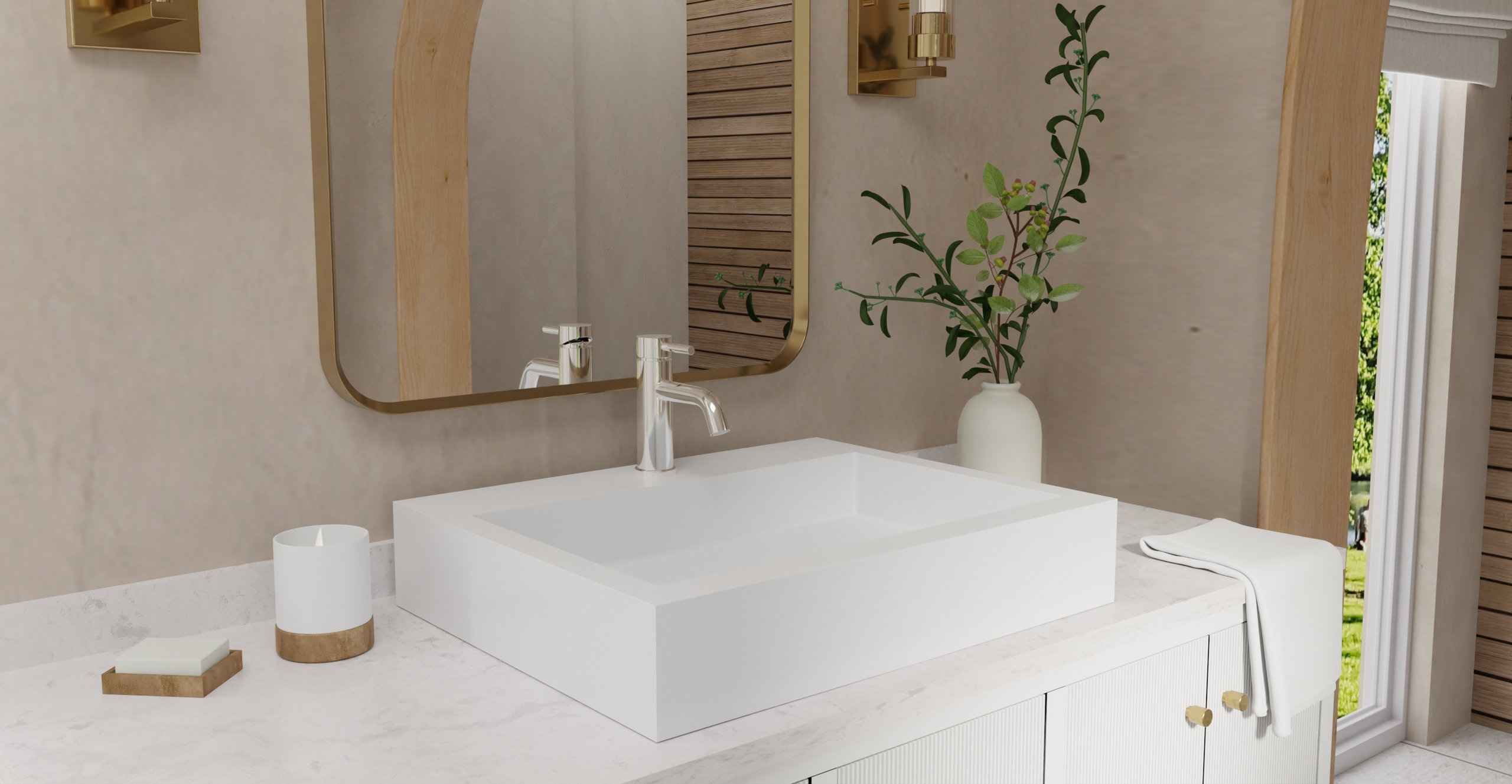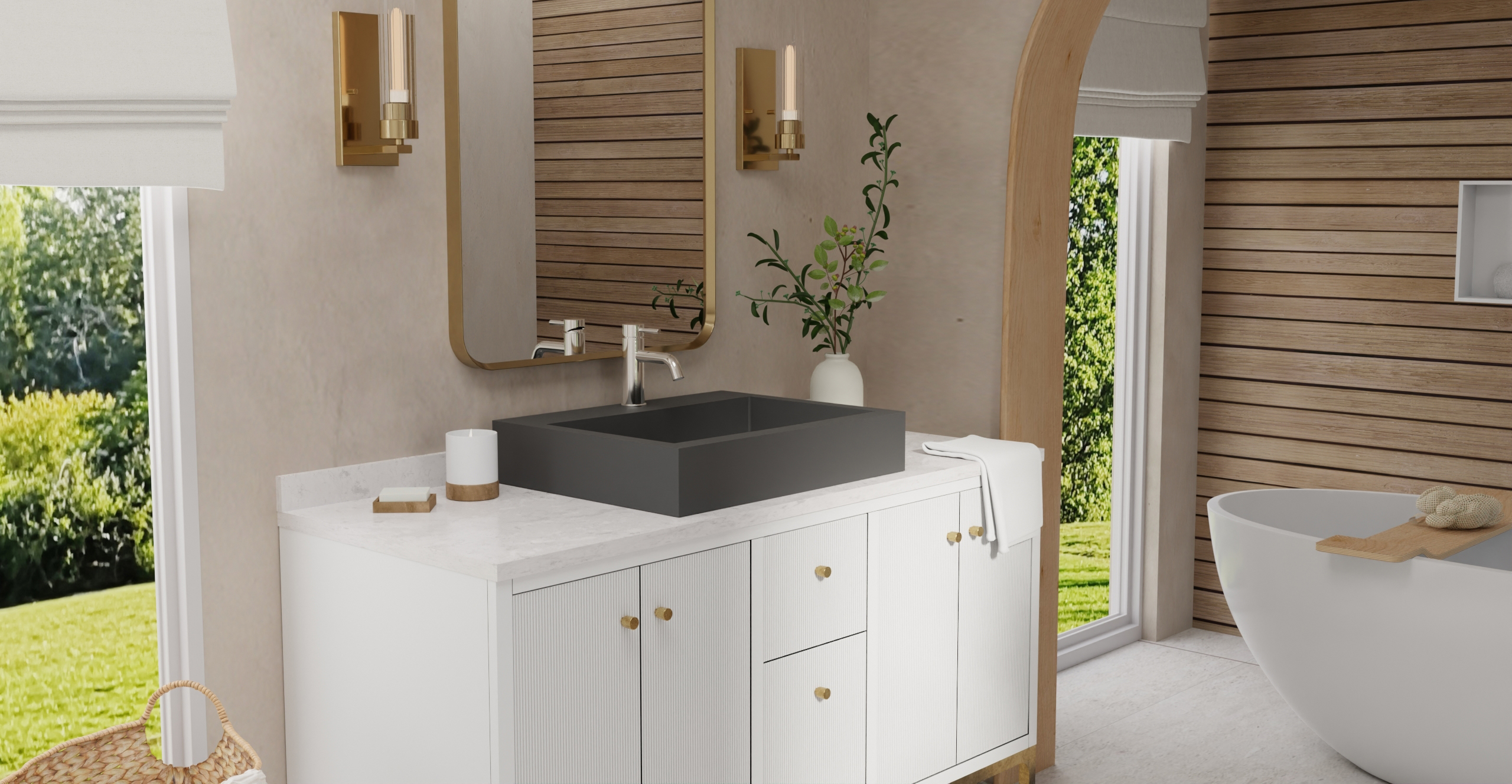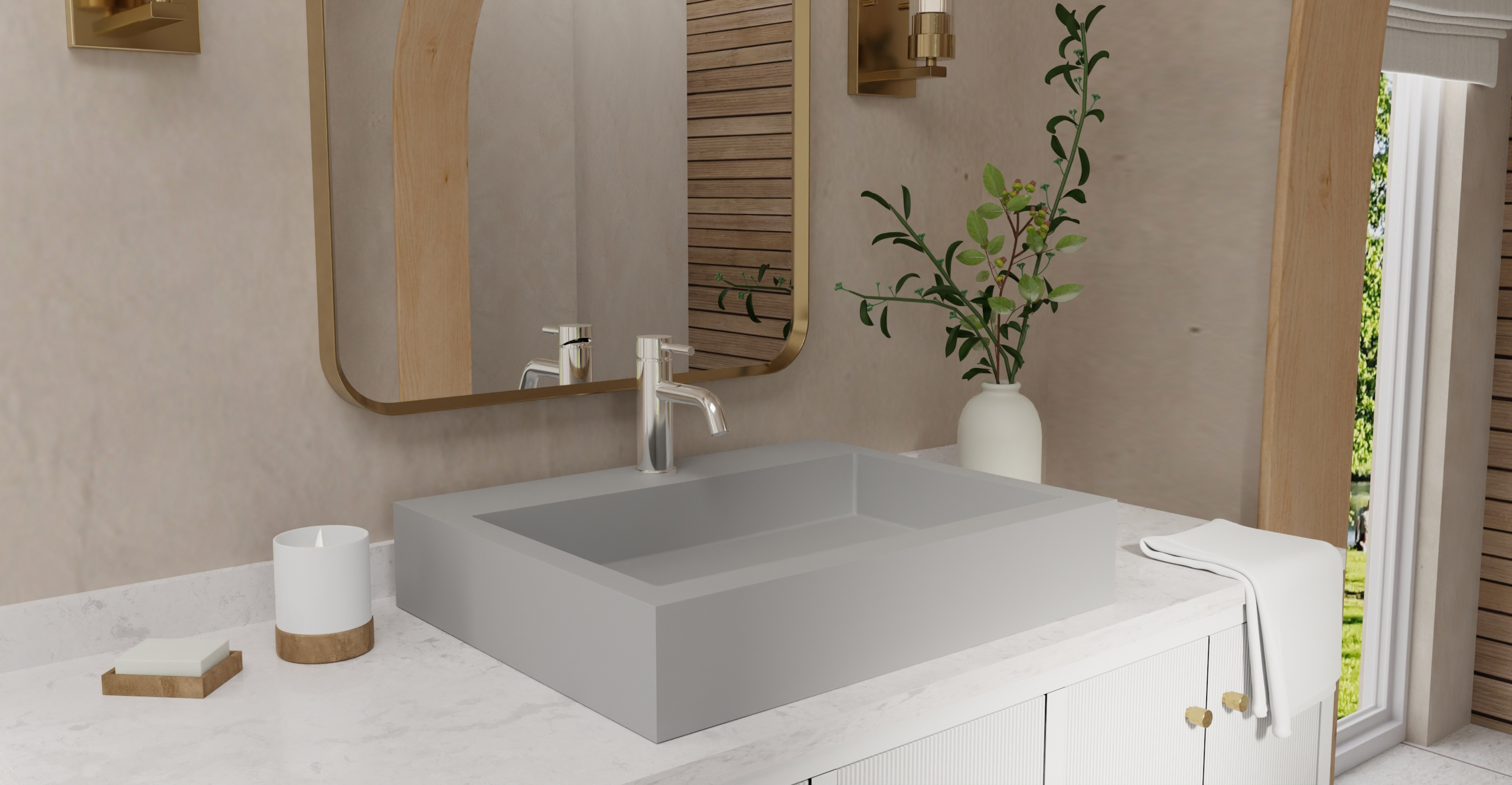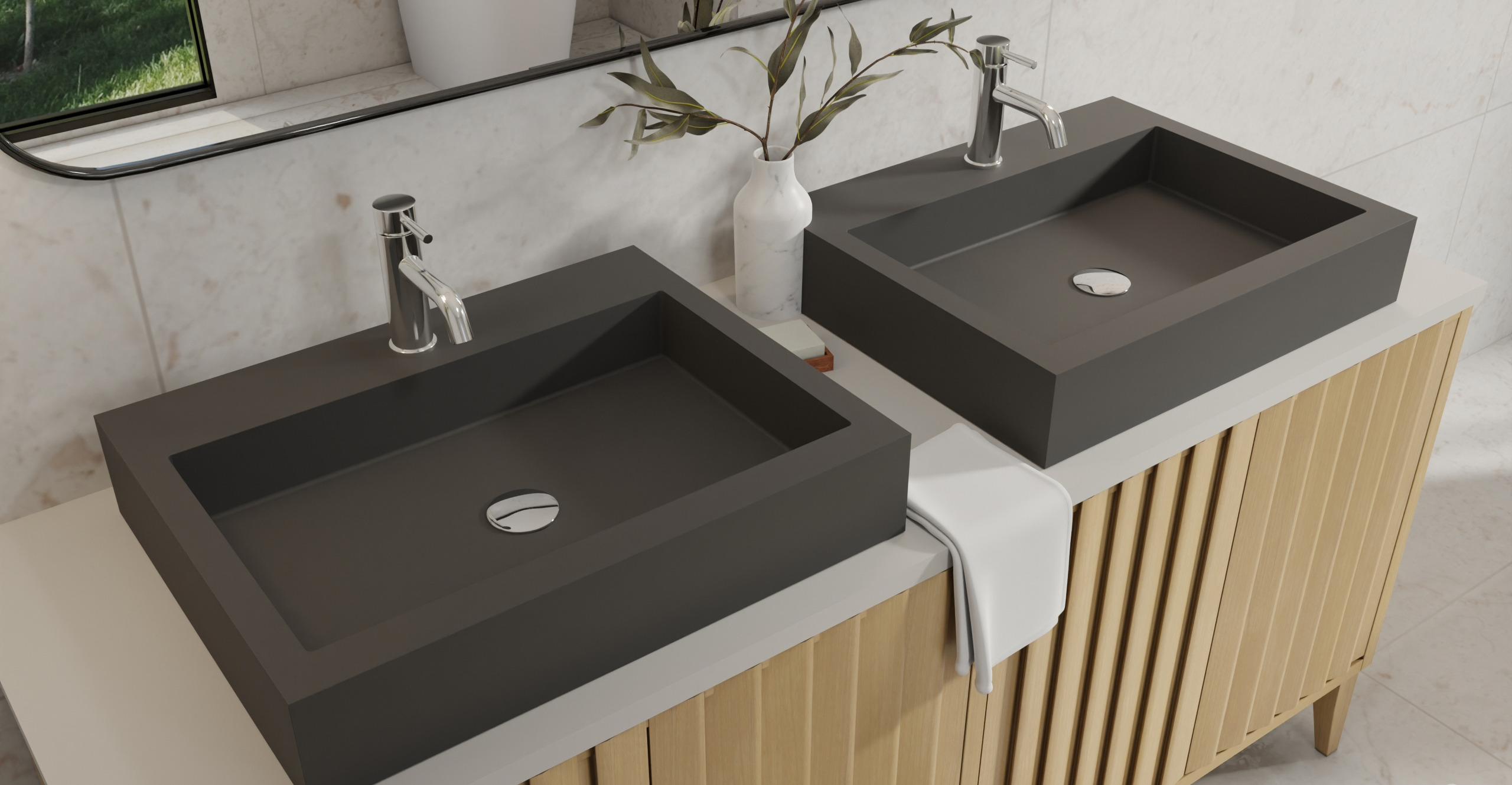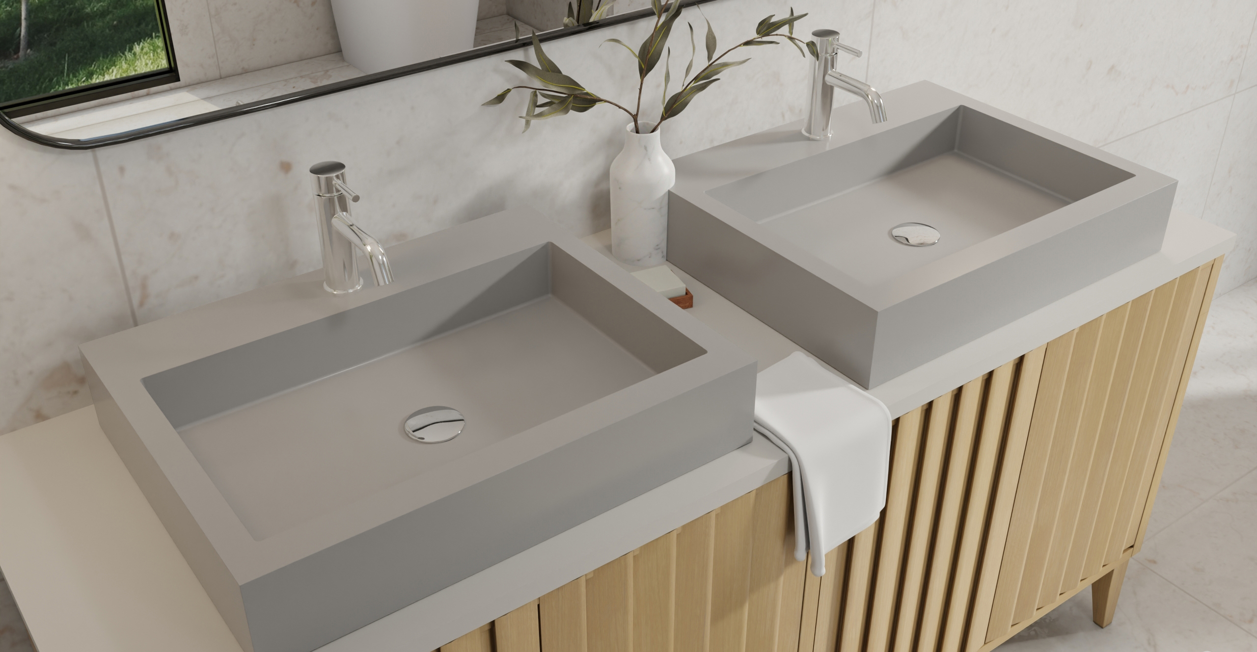 Envision your luxury bathroom with free templates and samples of Badeloft’s stone resin material.