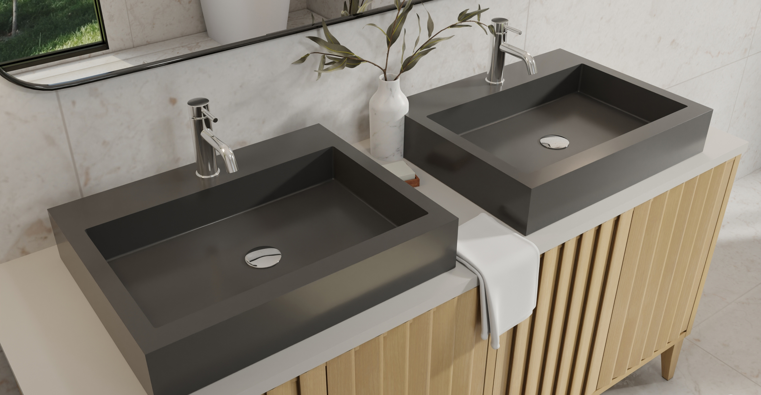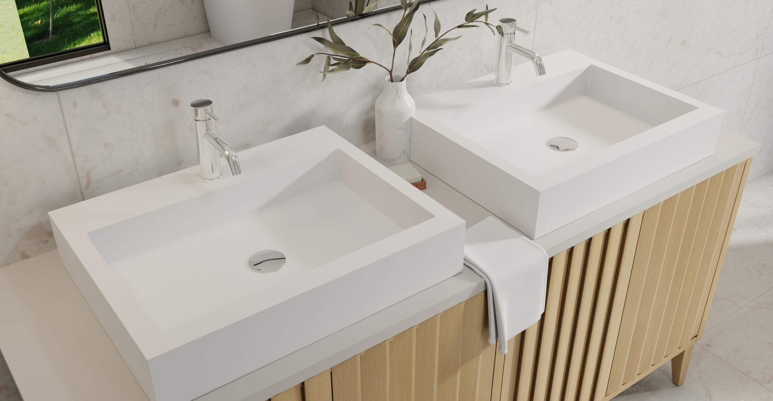 Badeloft countertop sinks are crafted from premium stone resin or SUS 304 stainless steel, offering durability and elegance for modern and classic bathrooms alike. Stone resin provides a seamless, non-porous surface that resists stains and scratches, while our stainless steel models feature a PVD coating for enhanced corrosion and rust resistance. Both materials ensure long-lasting performance and a sleek, refined aesthetic.