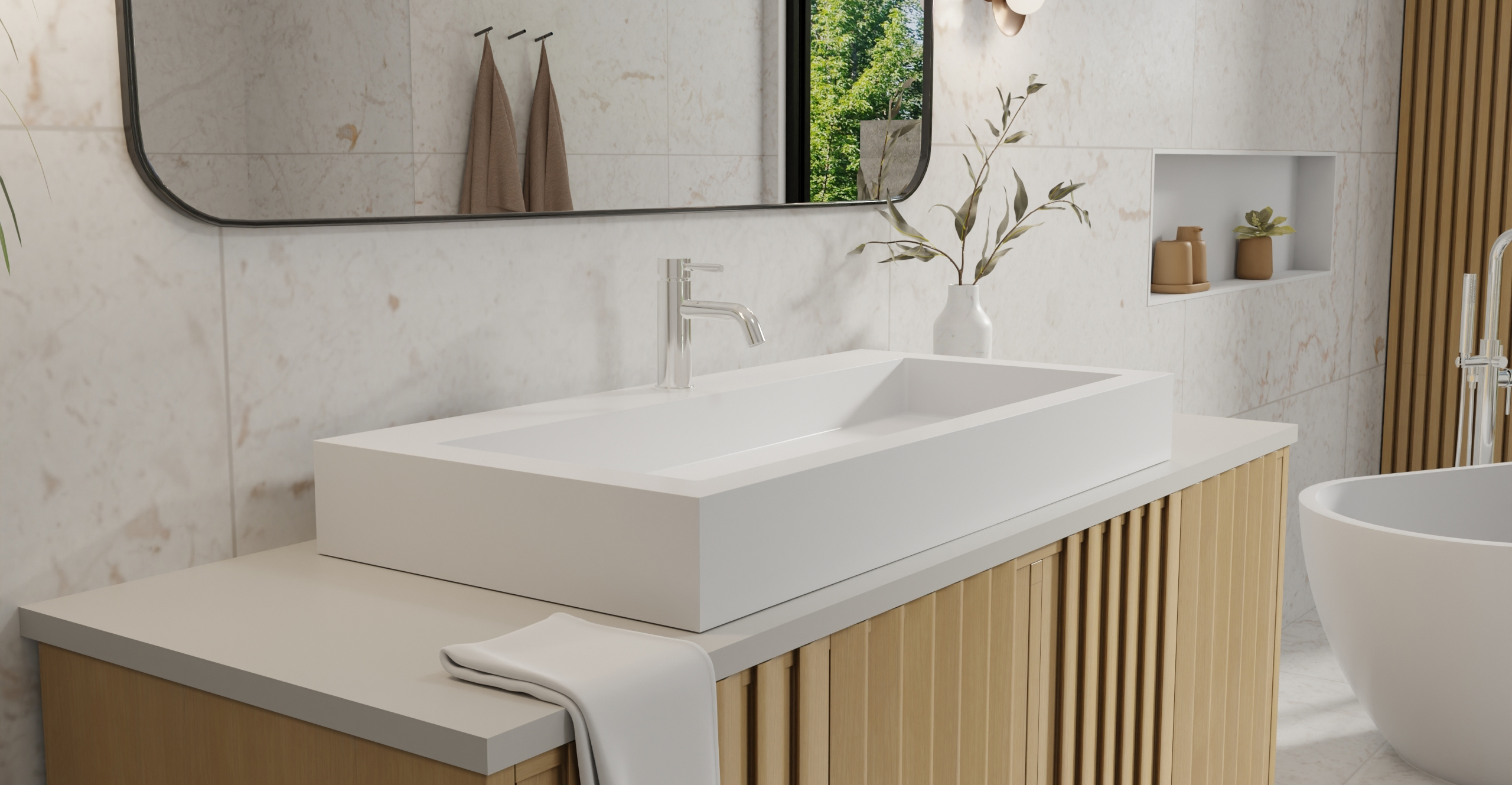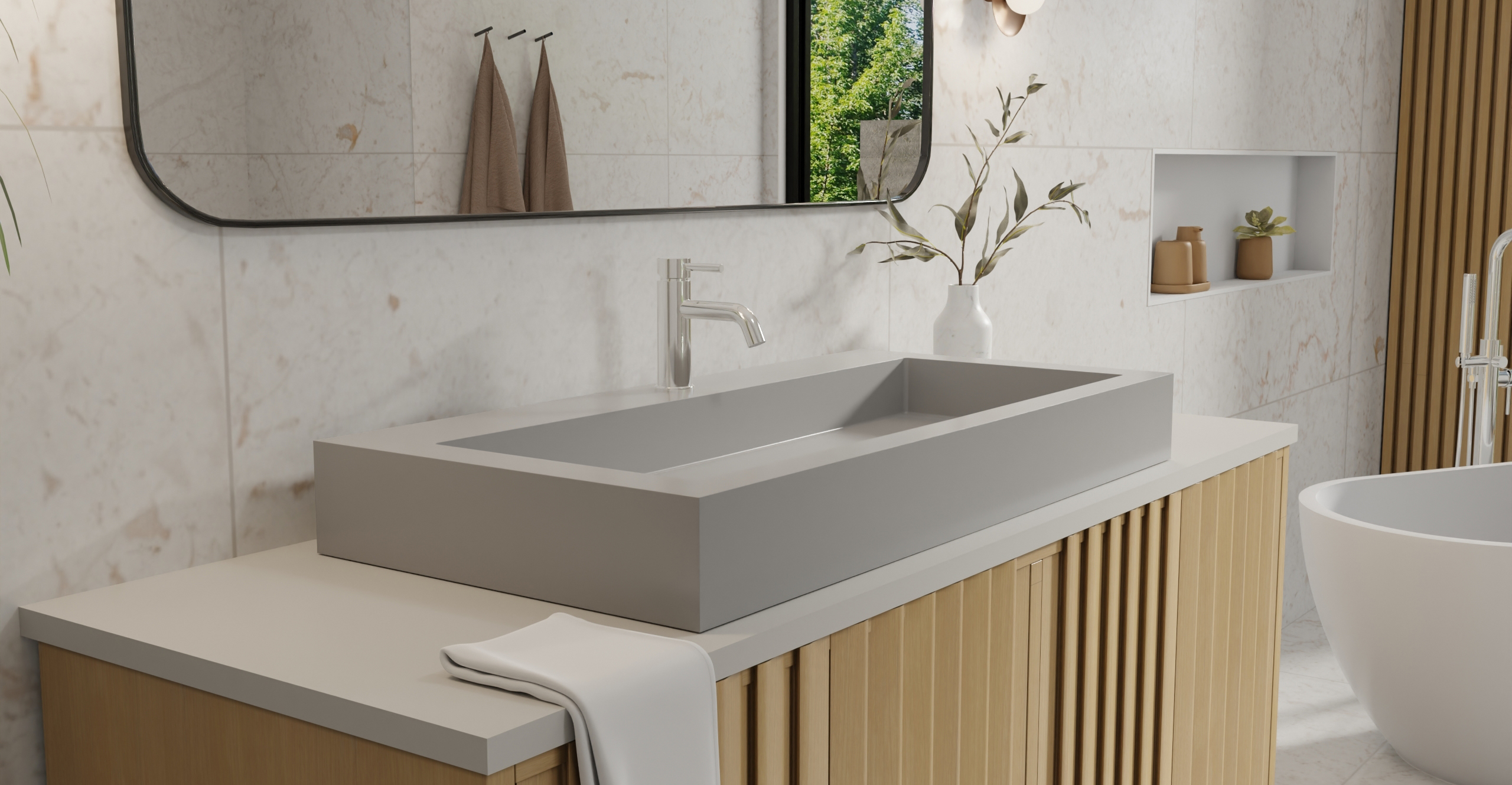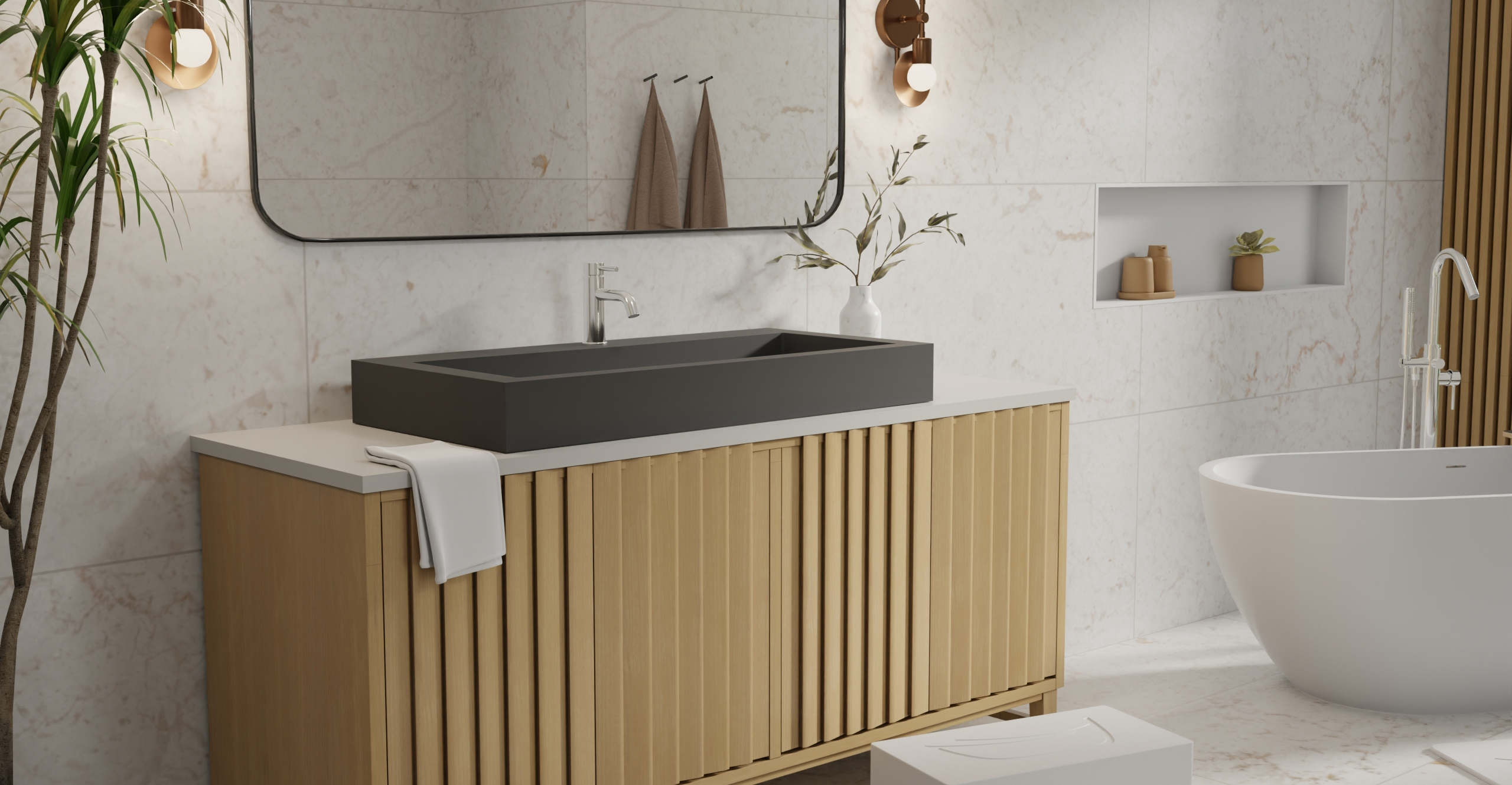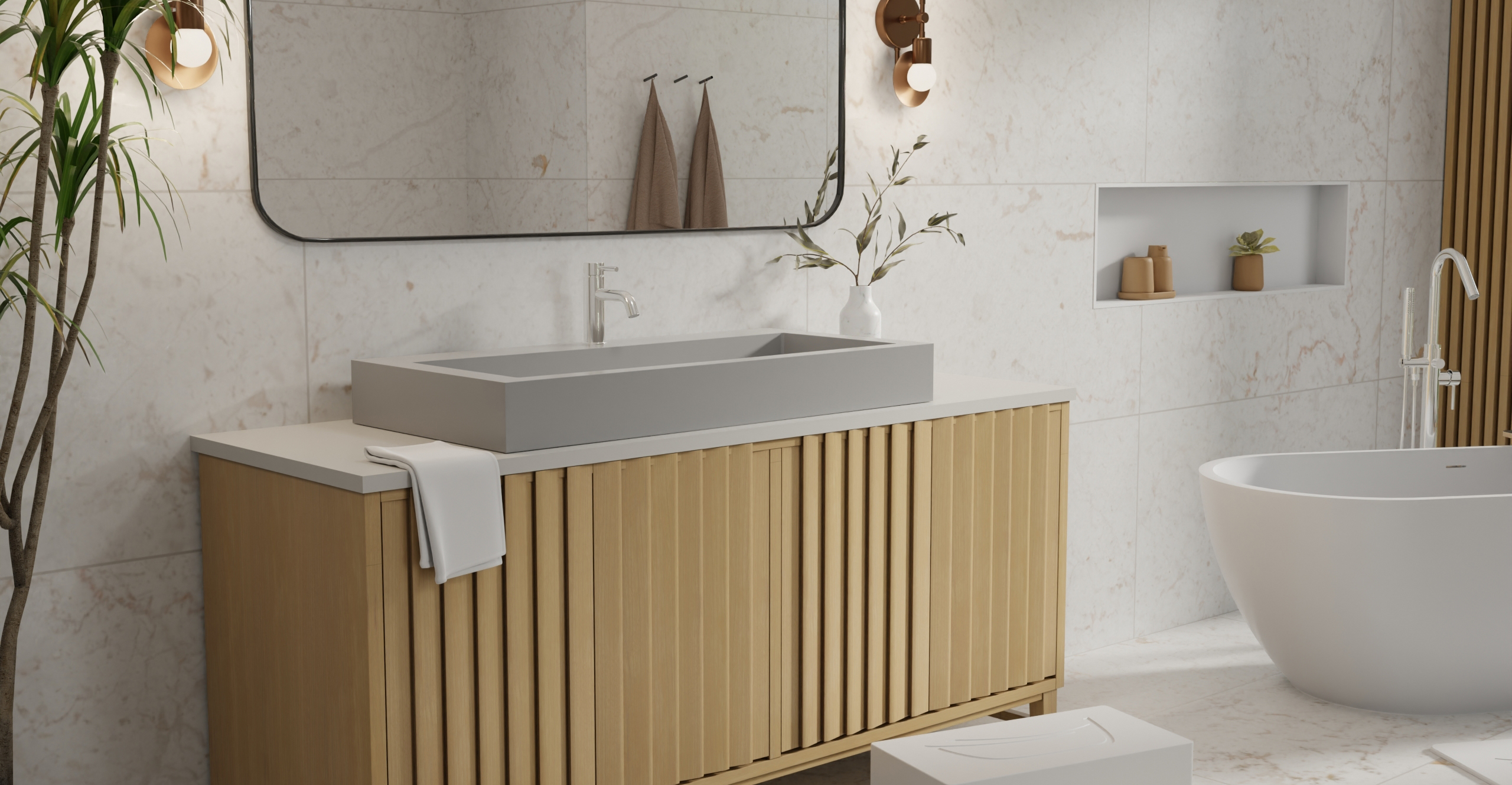 Envision your luxury bathroom with free templates and samples of Badeloft’s stone resin material.