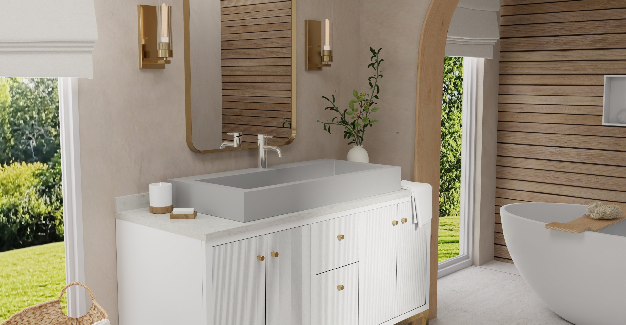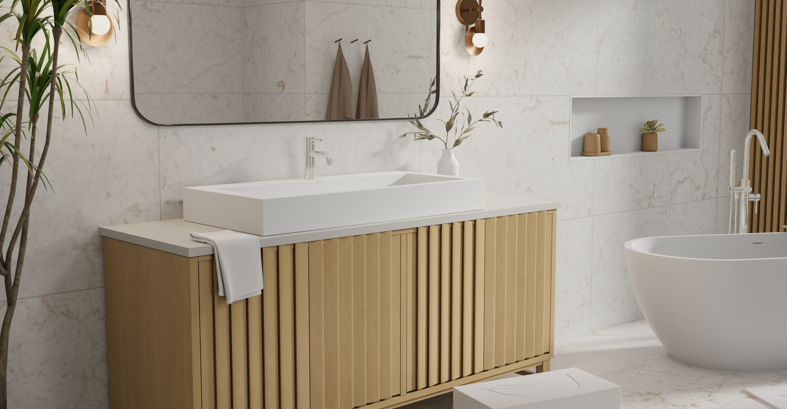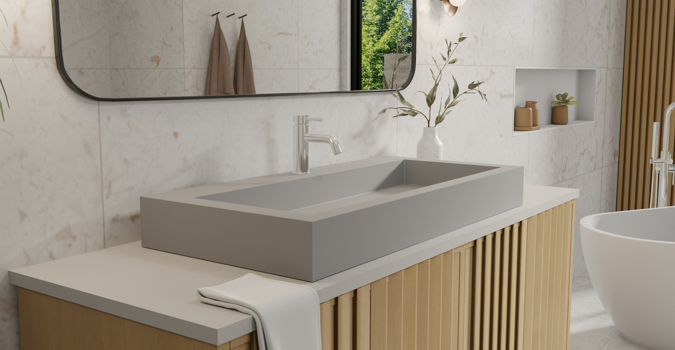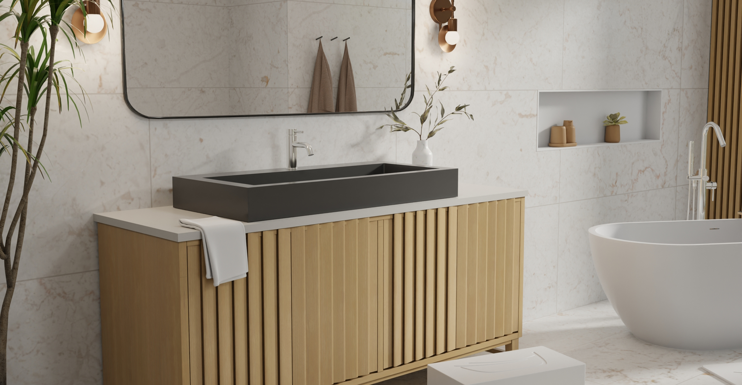 Envision your luxury bathroom with free templates and samples of Badeloft’s stone resin material.
