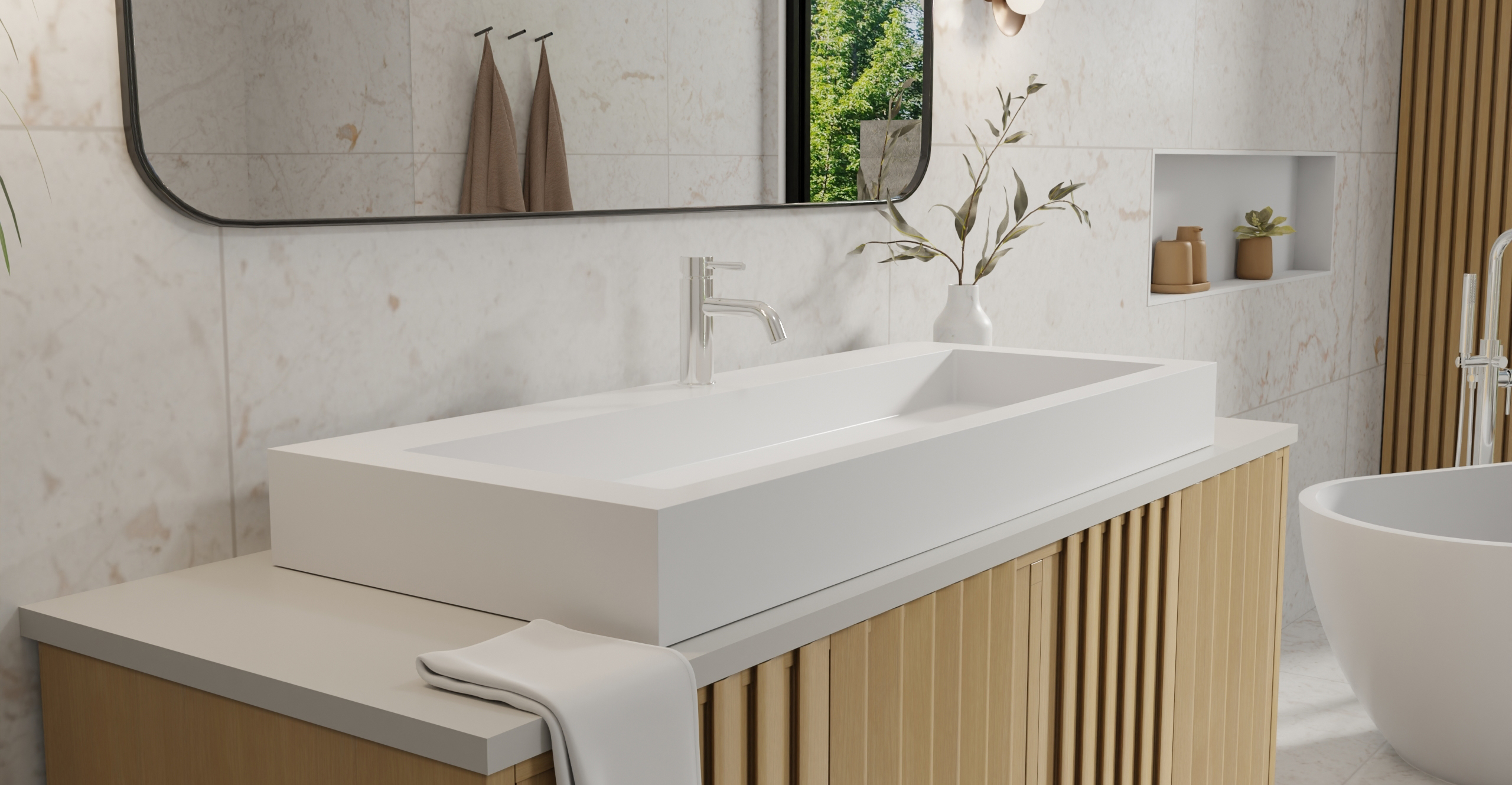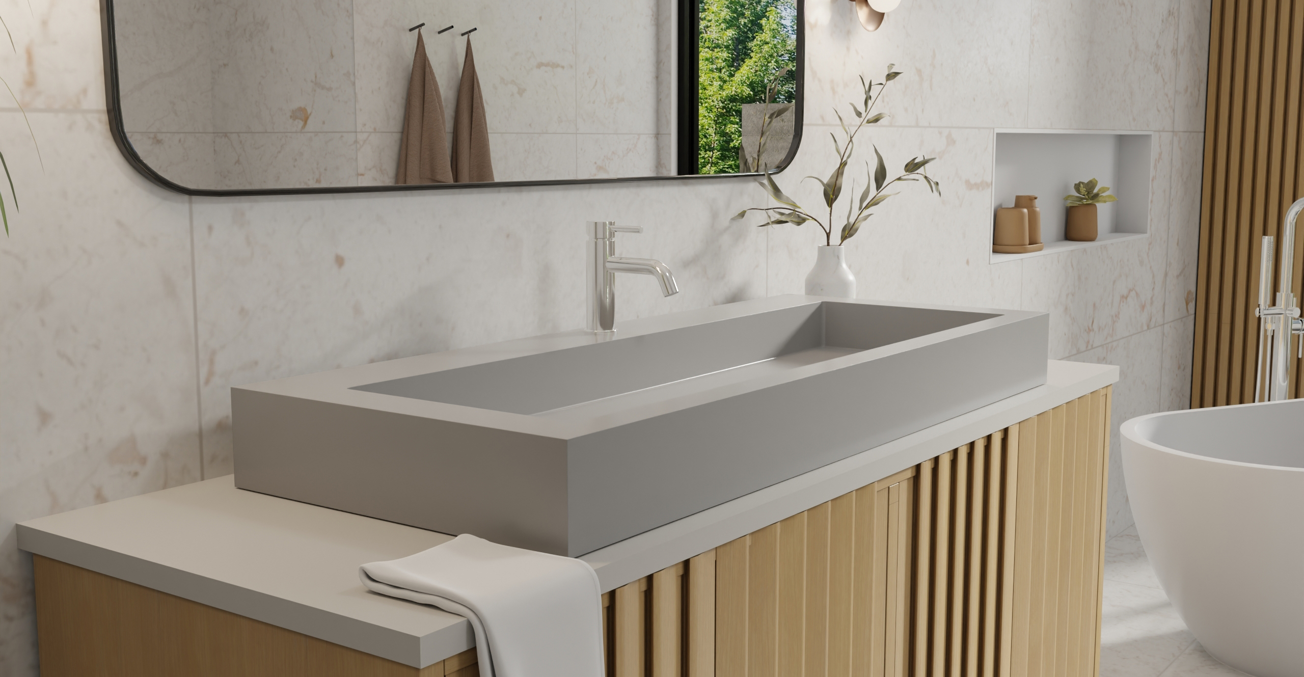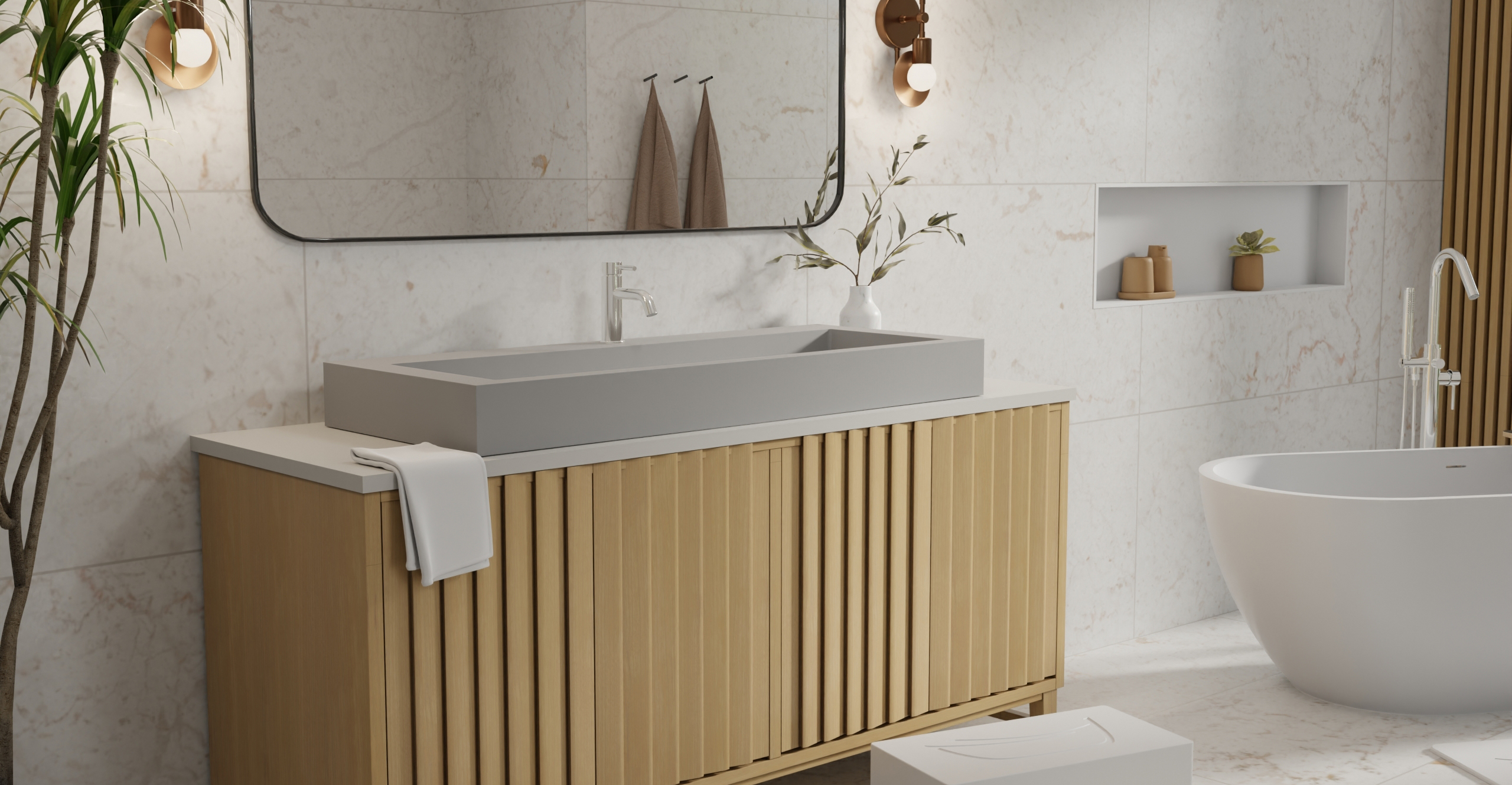 Envision your luxury bathroom with free templates and samples of Badeloft’s stone resin material.