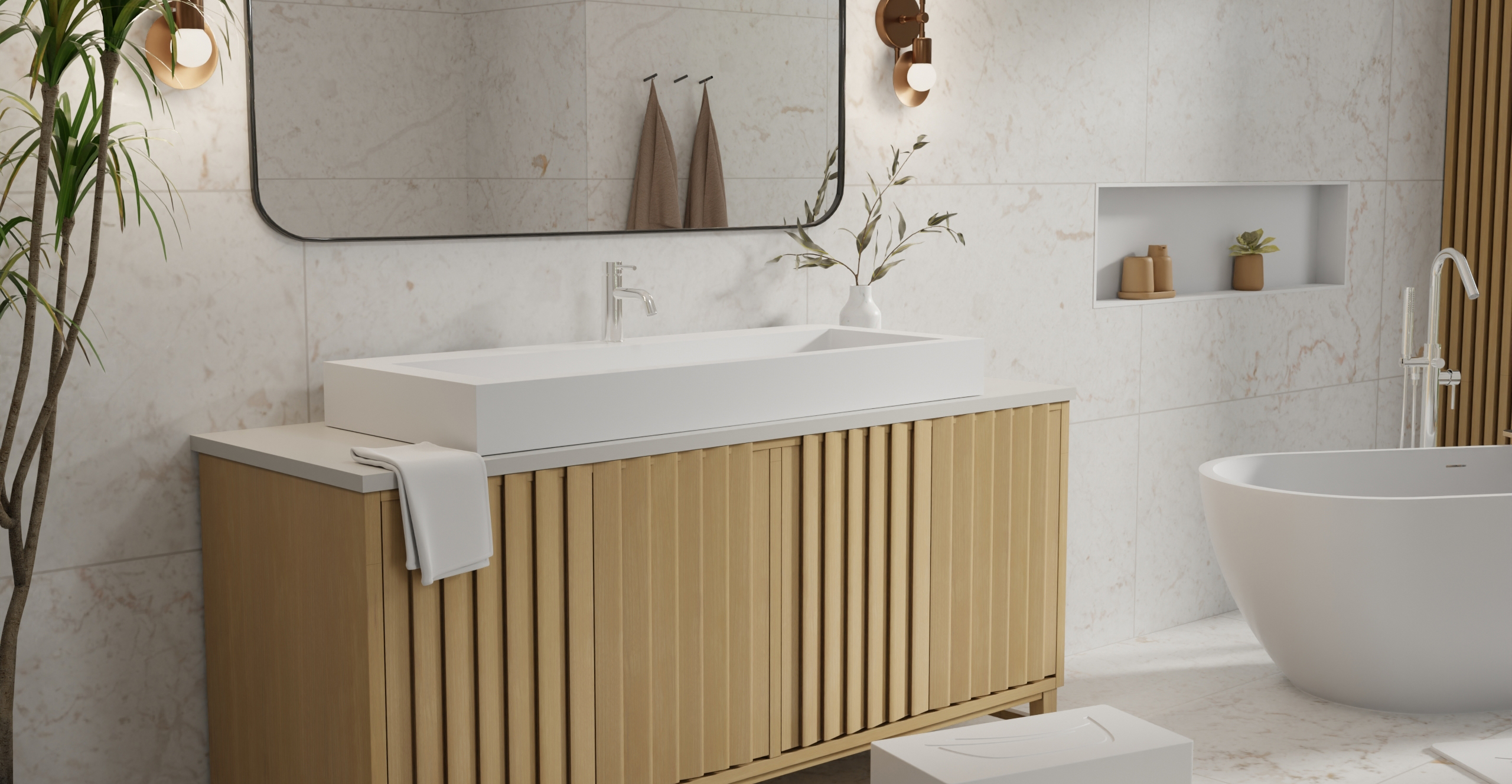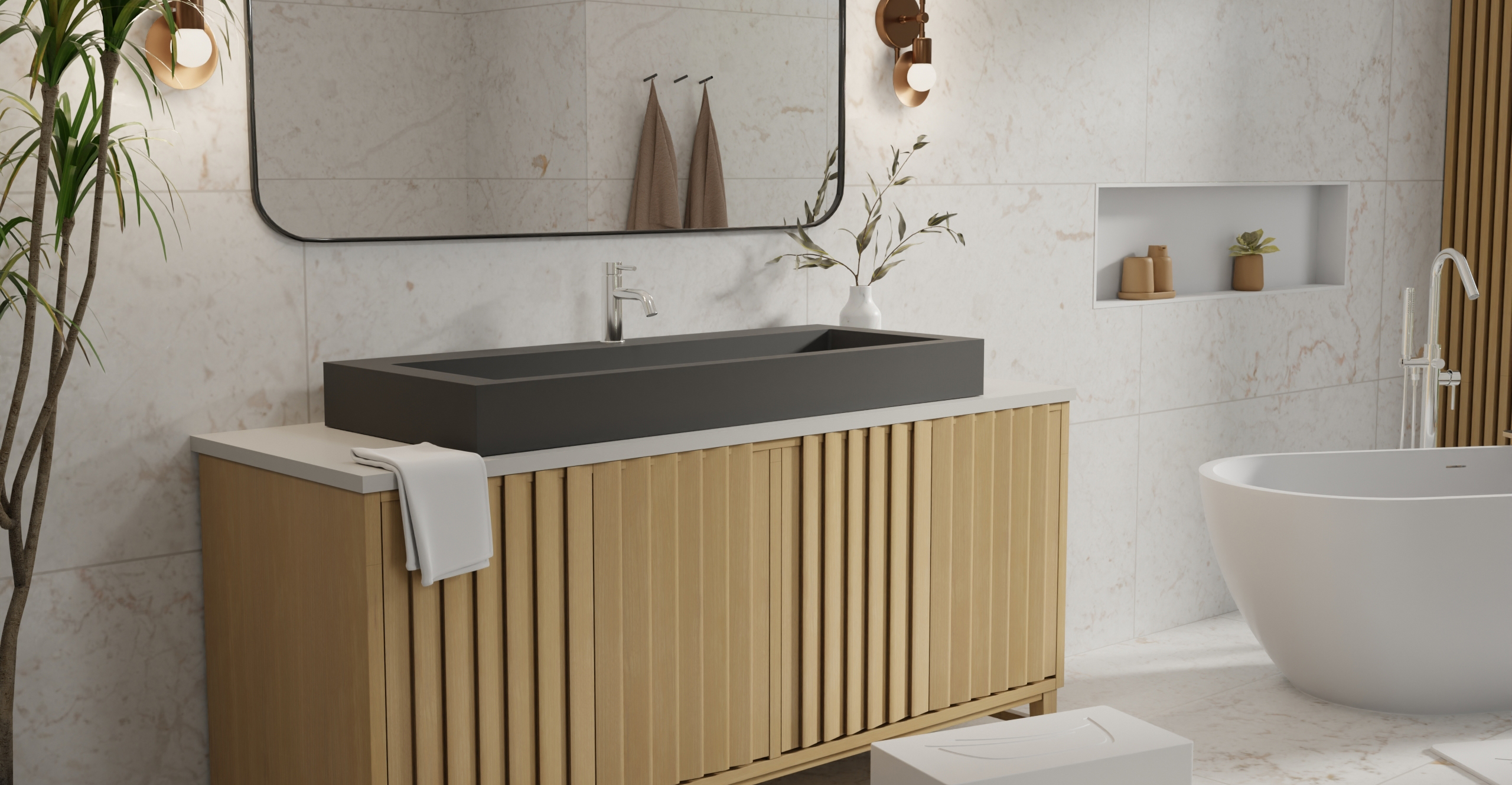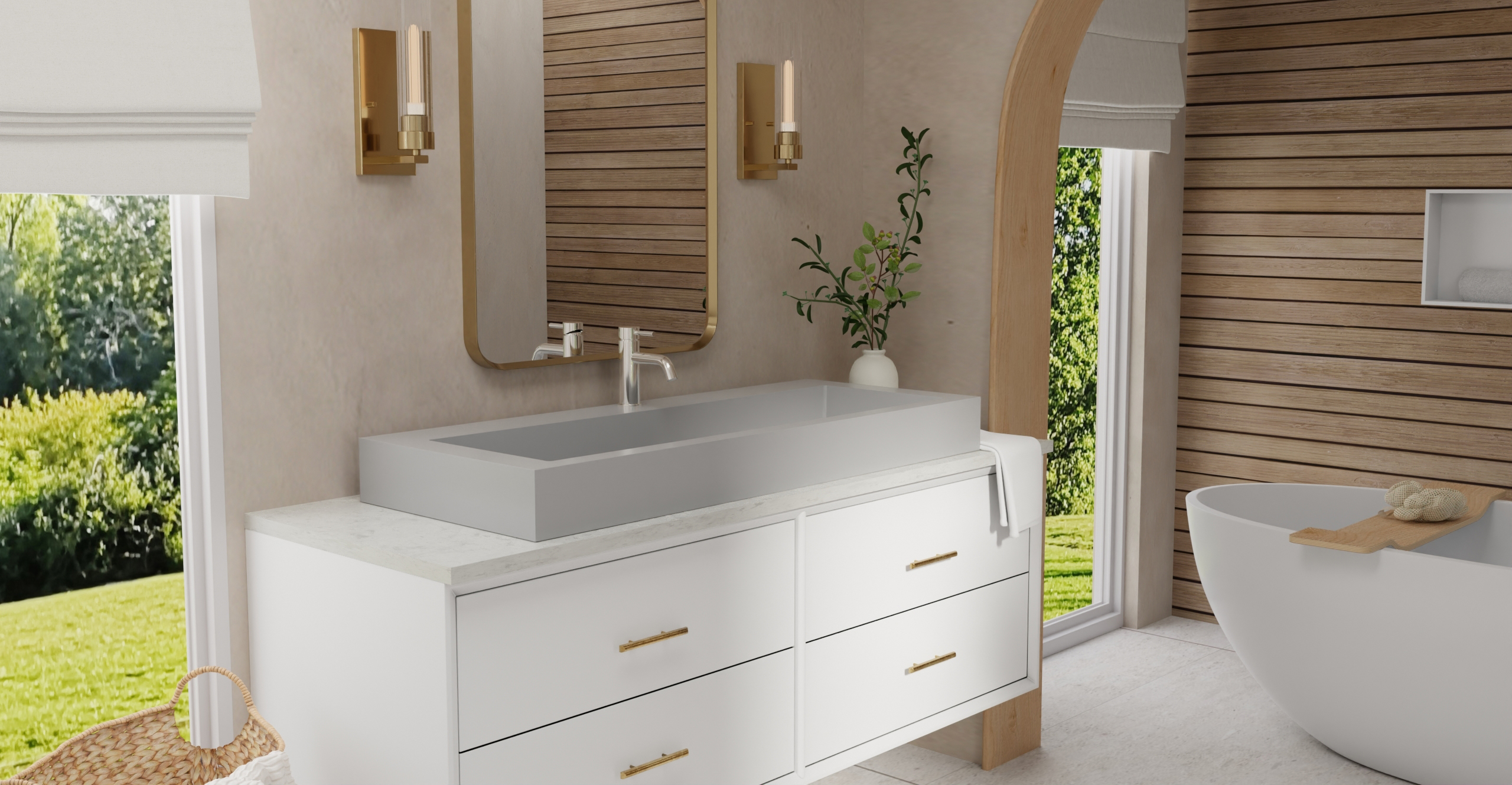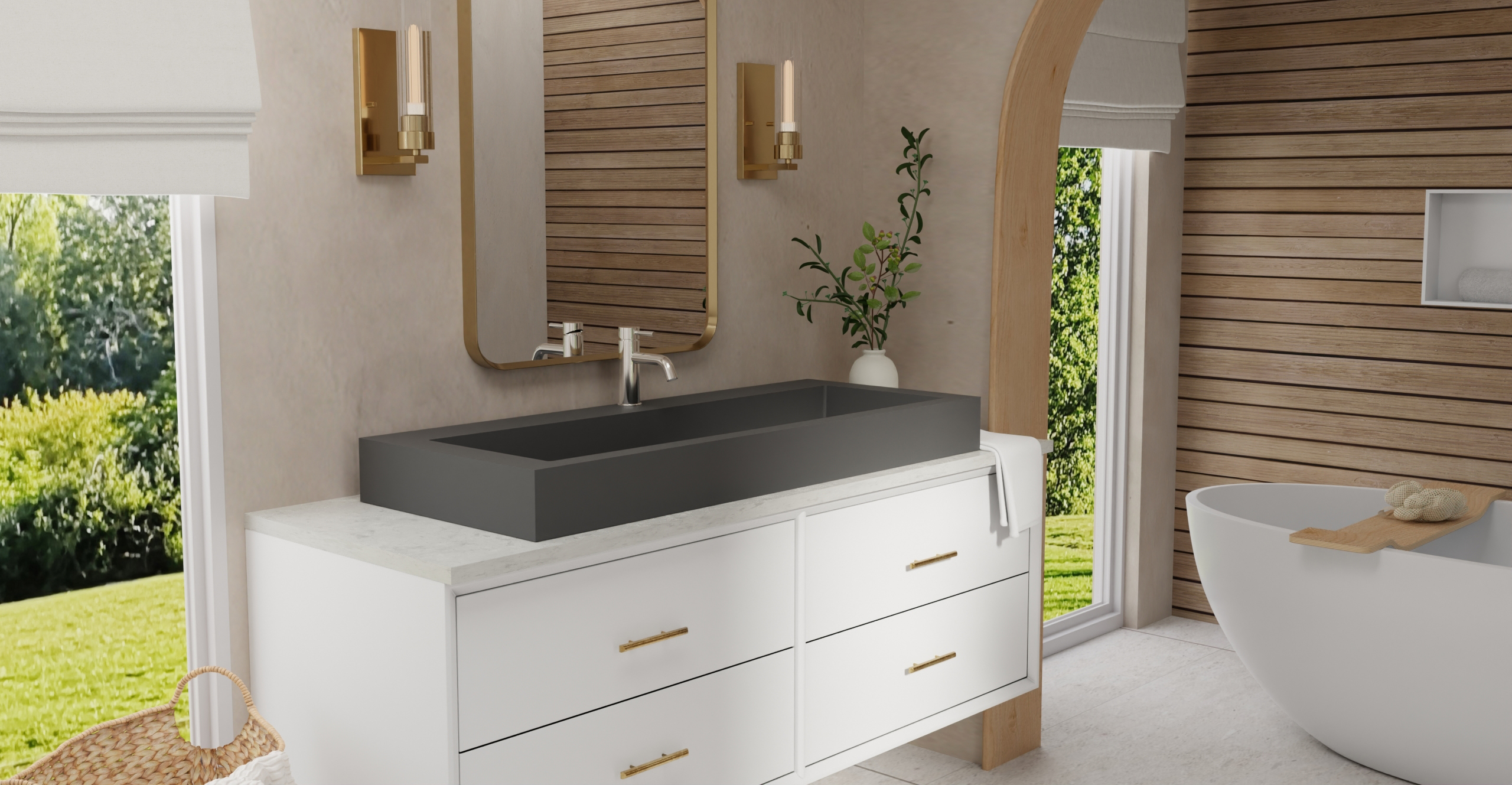 Envision your luxury bathroom with free templates and samples of Badeloft’s stone resin material.