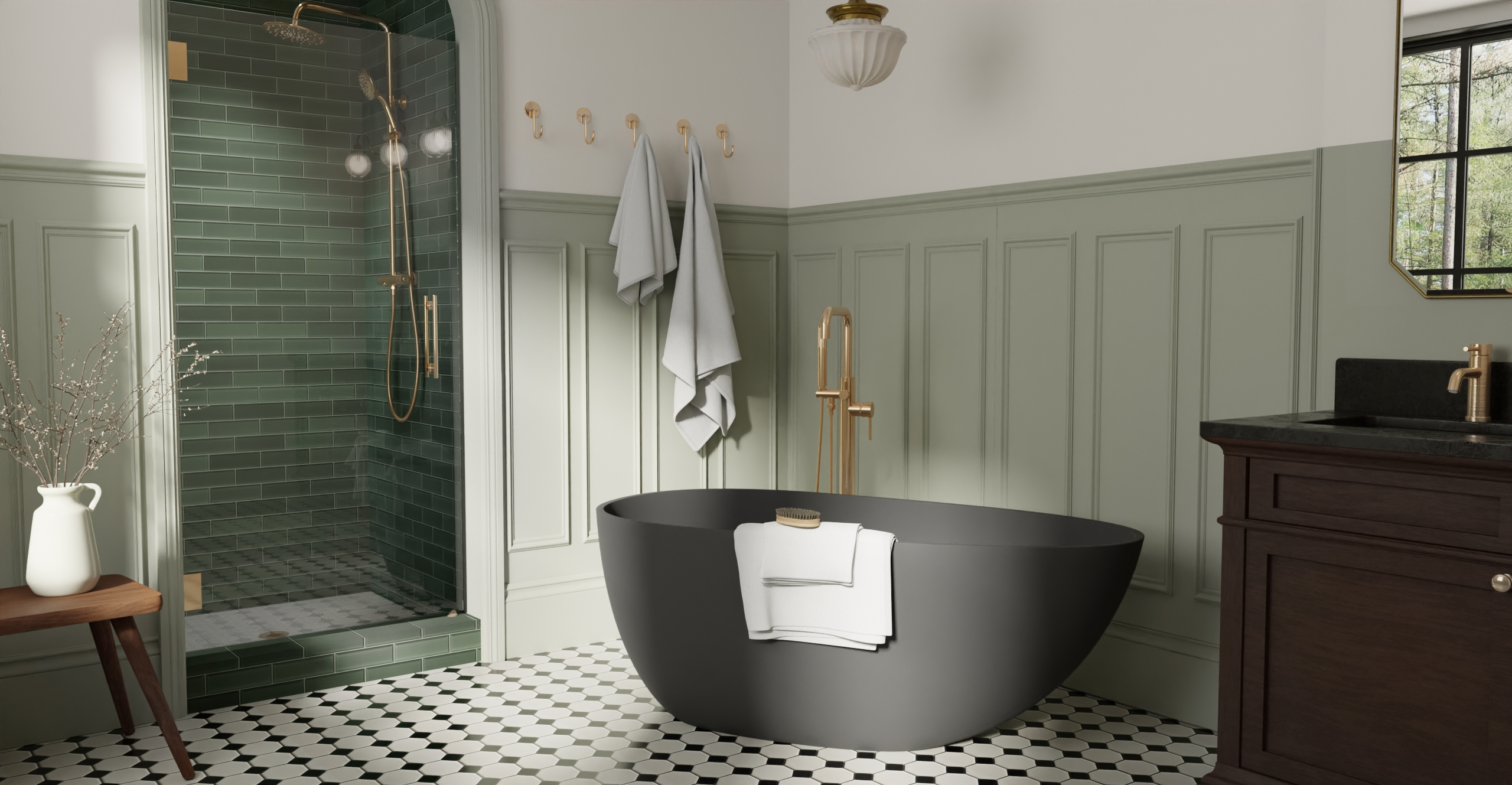 Envision your luxury bathroom with free templates and samples of Badeloft’s stone resin material.