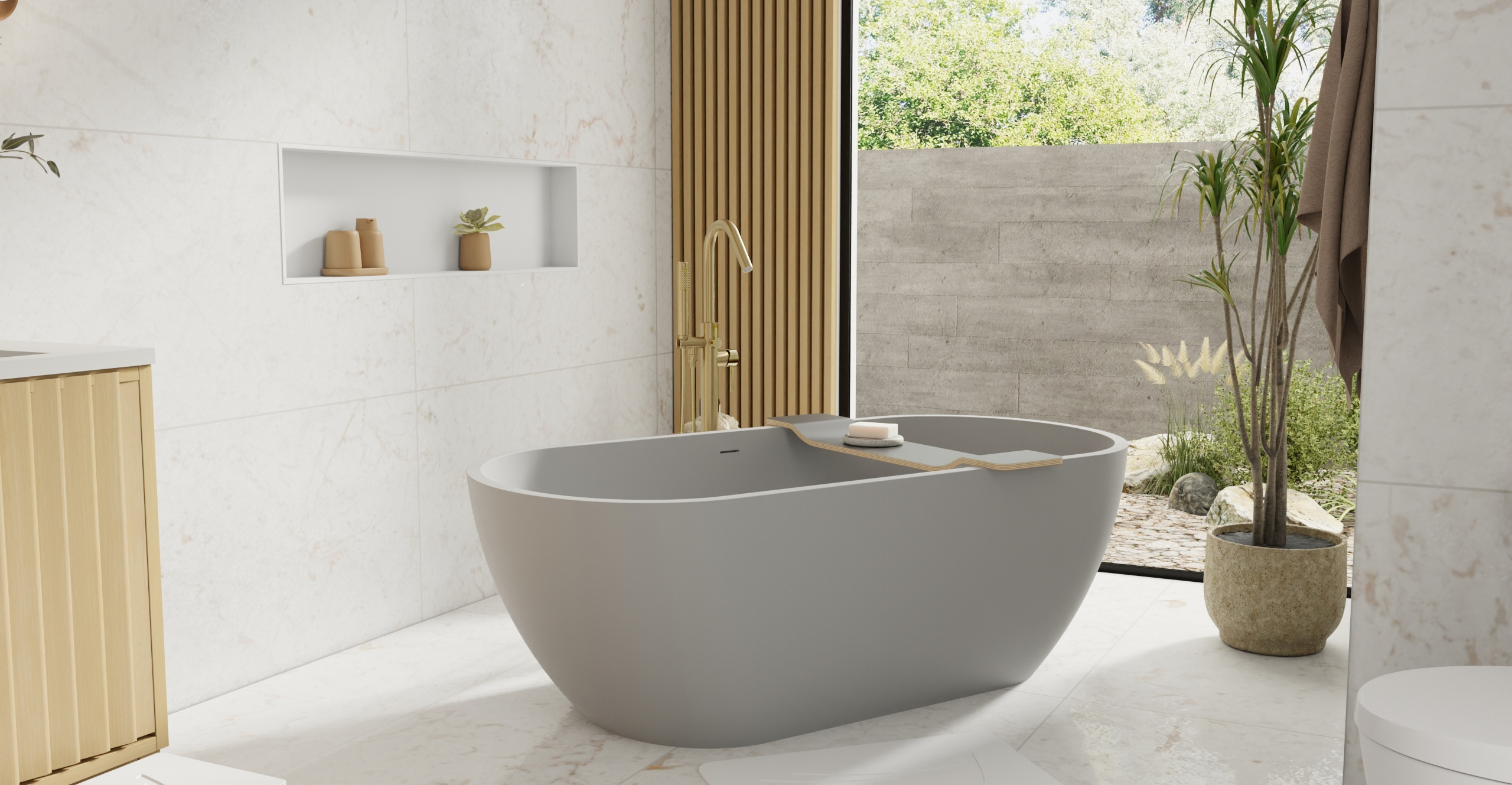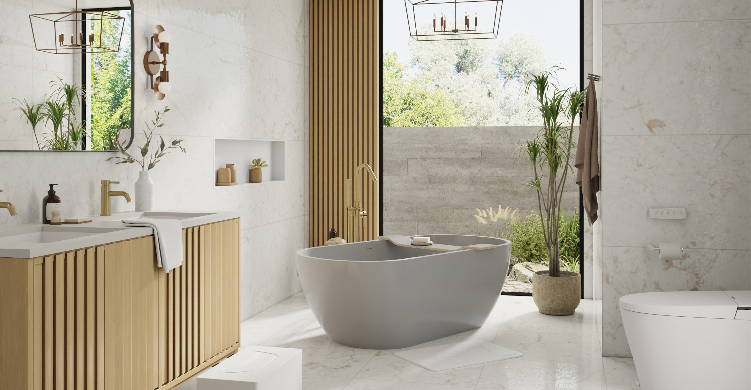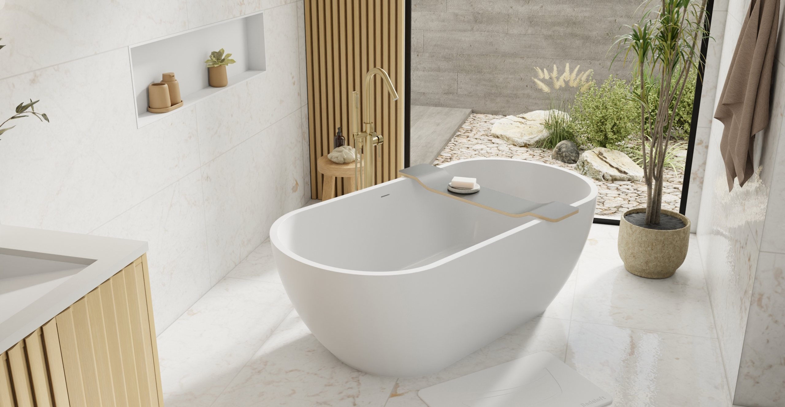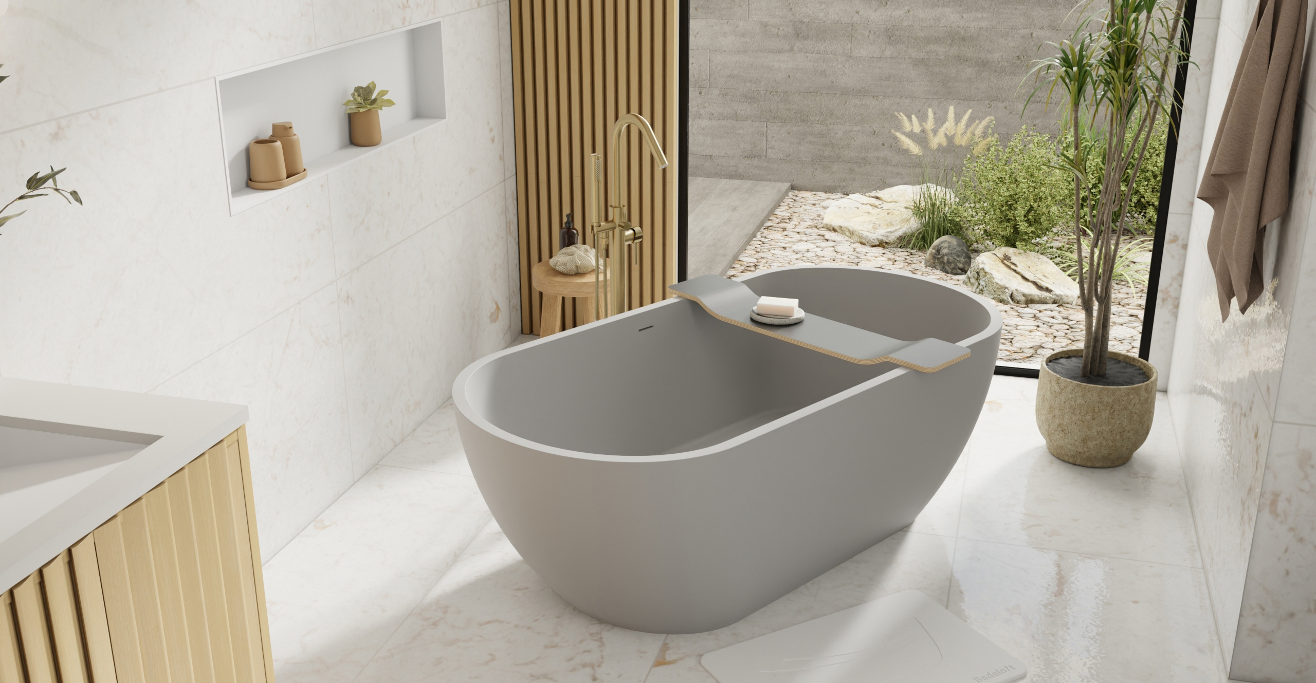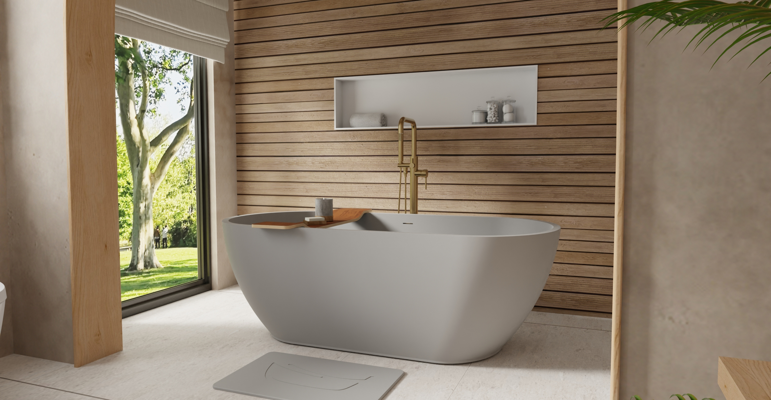 Envision your luxury bathroom with free templates and samples of Badeloft’s stone resin material.