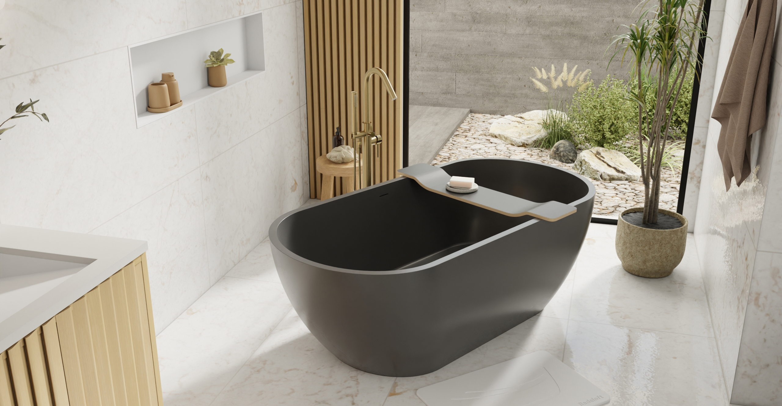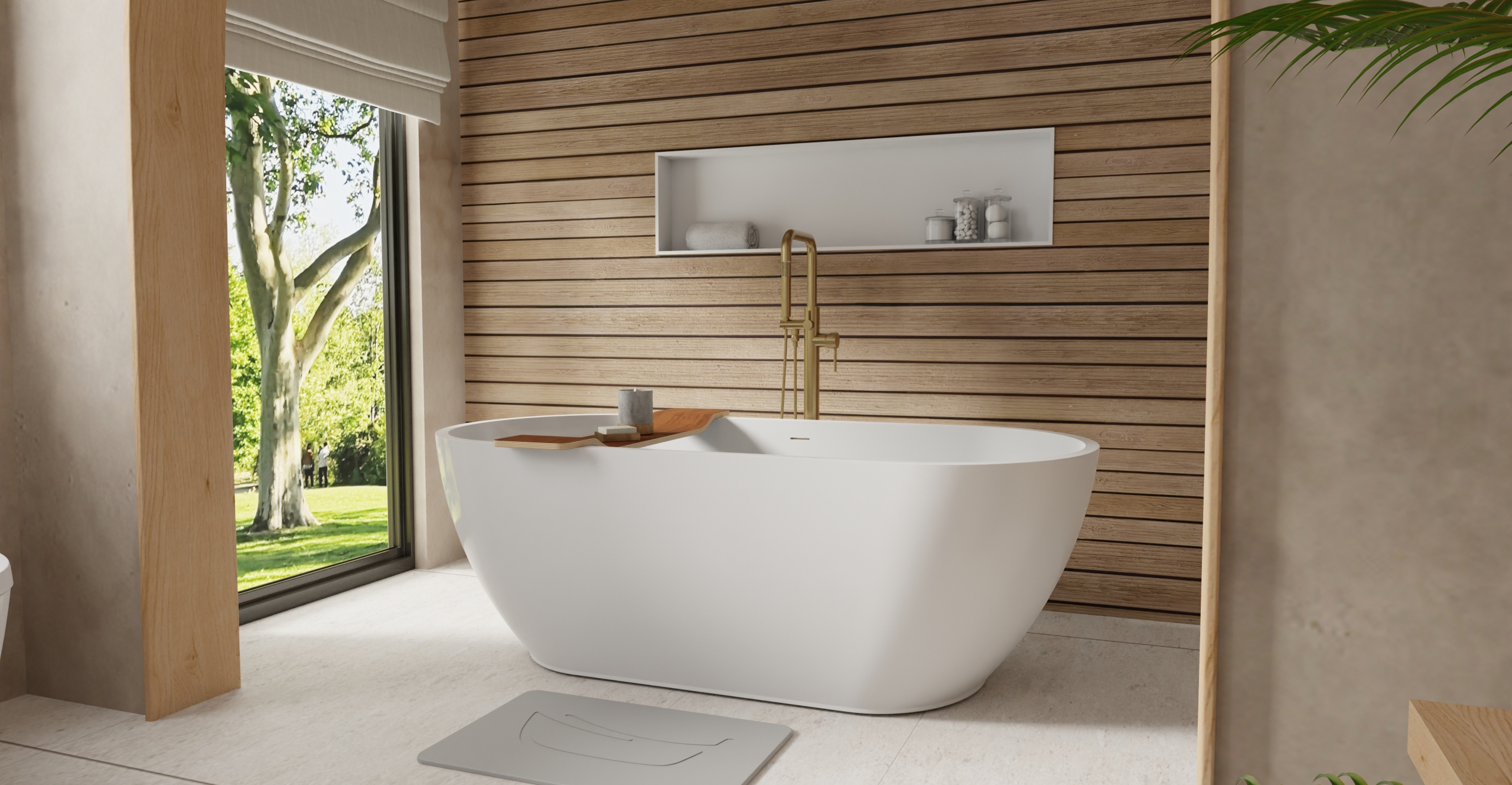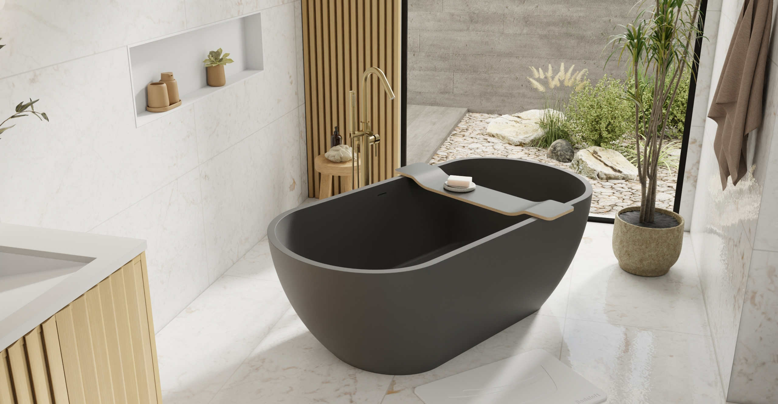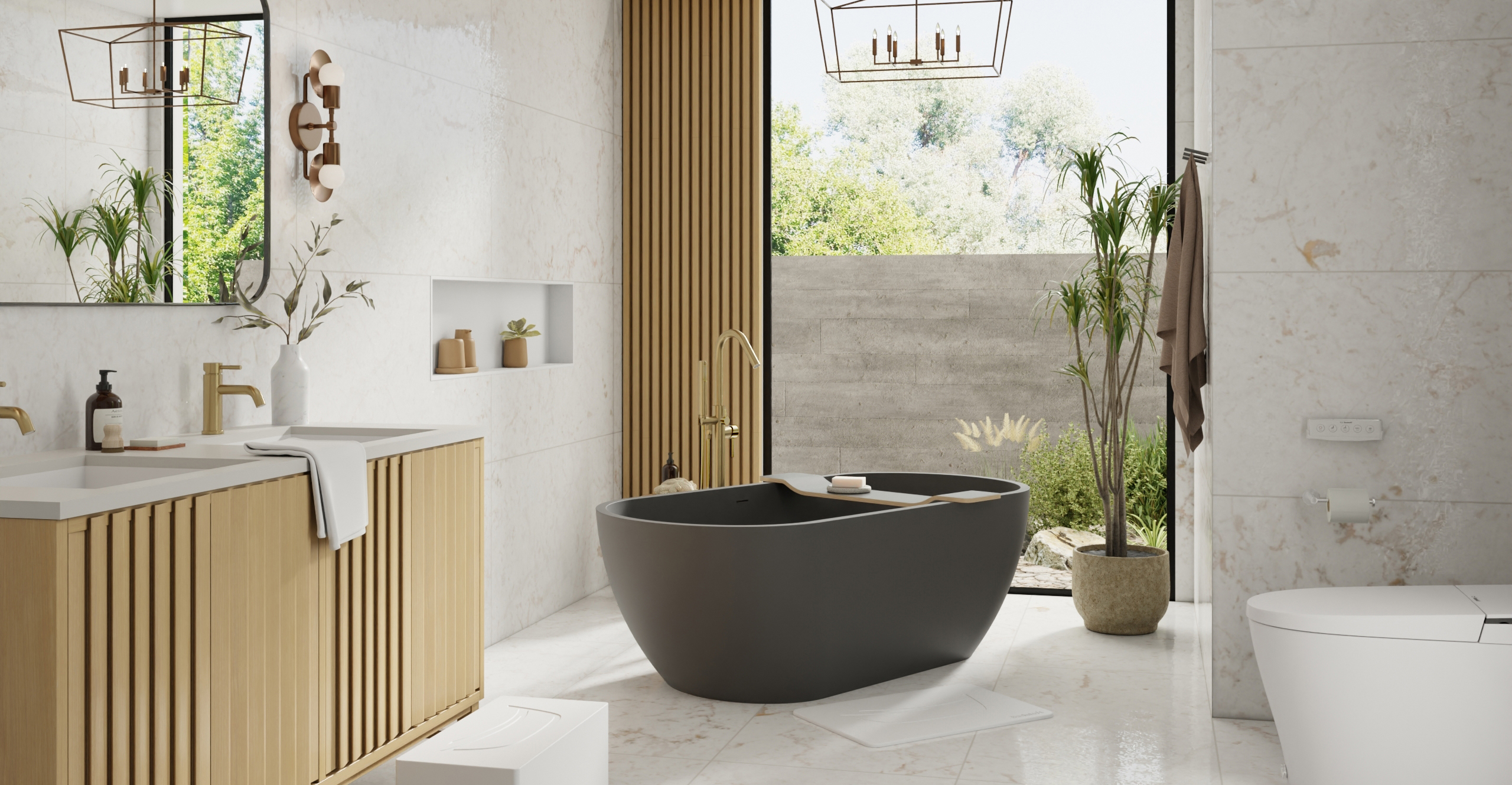 Envision your luxury bathroom with free templates and samples of Badeloft’s stone resin material.