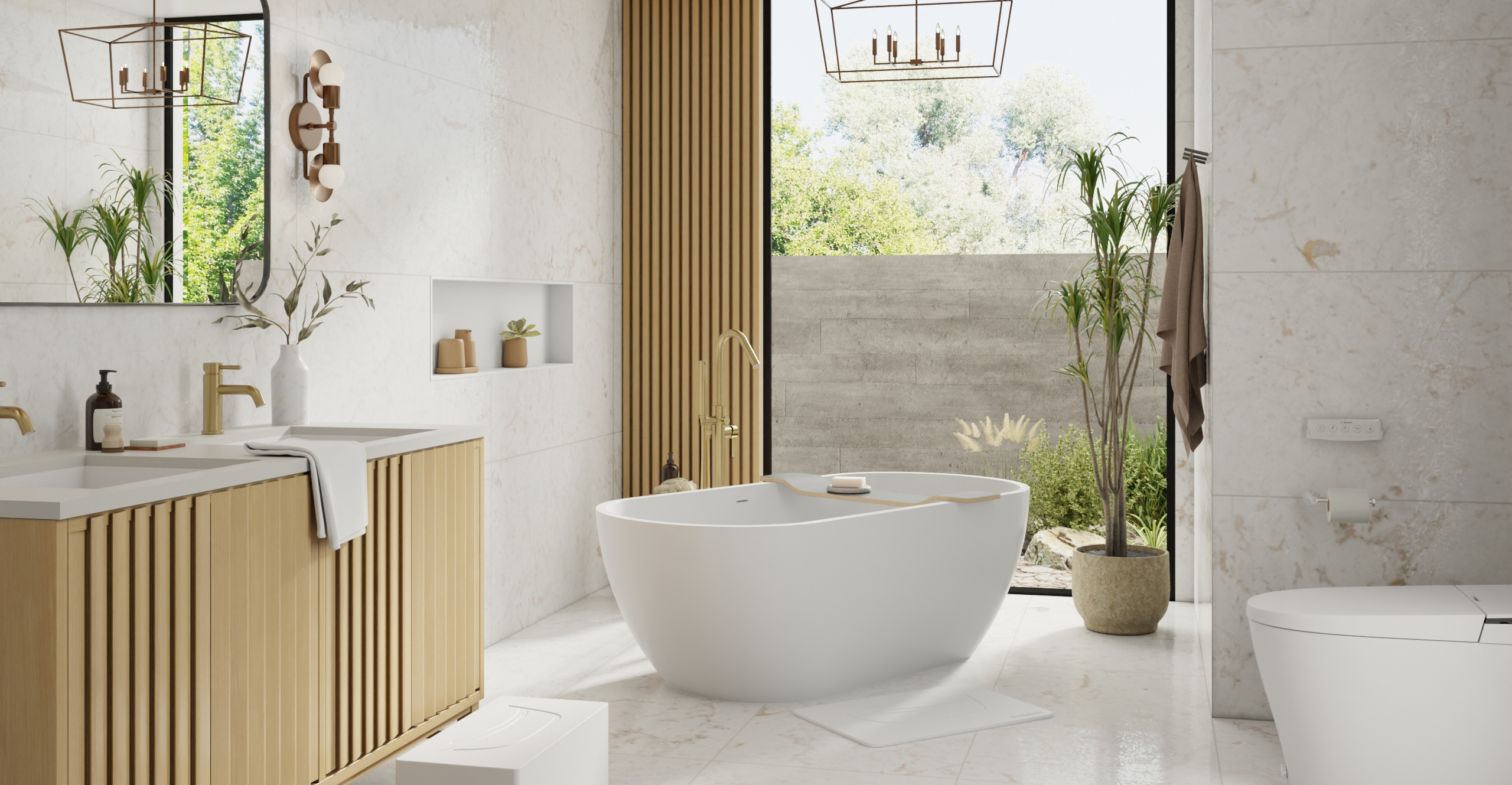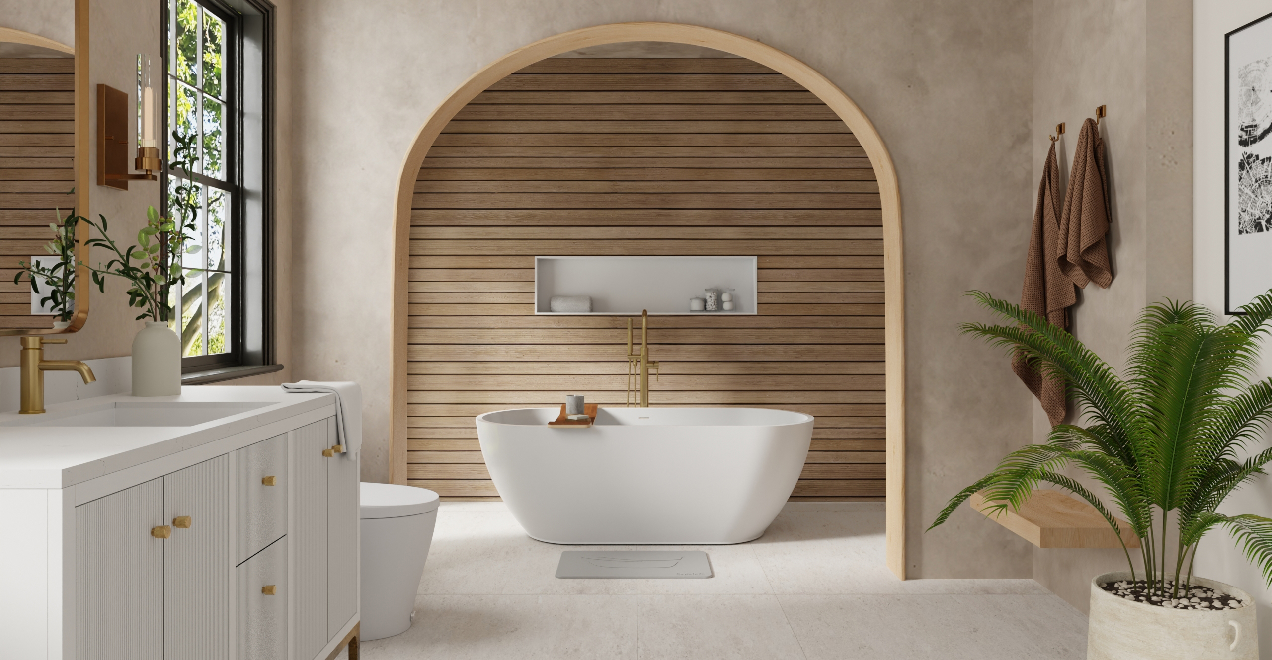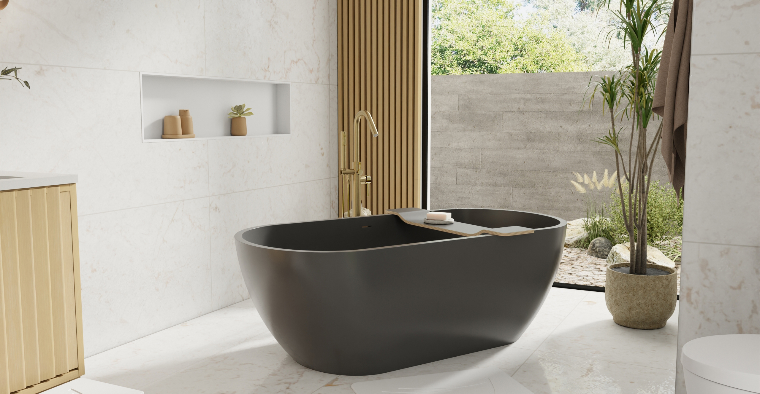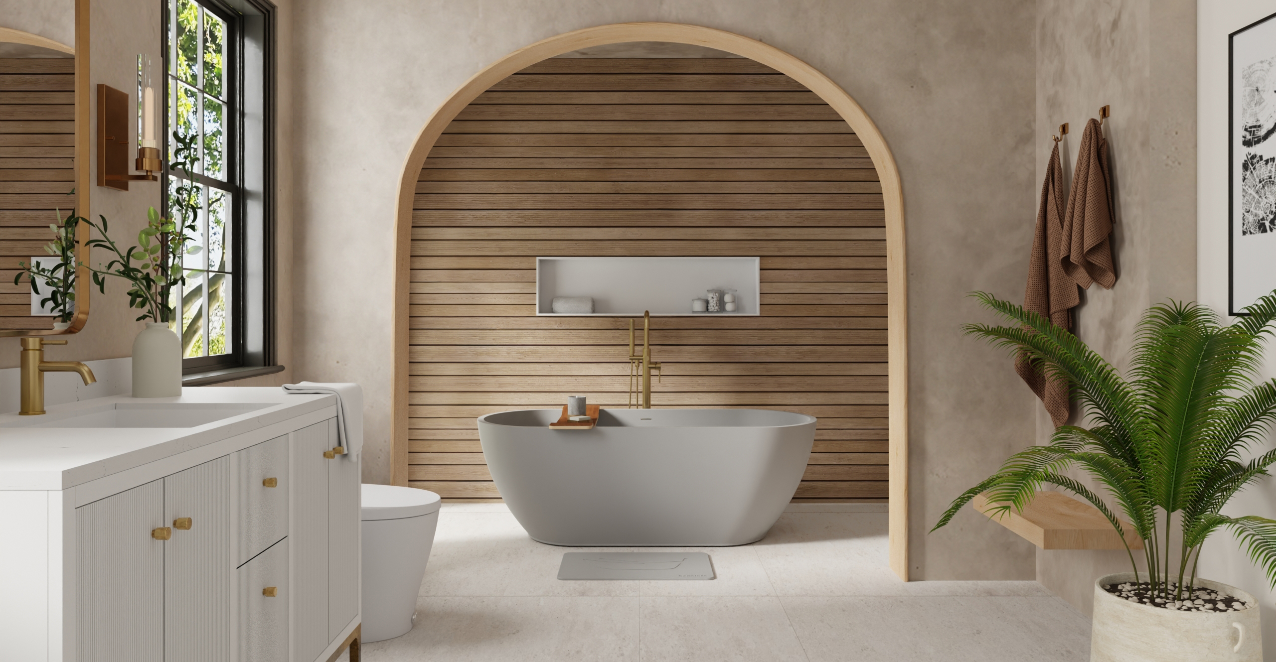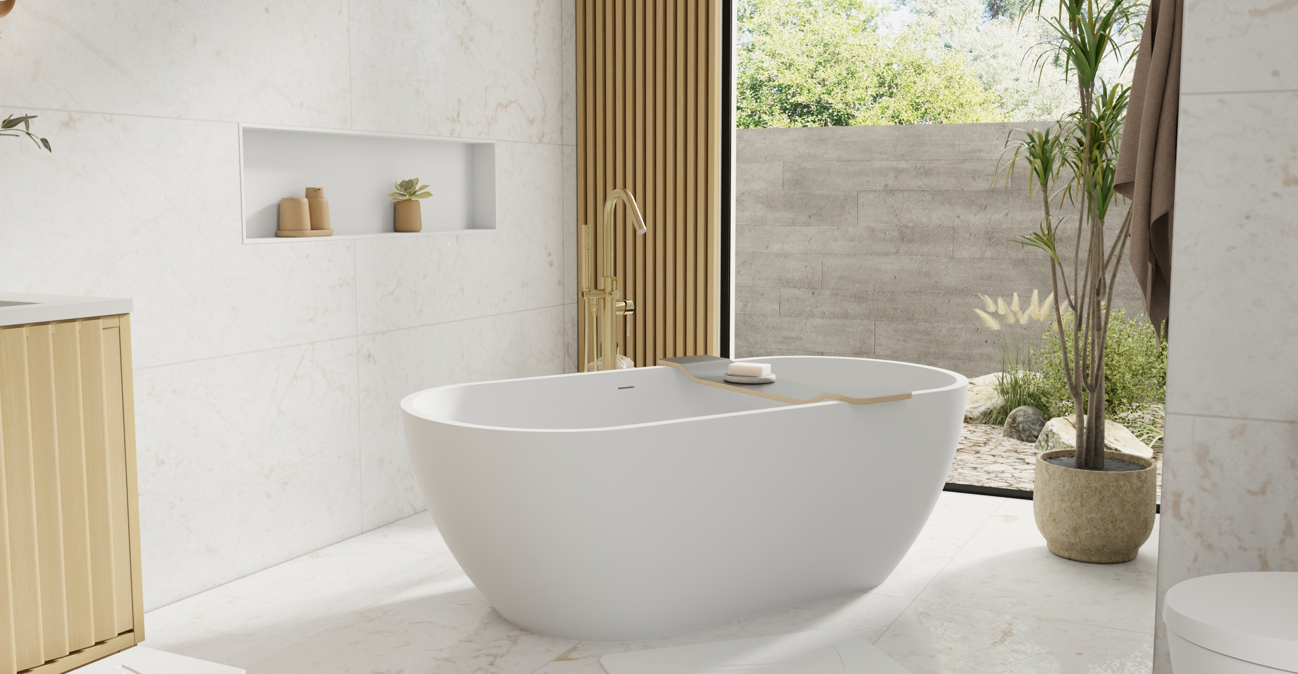 Envision your luxury bathroom with free templates and samples of Badeloft’s stone resin material.