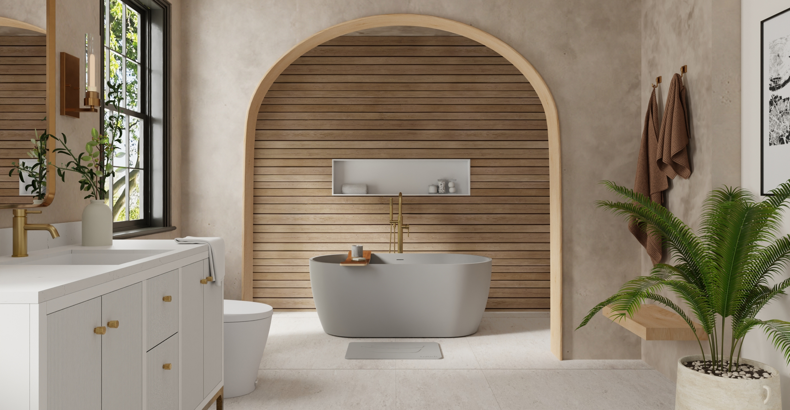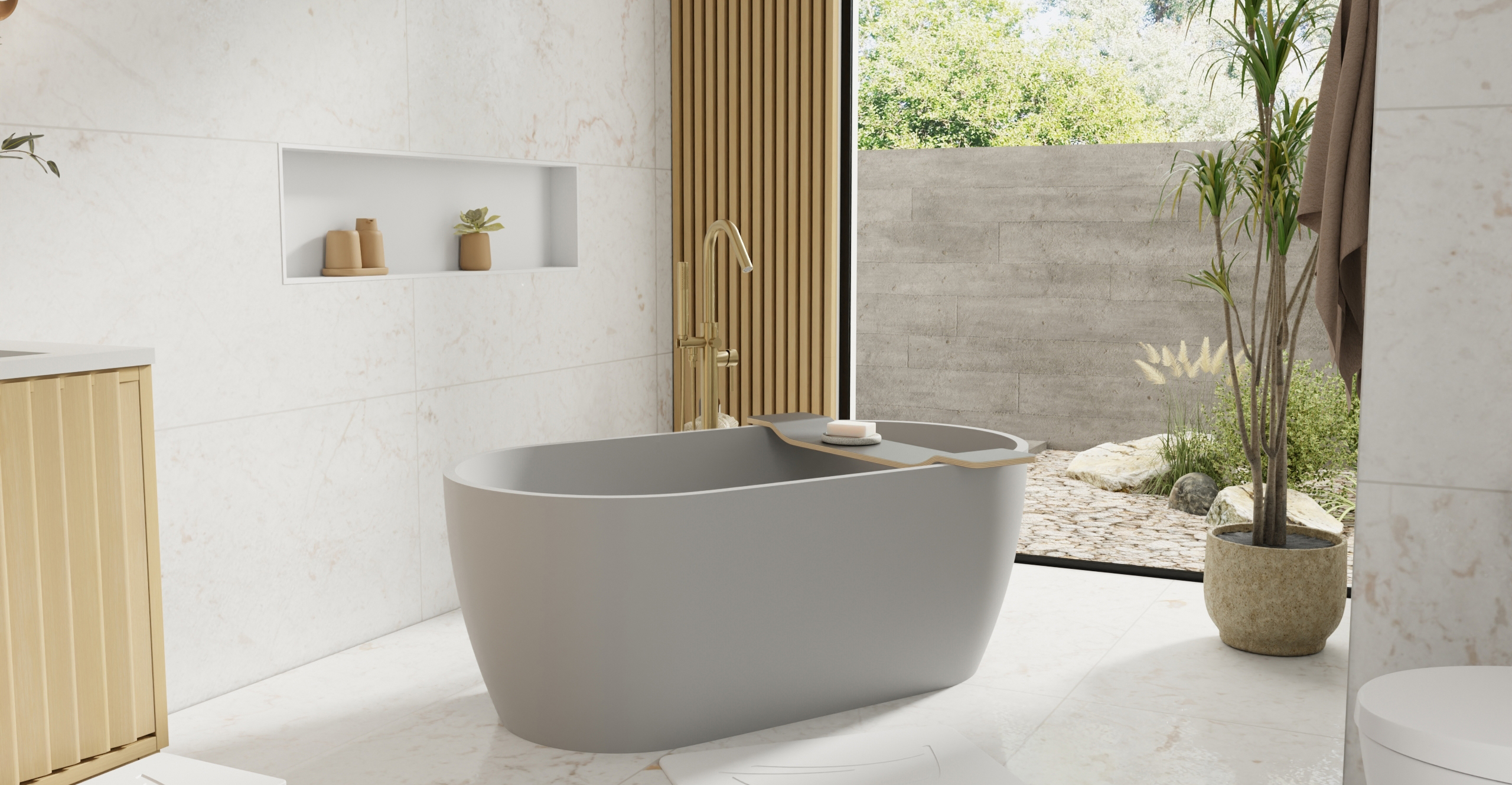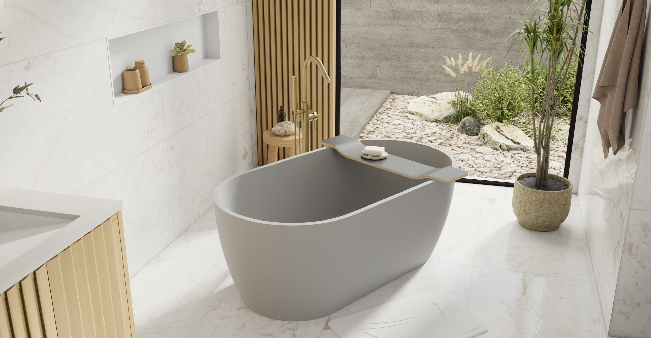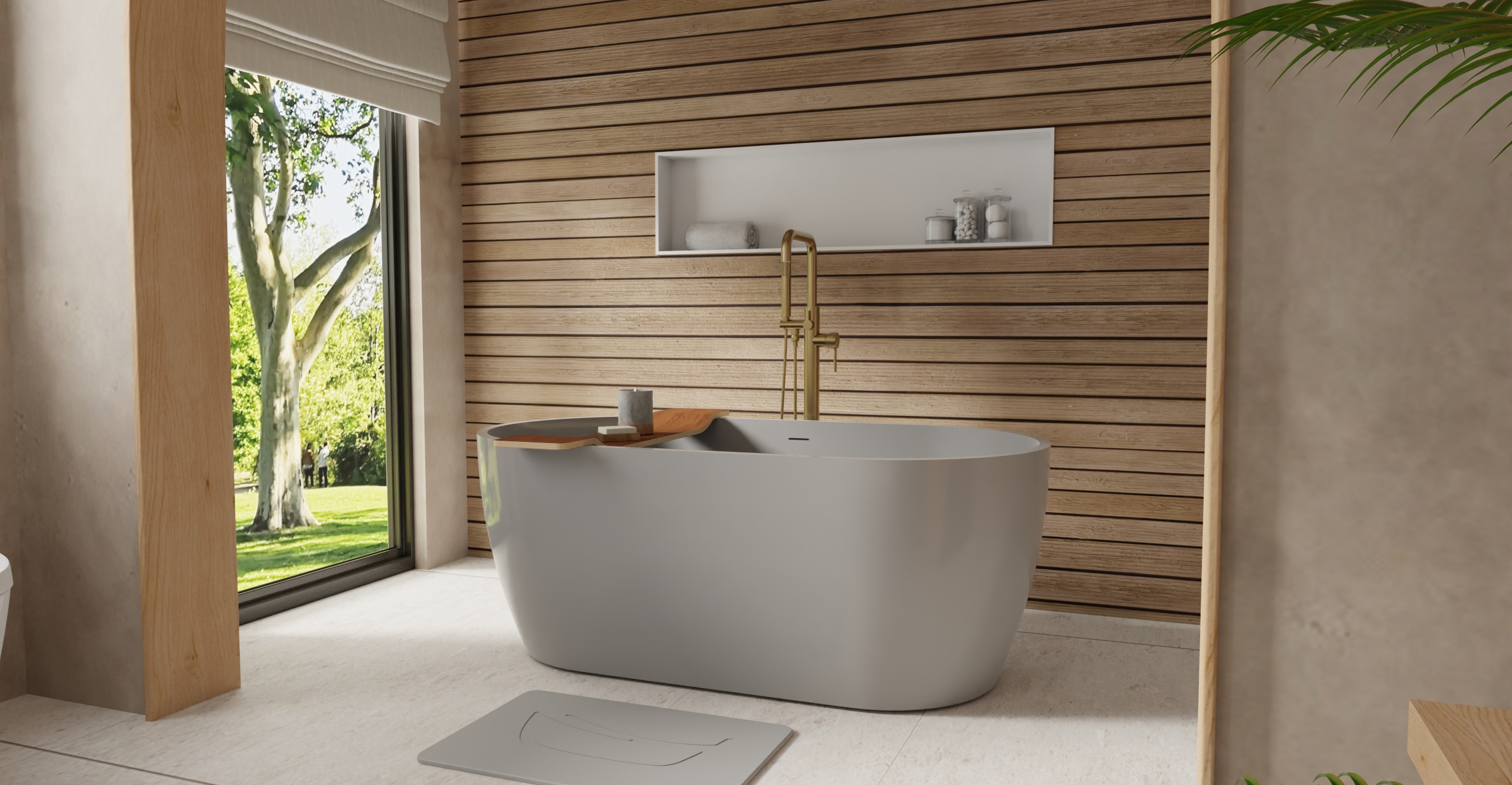 Envision your luxury bathroom with free templates and samples of Badeloft’s stone resin material.
