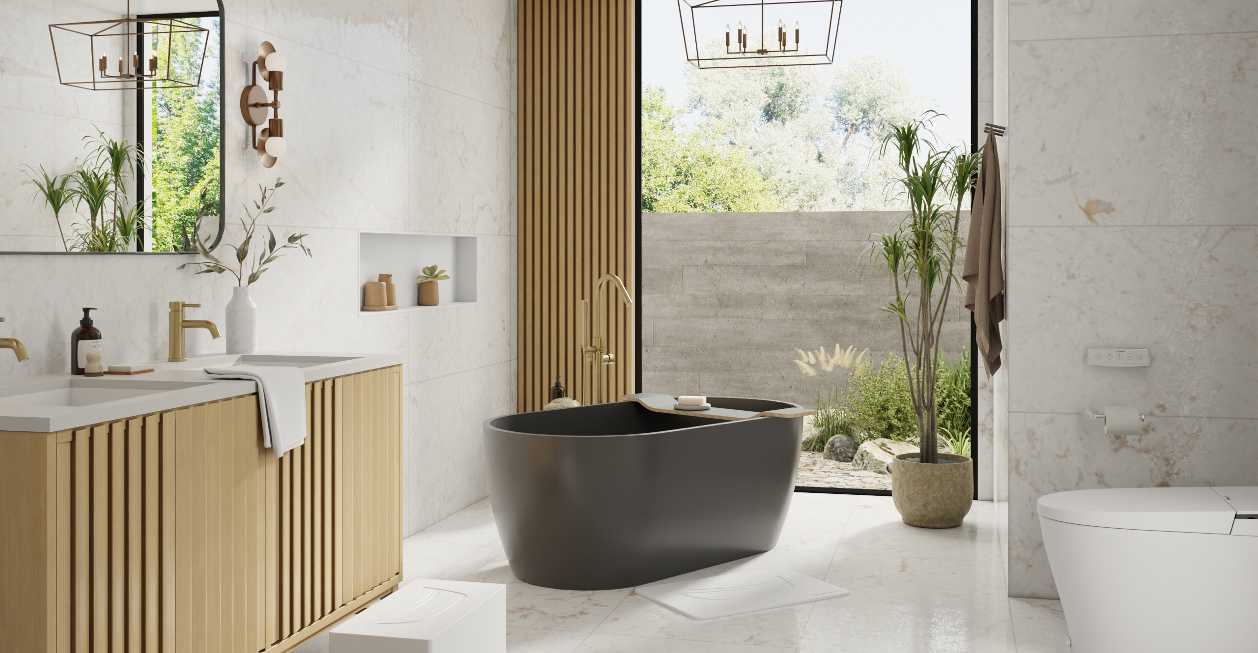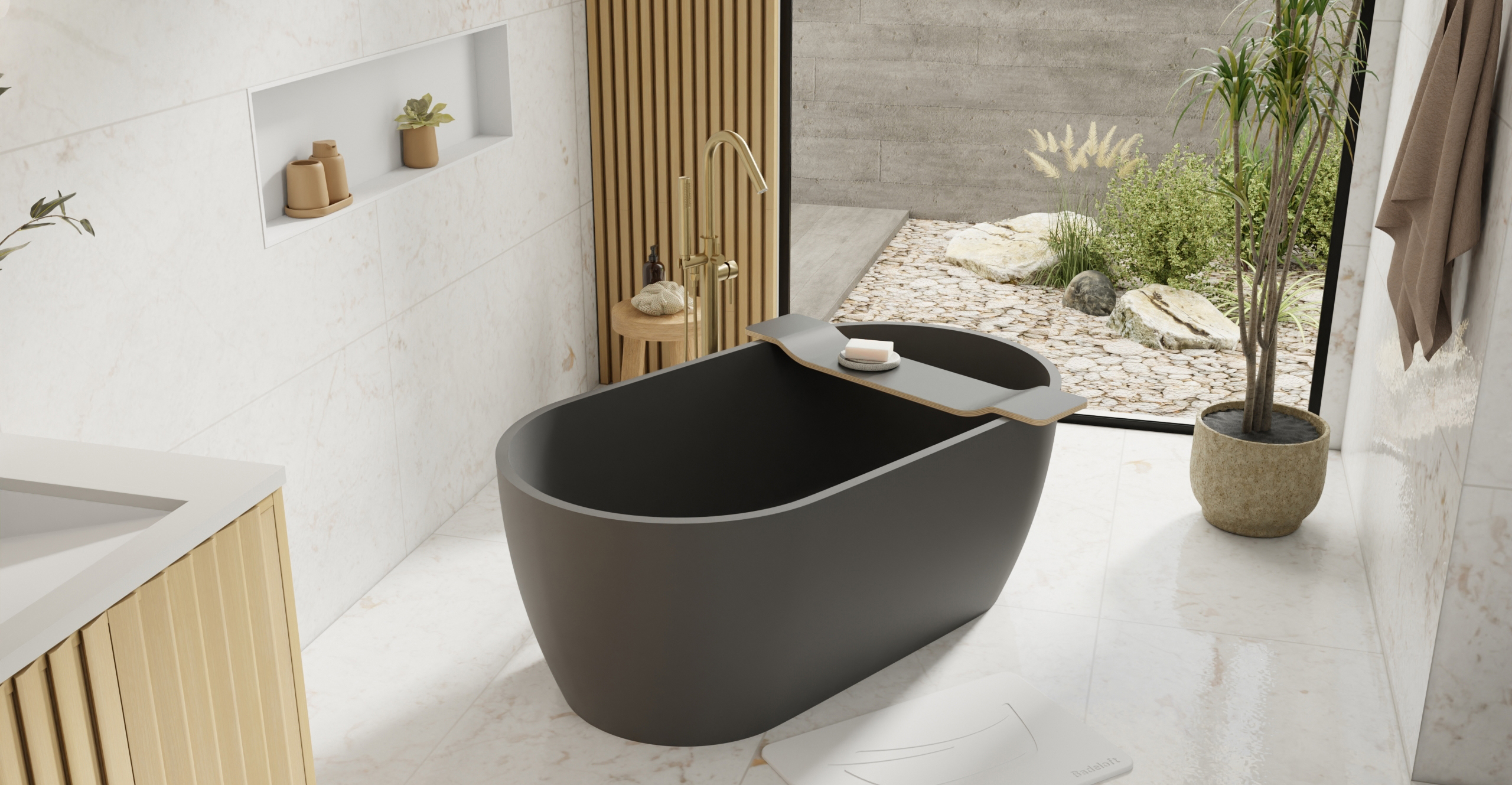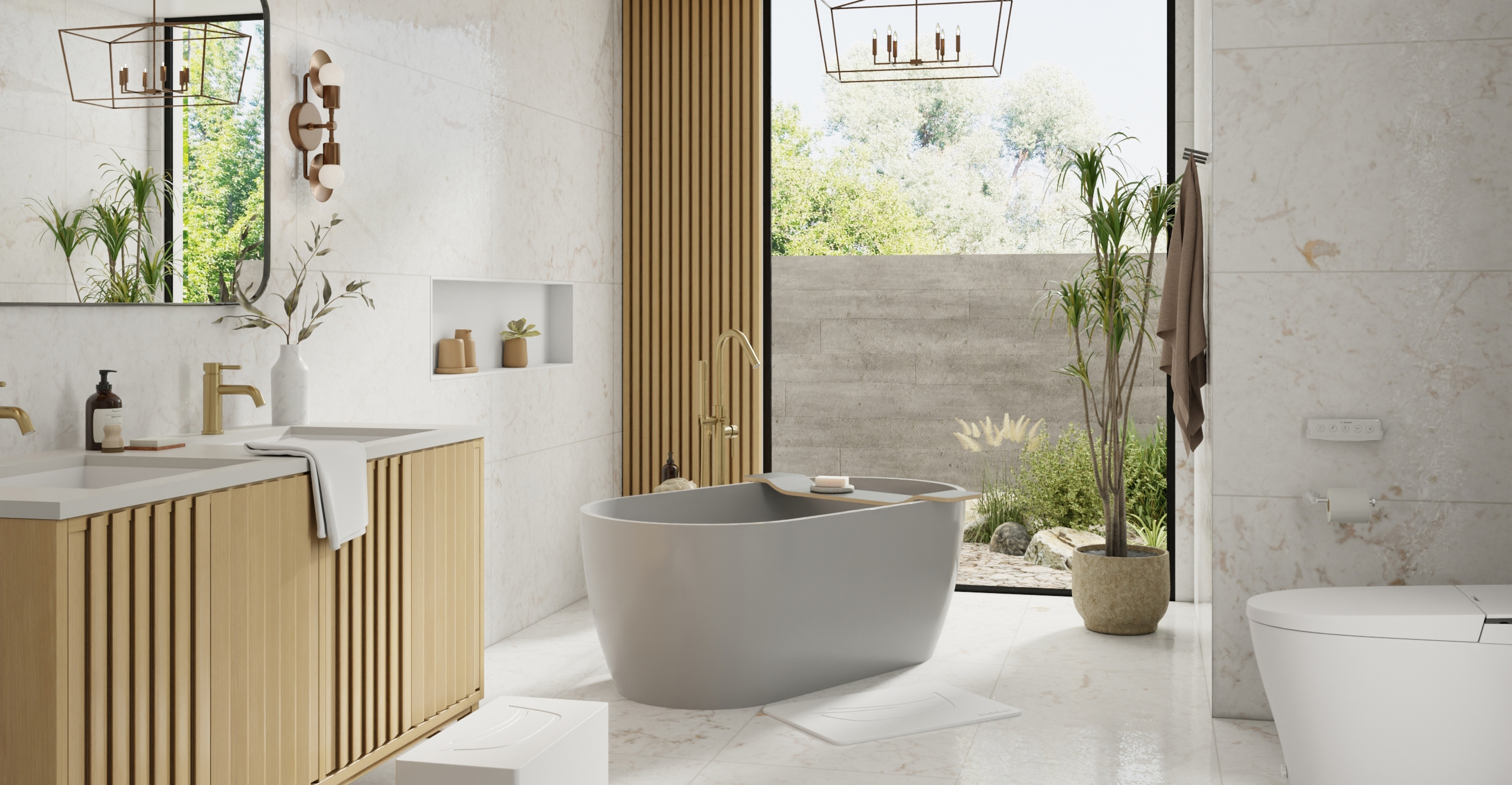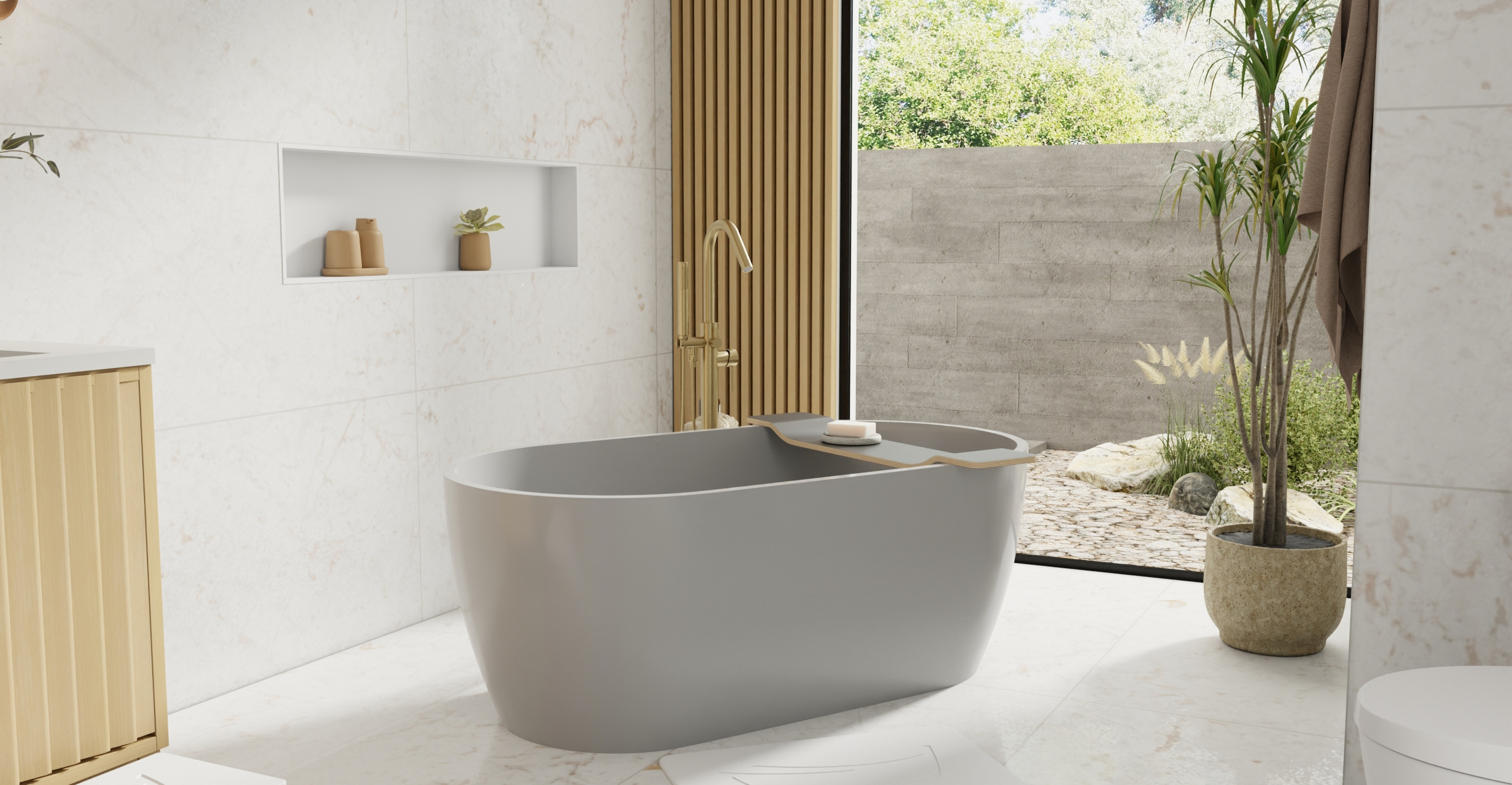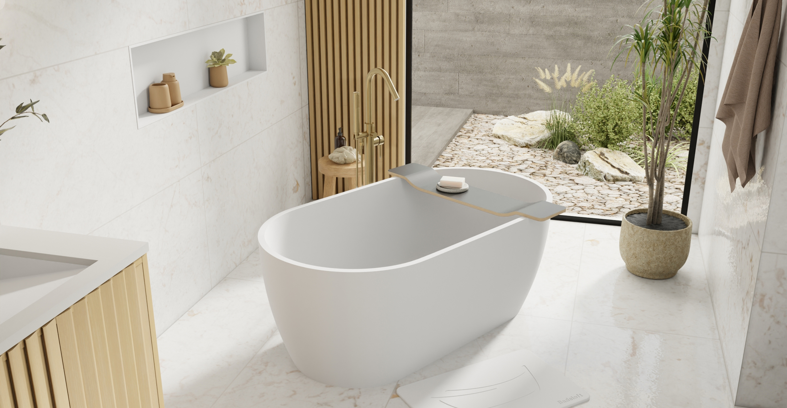 Envision your luxury bathroom with free templates and samples of Badeloft’s stone resin material.