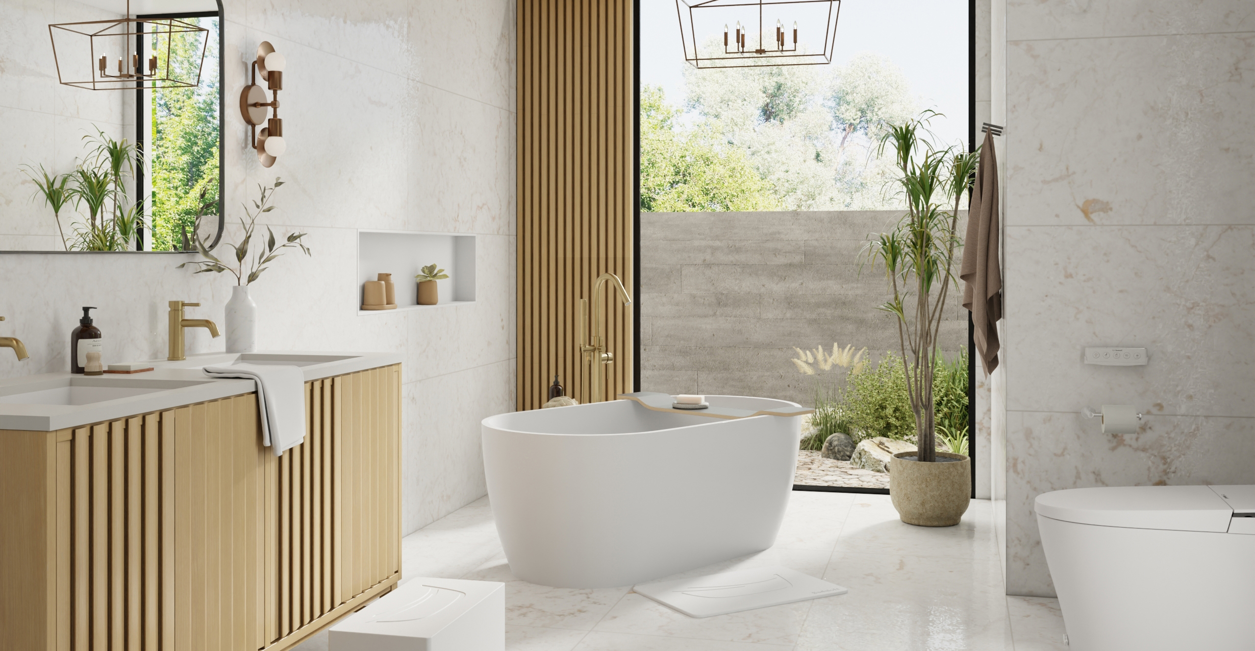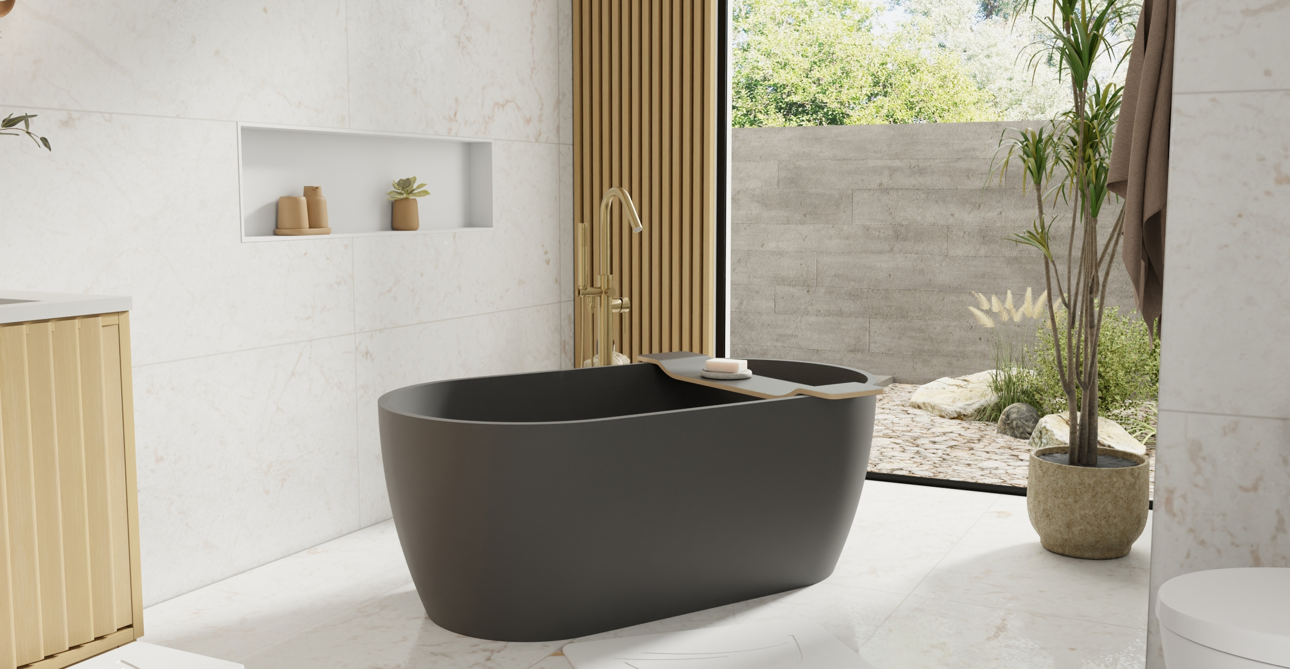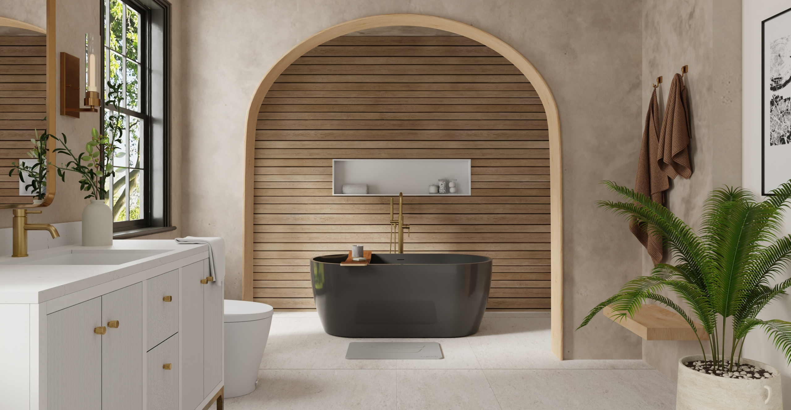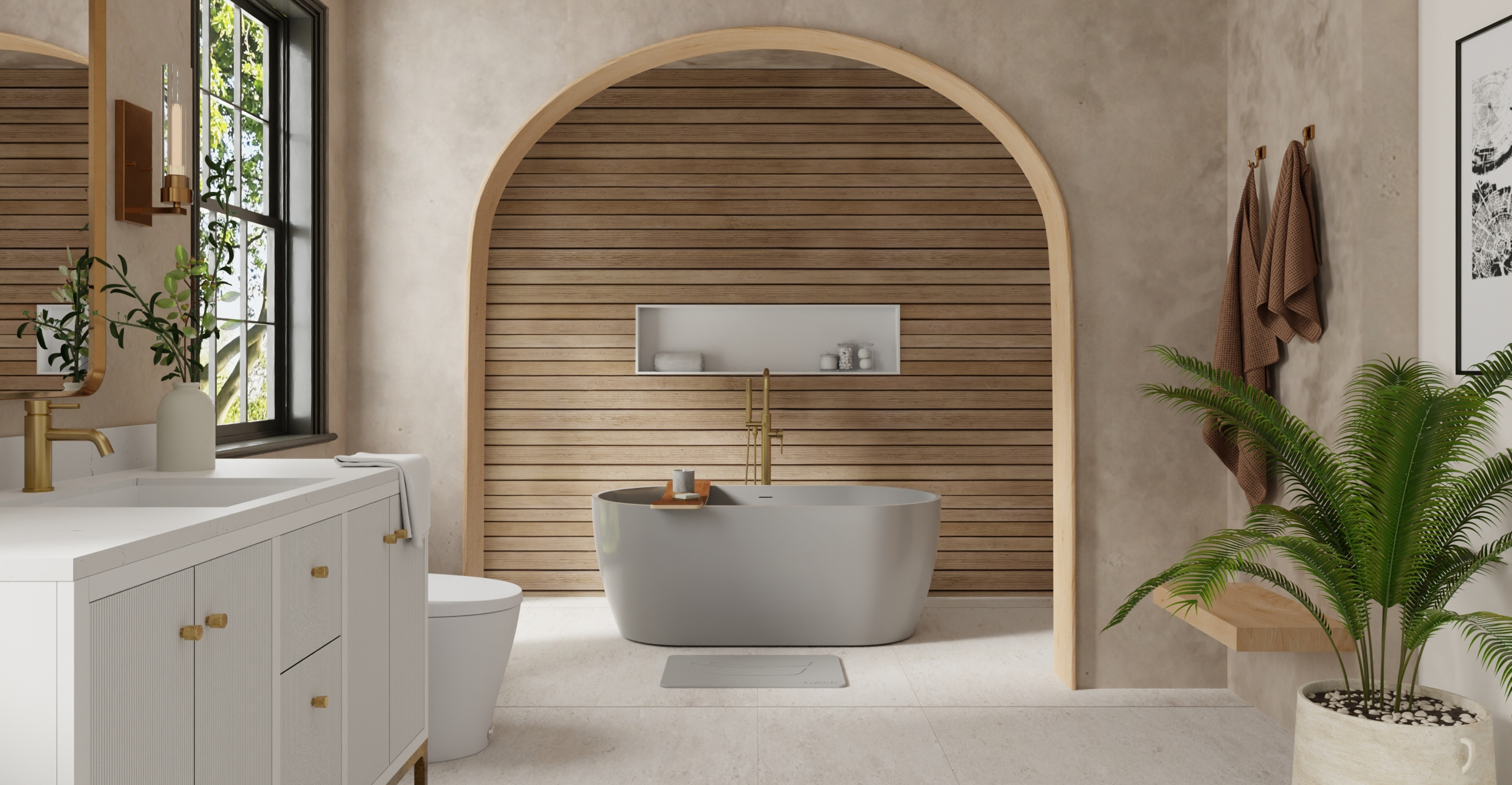 Envision your luxury bathroom with free templates and samples of Badeloft’s stone resin material.