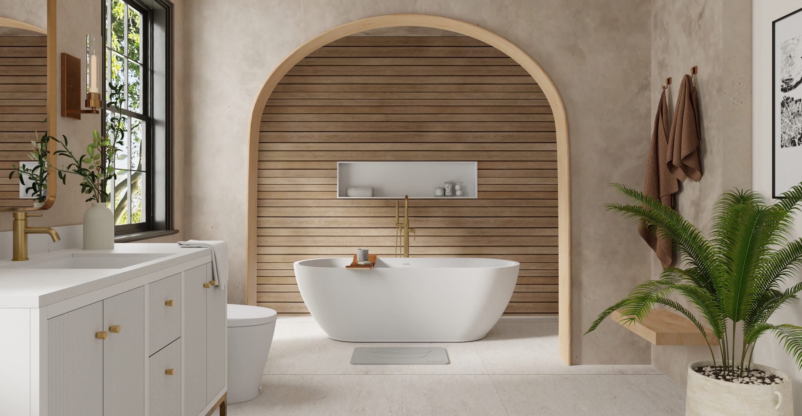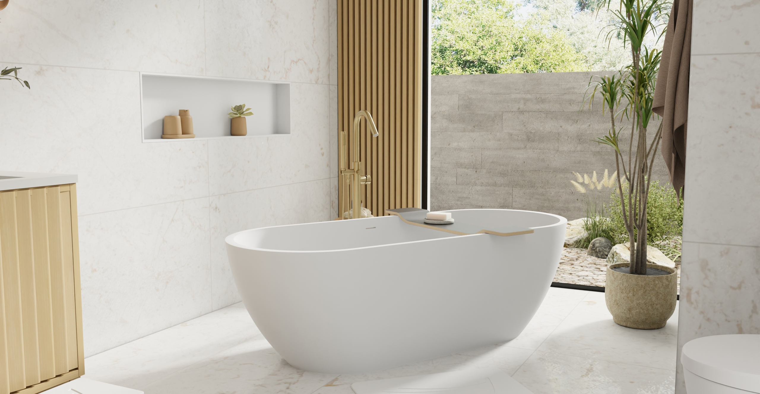 Envision your luxury bathroom with free templates and samples of Badeloft’s stone resin material.