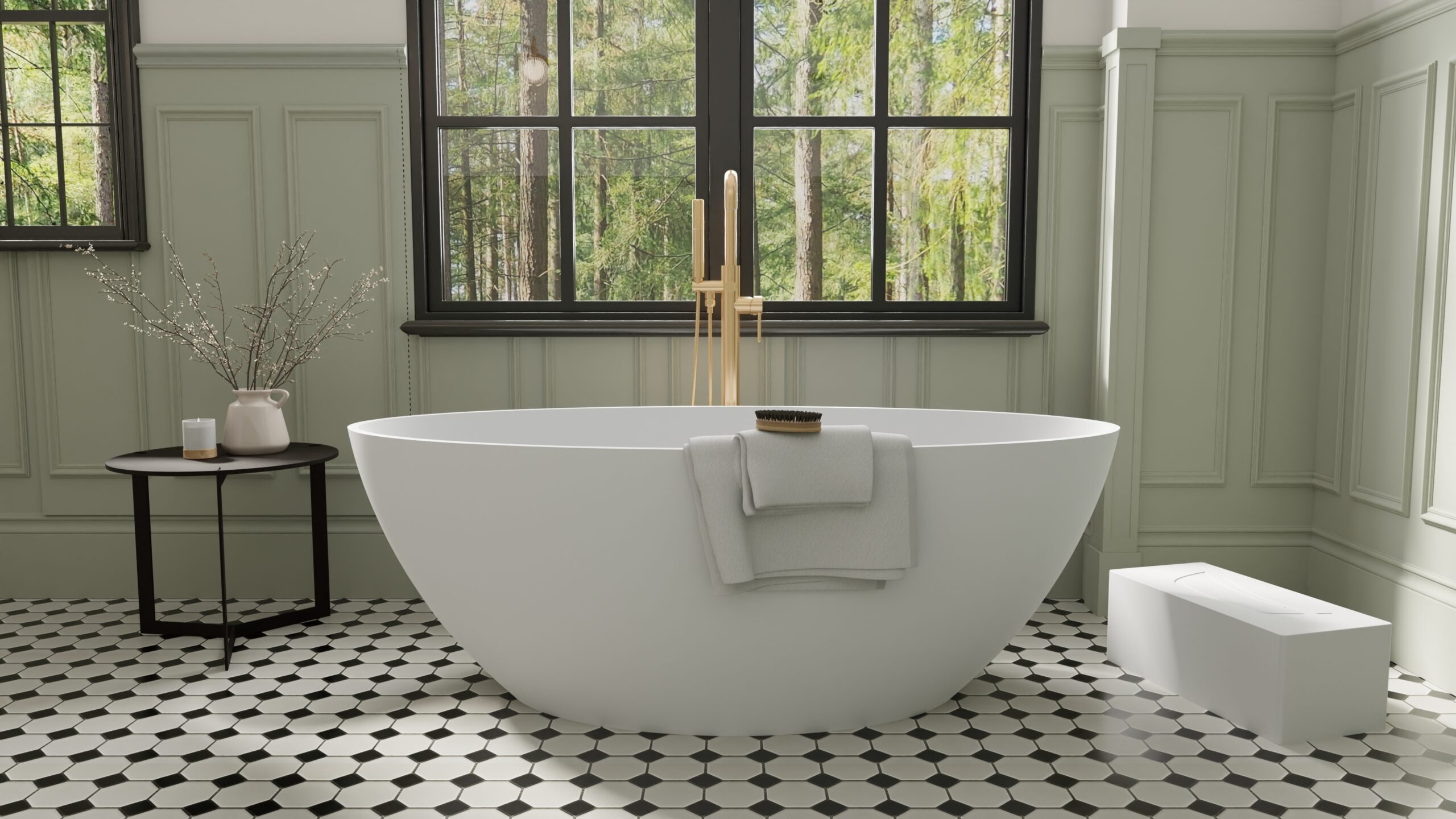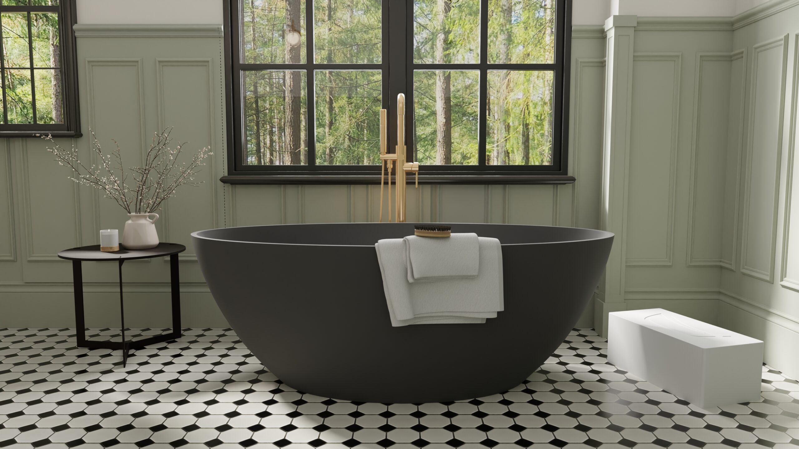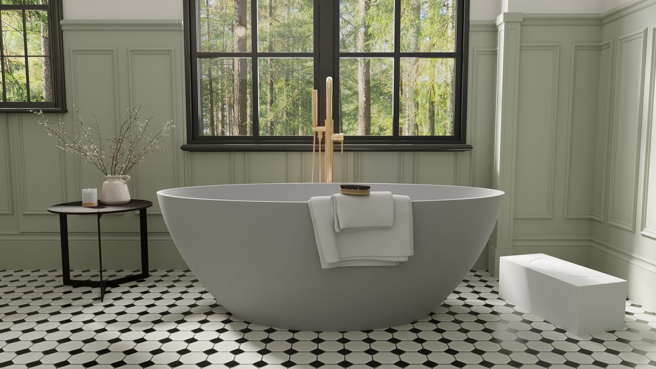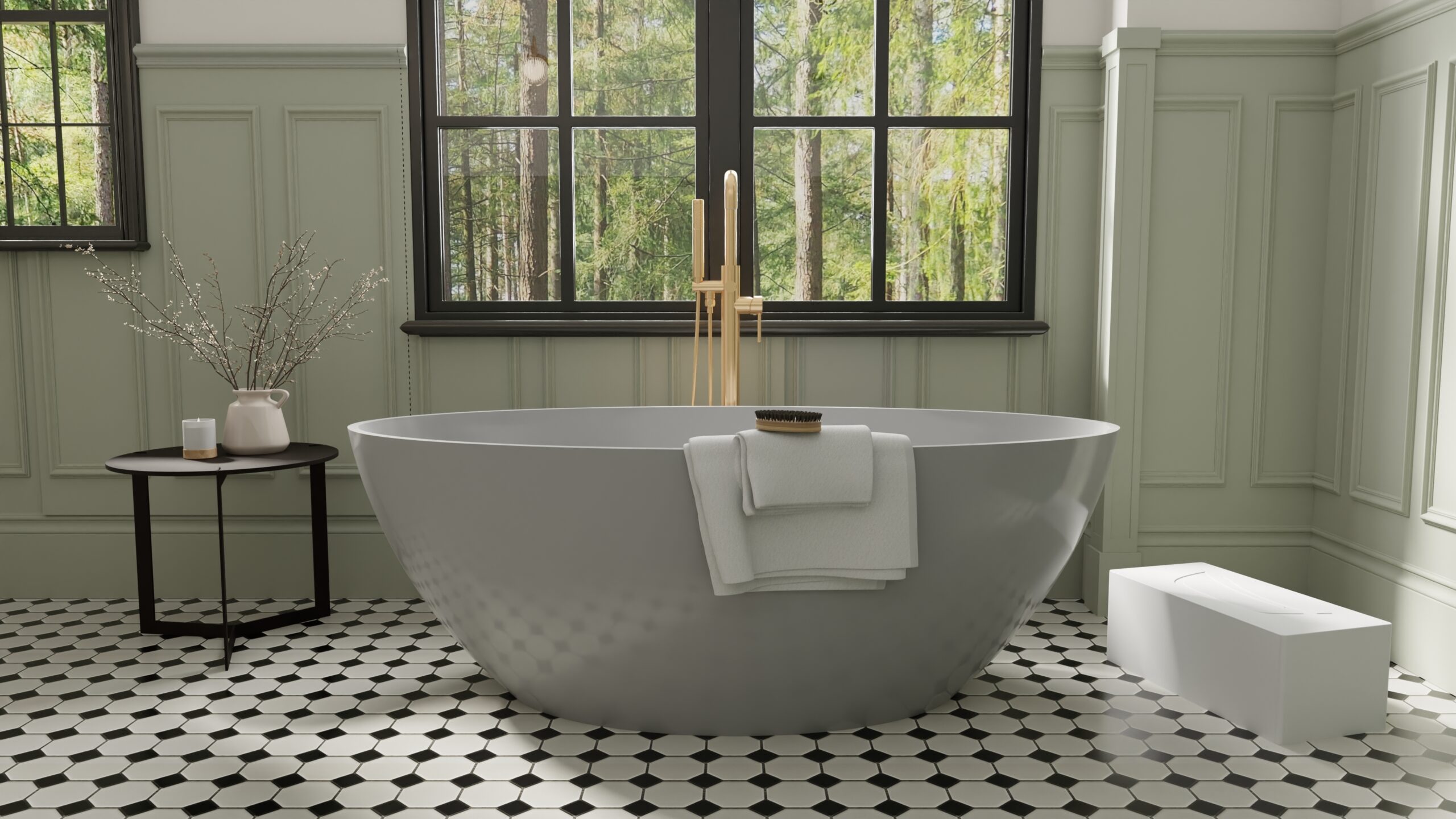 Envision your luxury bathroom with free templates and samples of Badeloft’s stone resin material.