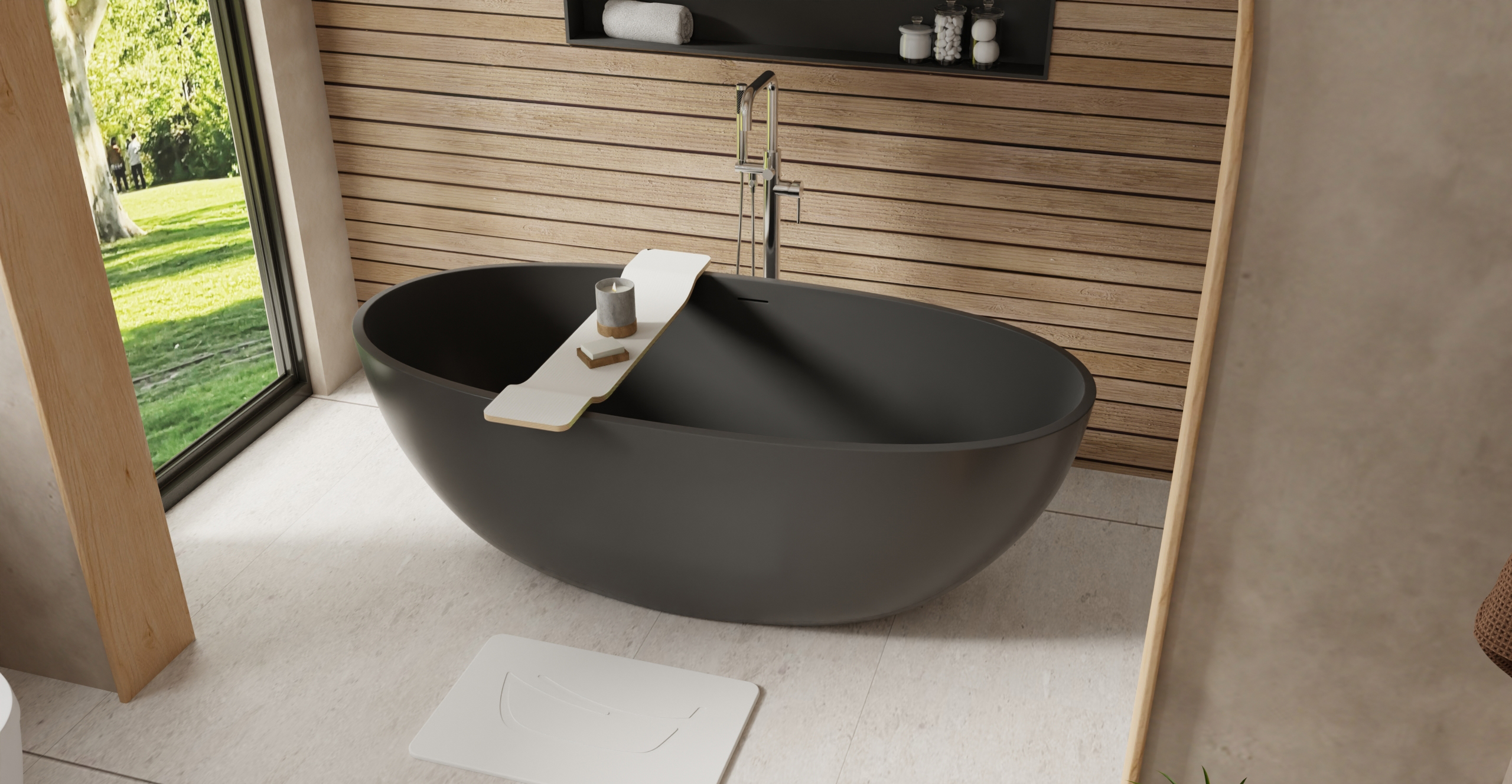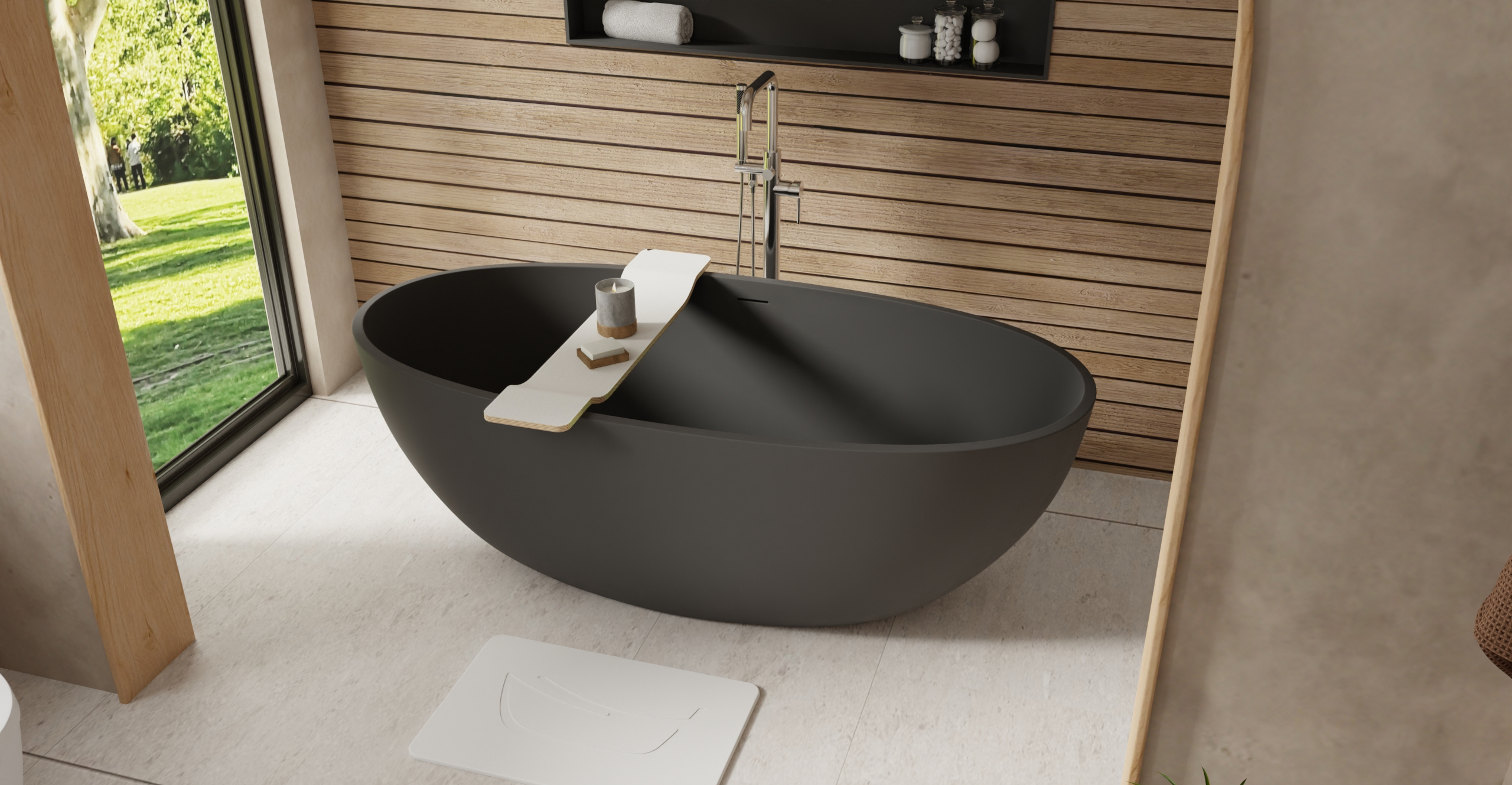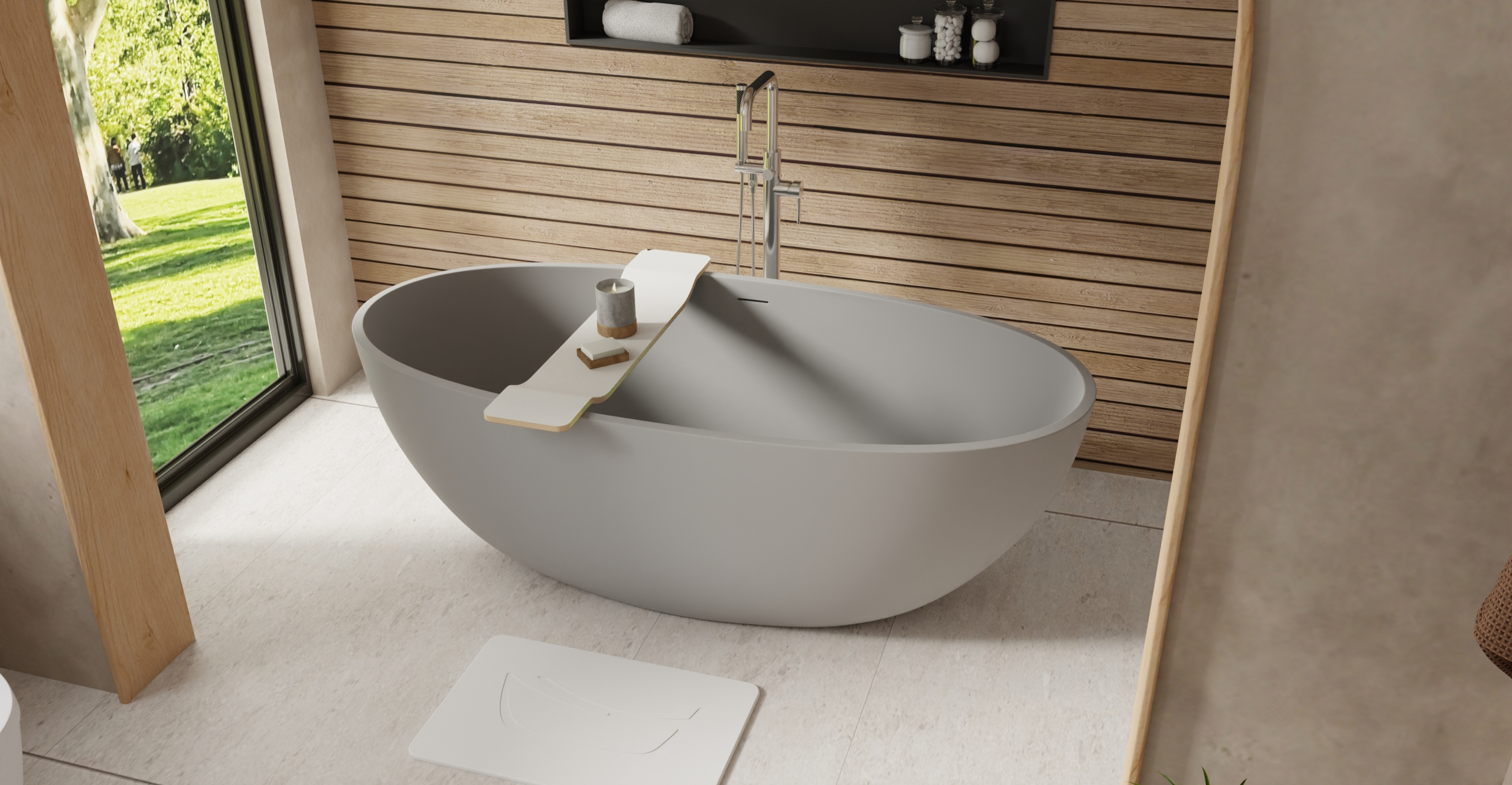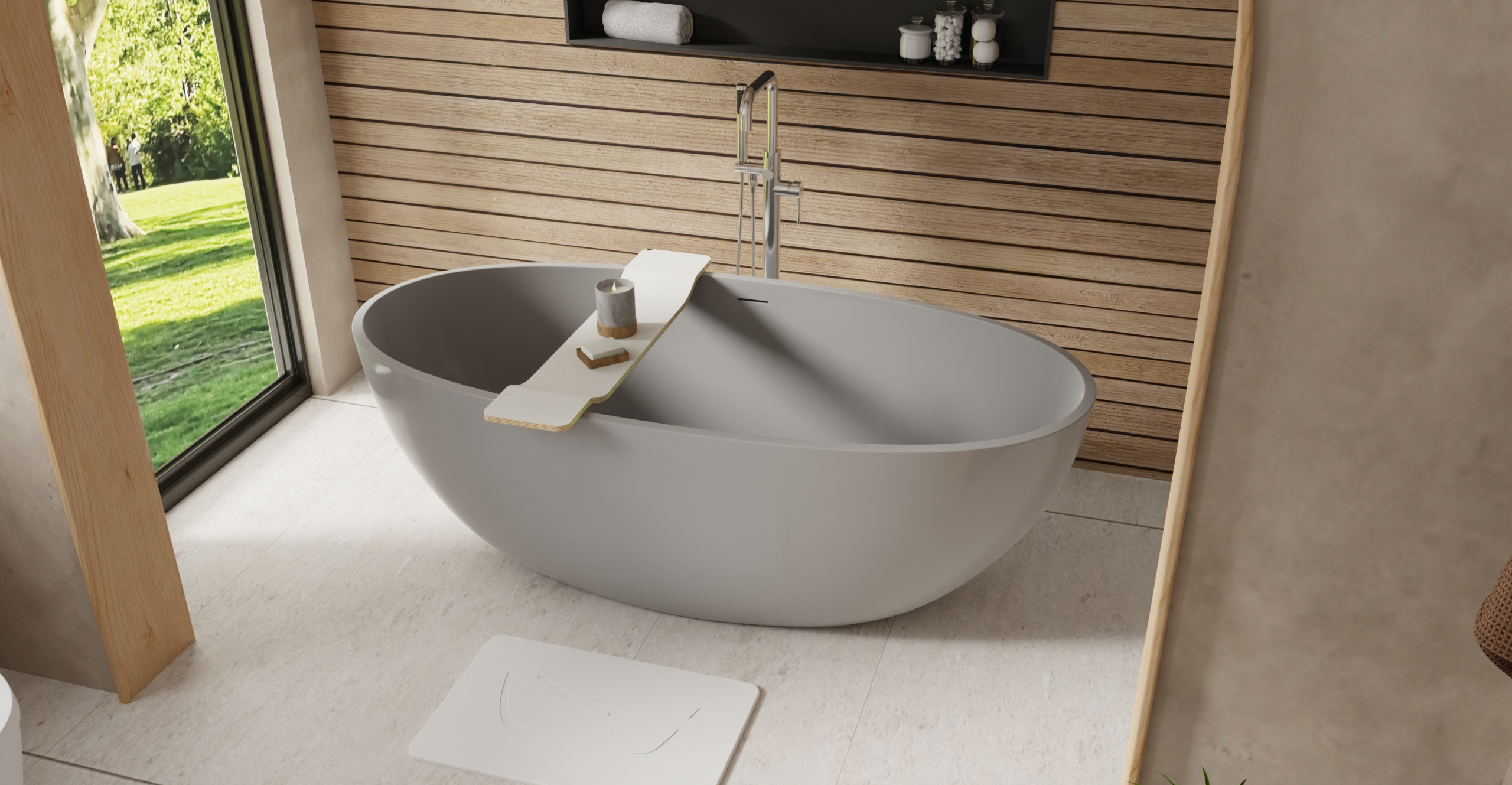 Envision your luxury bathroom with free templates and samples of Badeloft’s stone resin material.