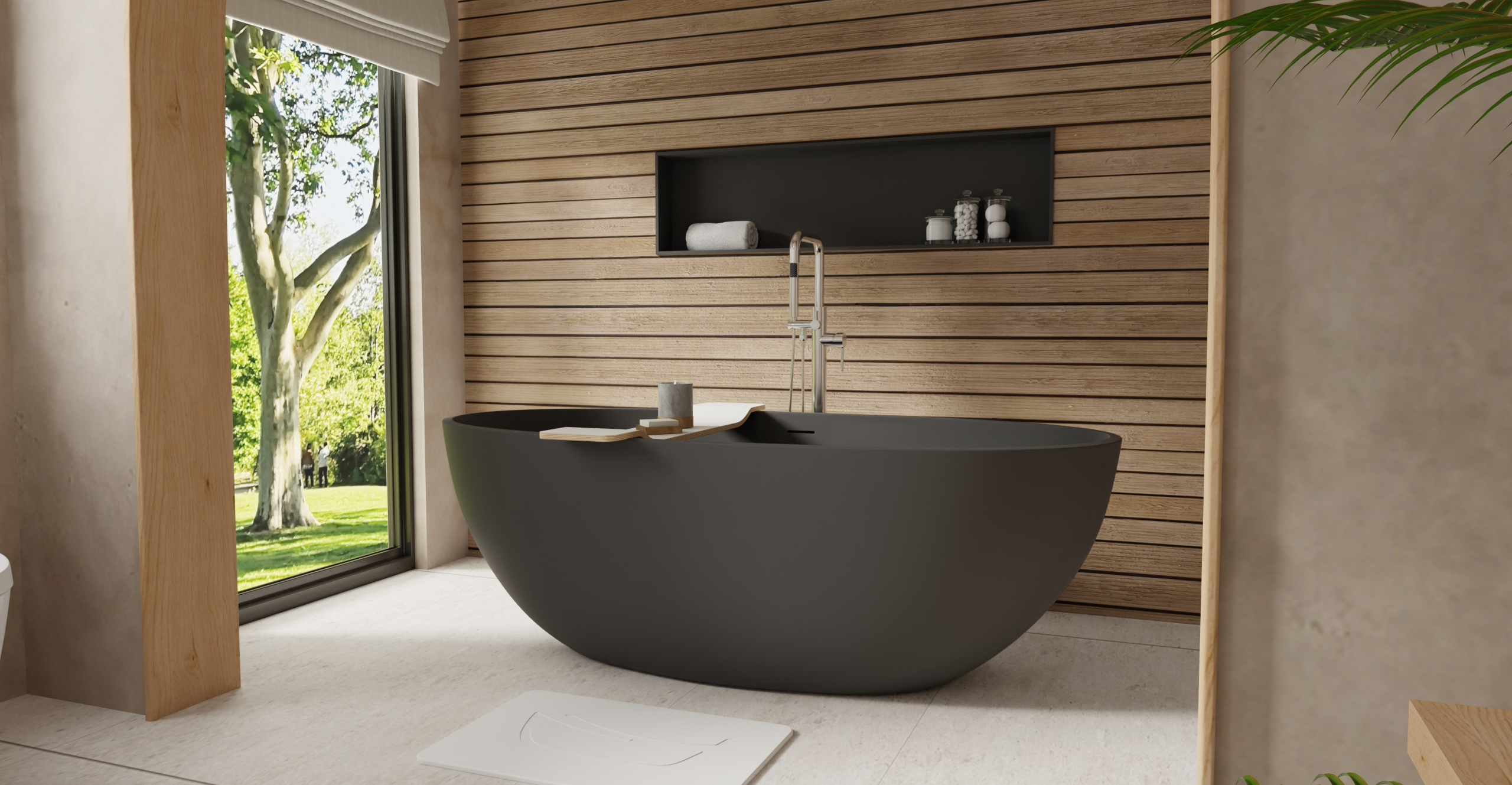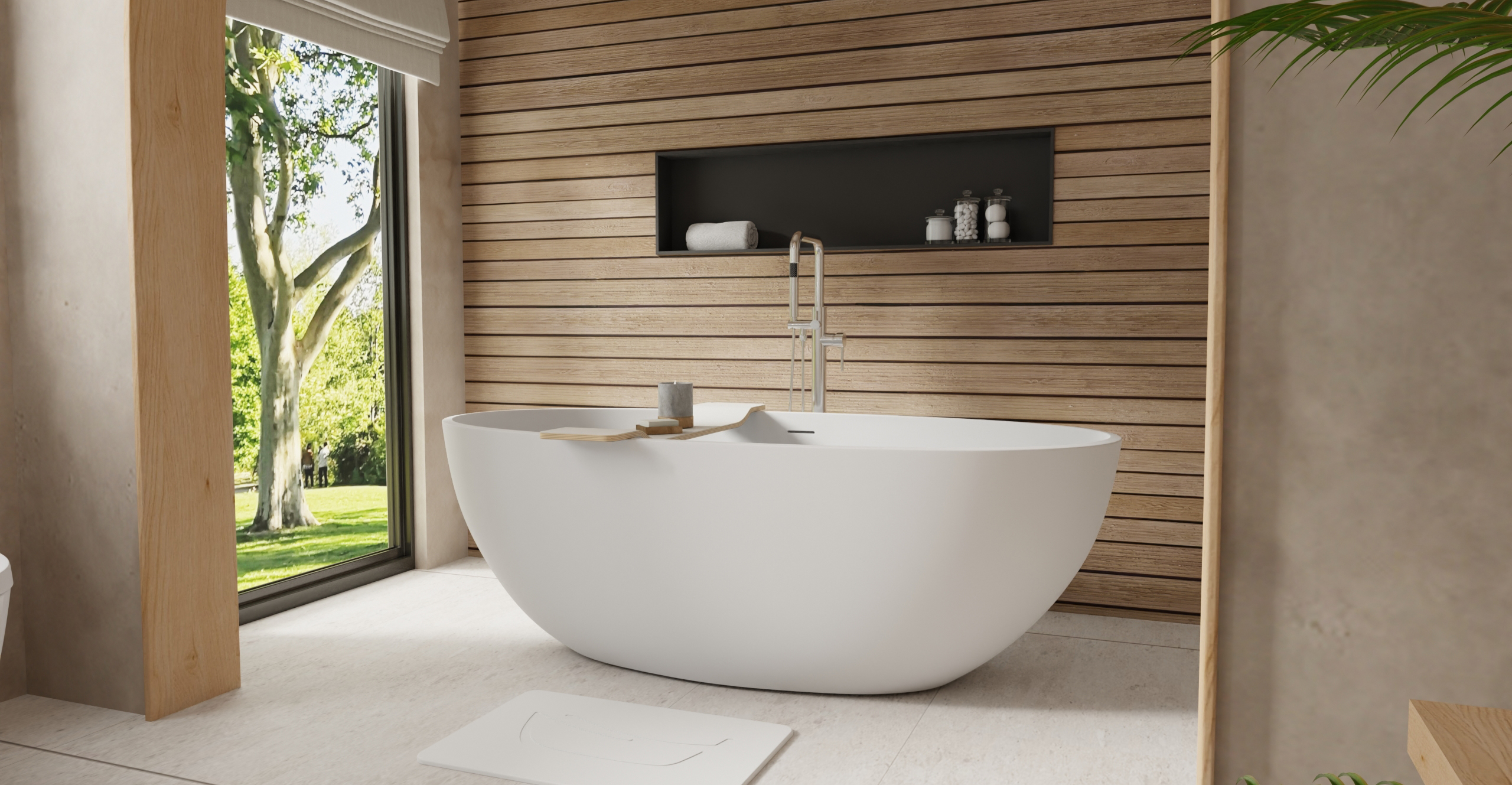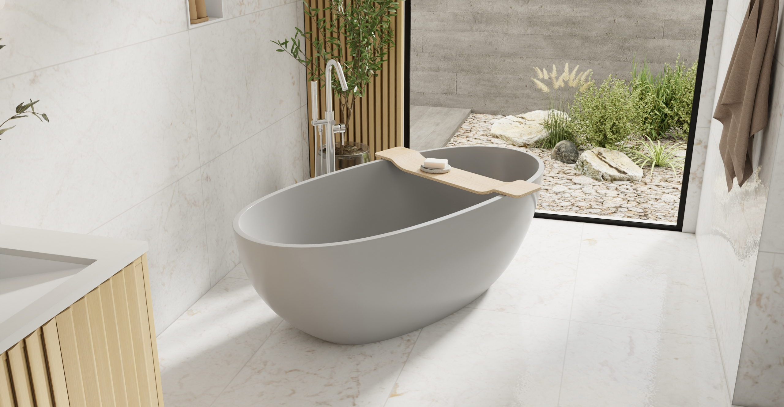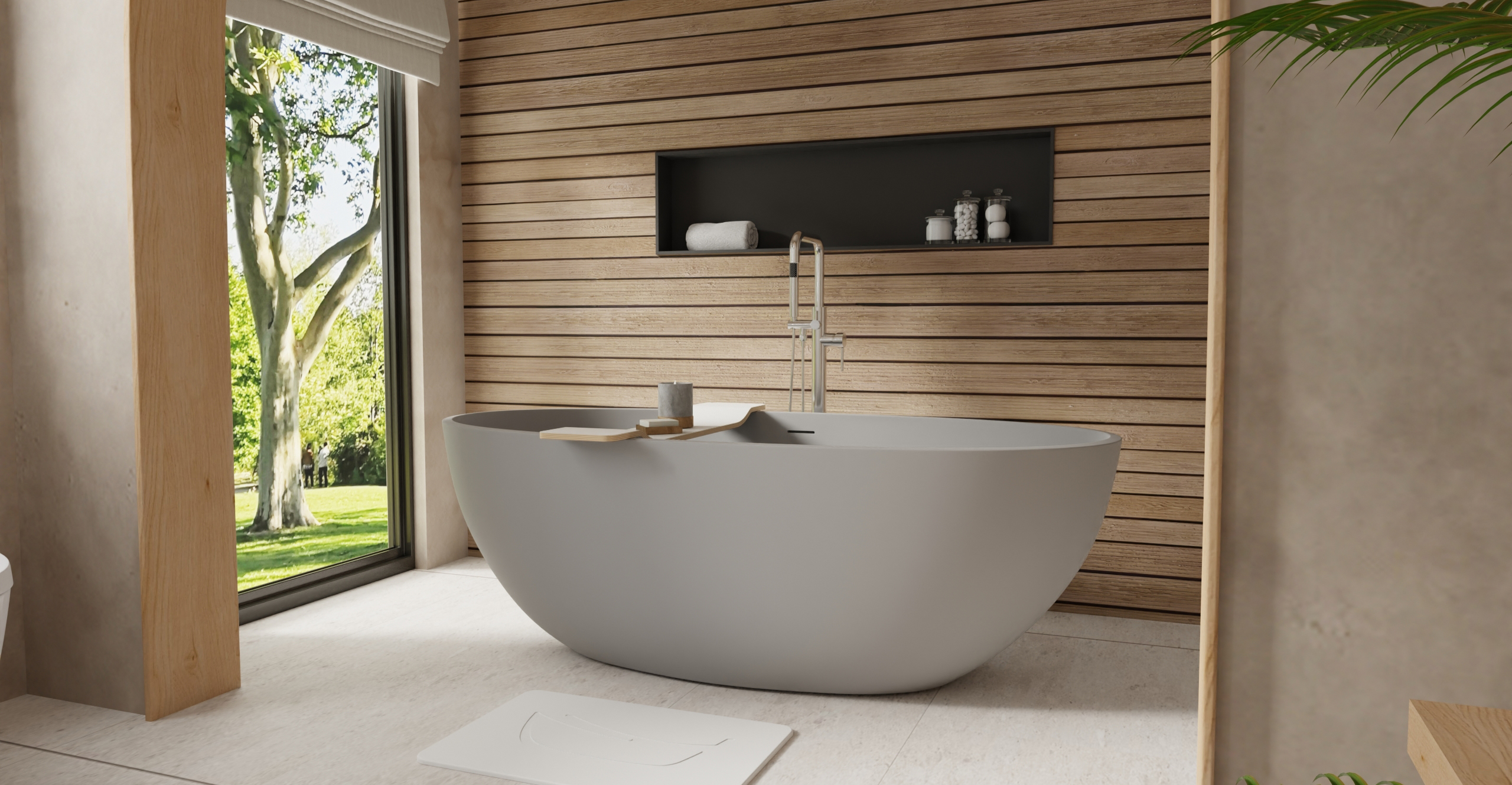 Envision your luxury bathroom with free templates and samples of Badeloft’s stone resin material.