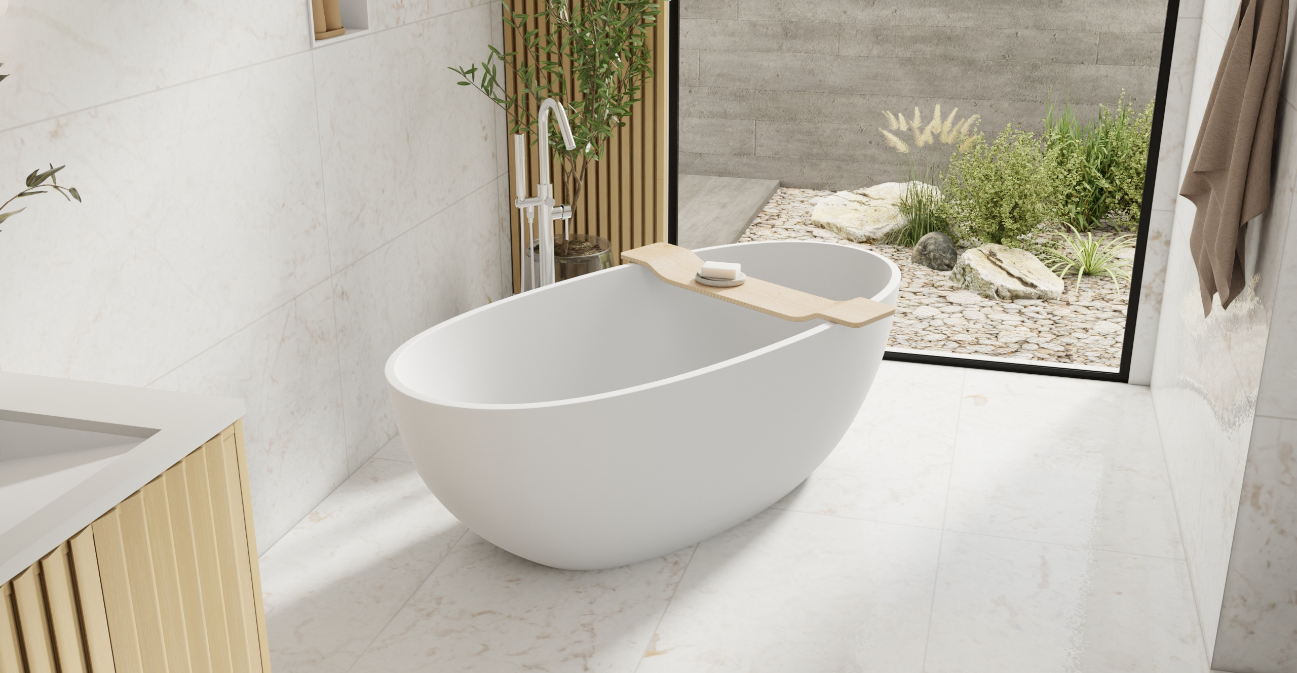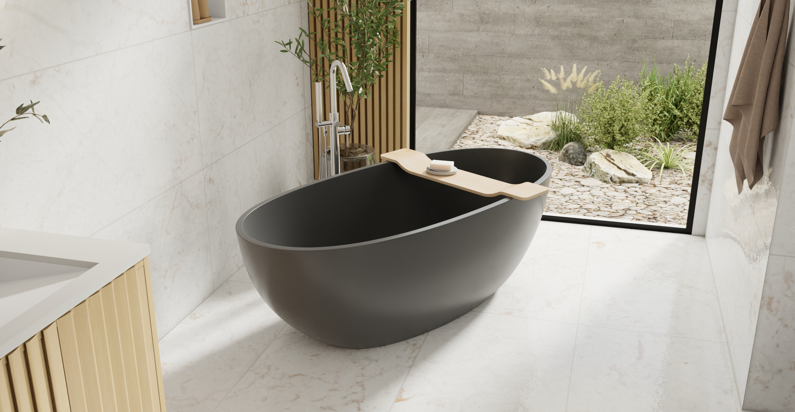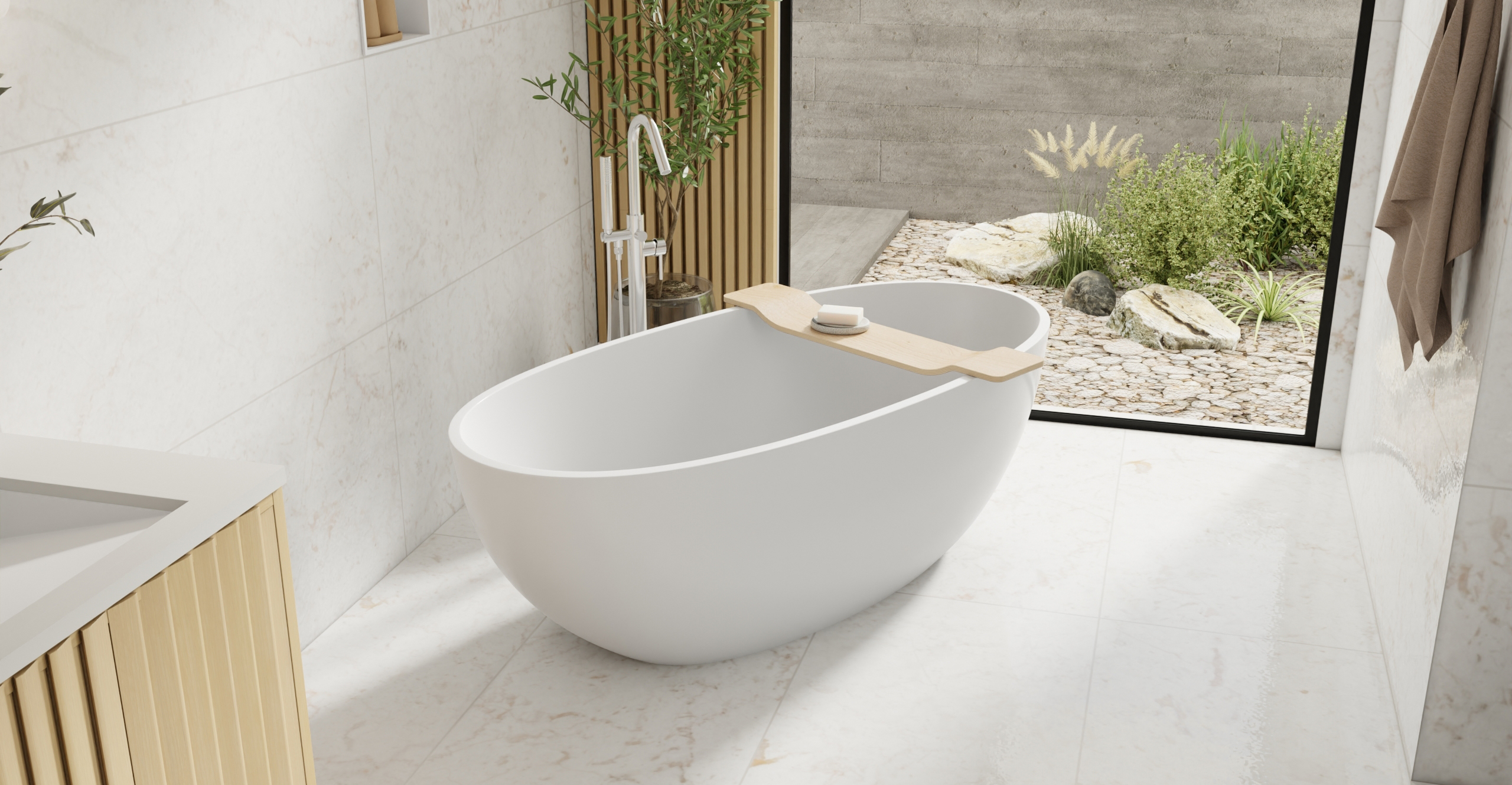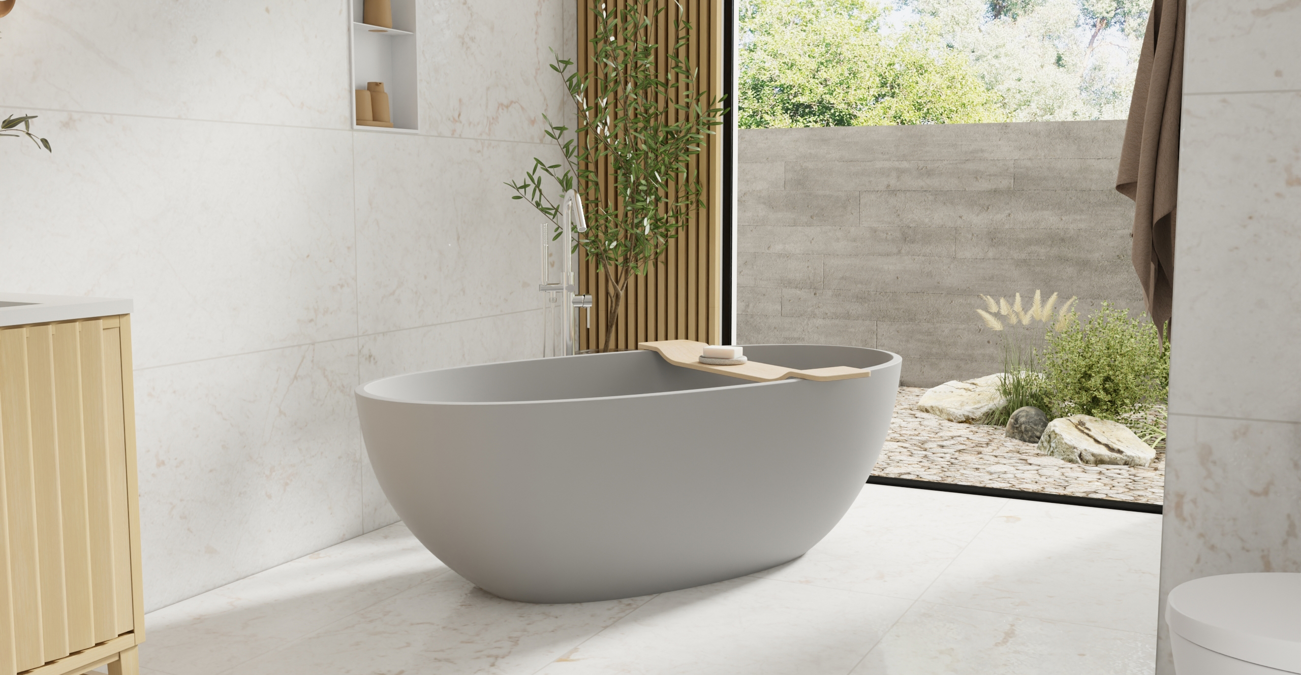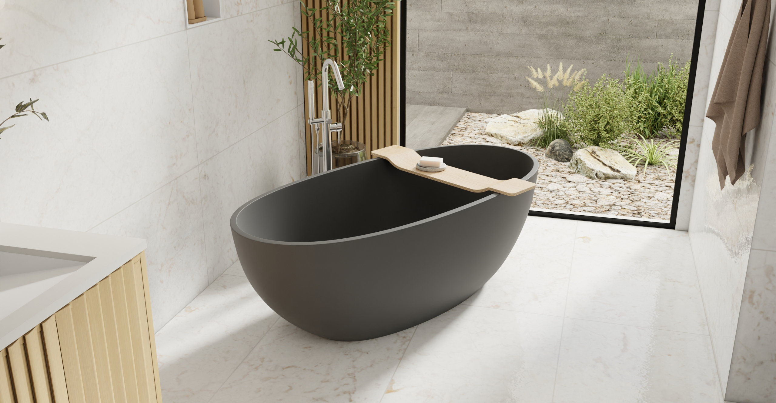 Envision your luxury bathroom with free templates and samples of Badeloft’s stone resin material.