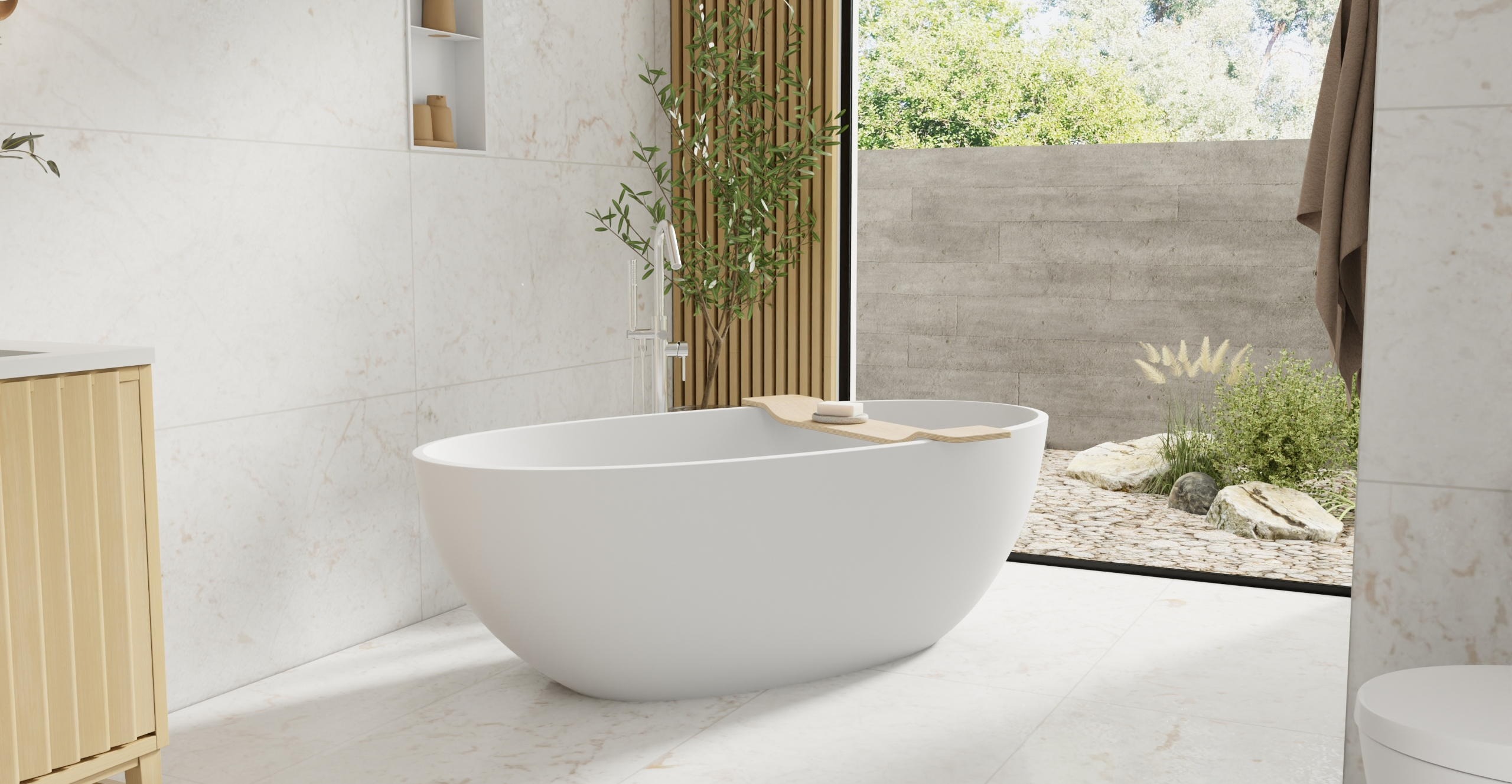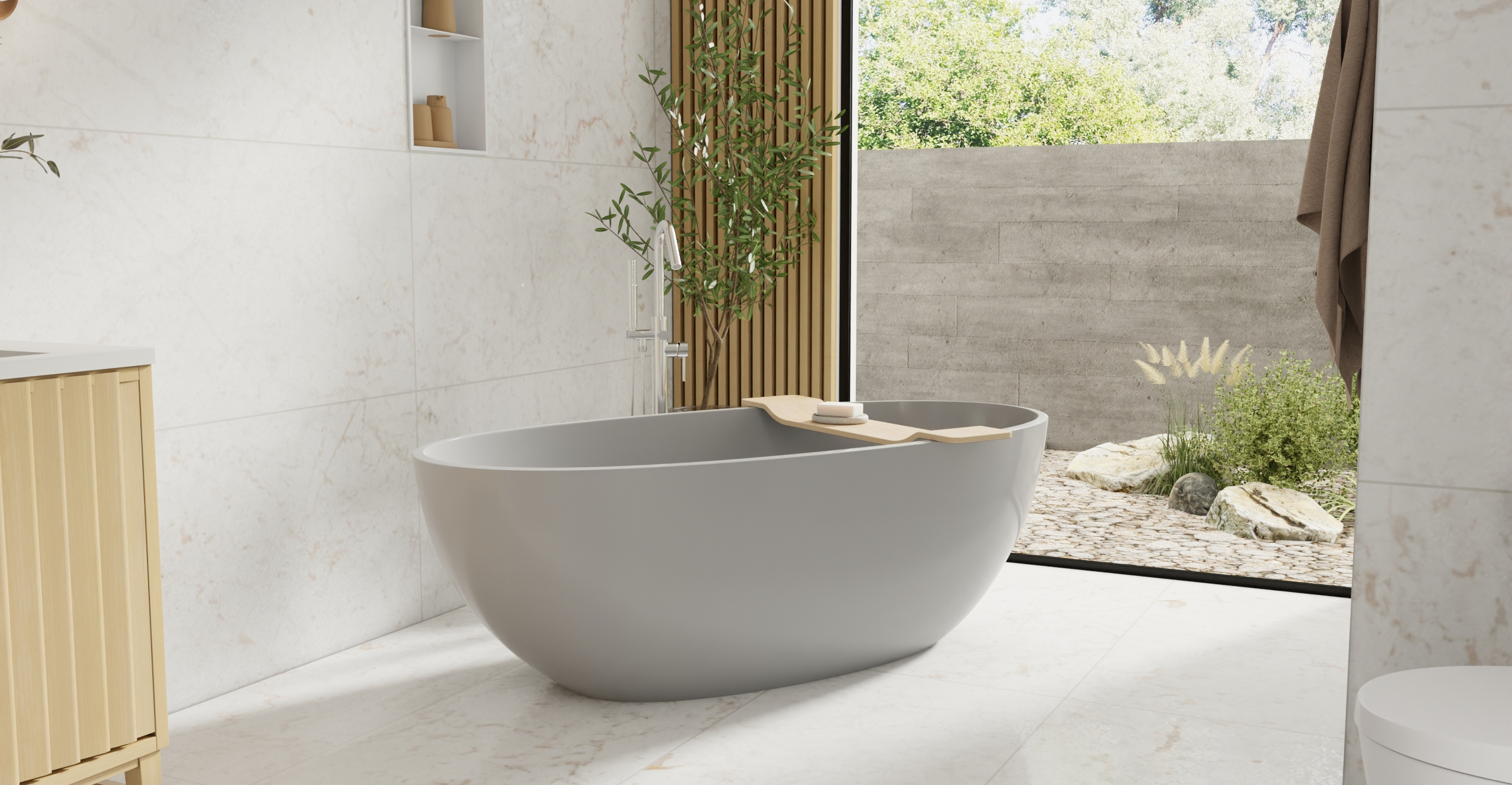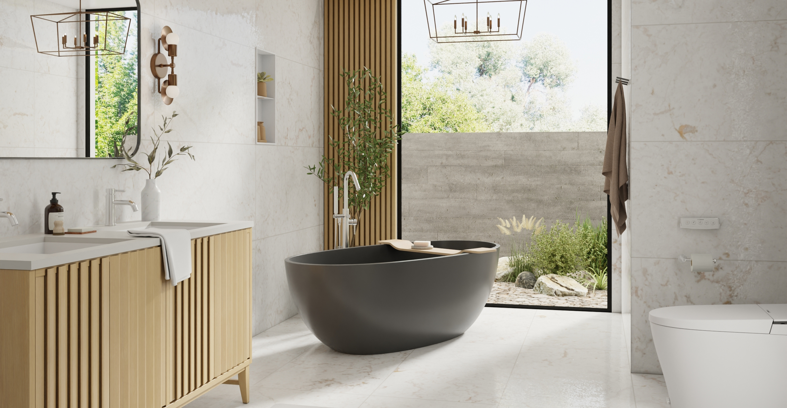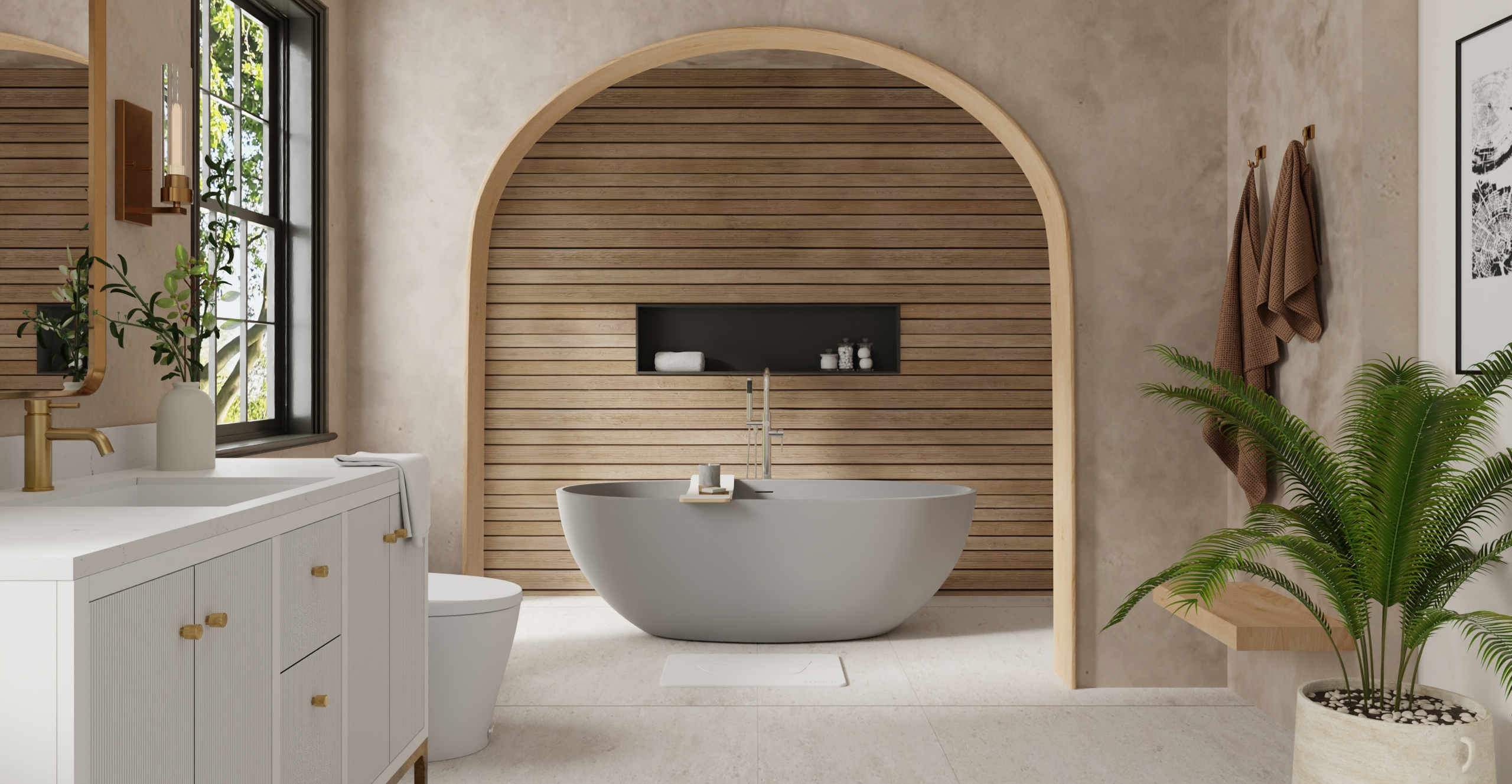 Envision your luxury bathroom with free templates and samples of Badeloft’s stone resin material.