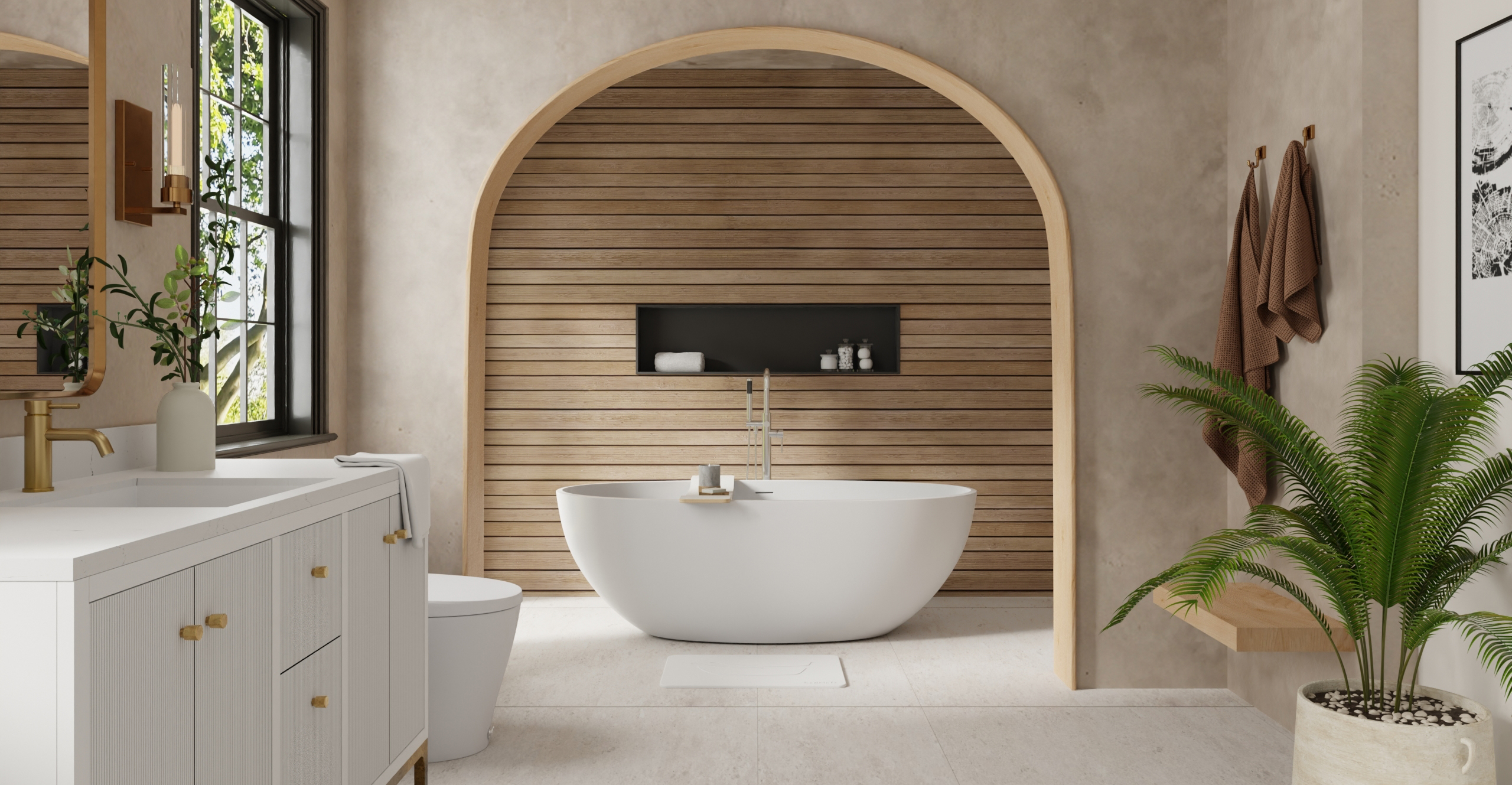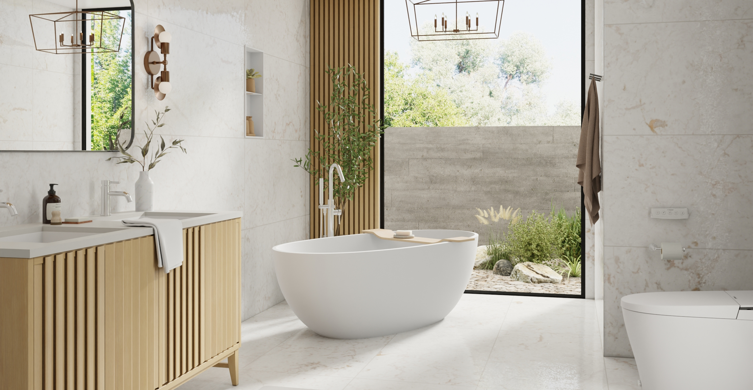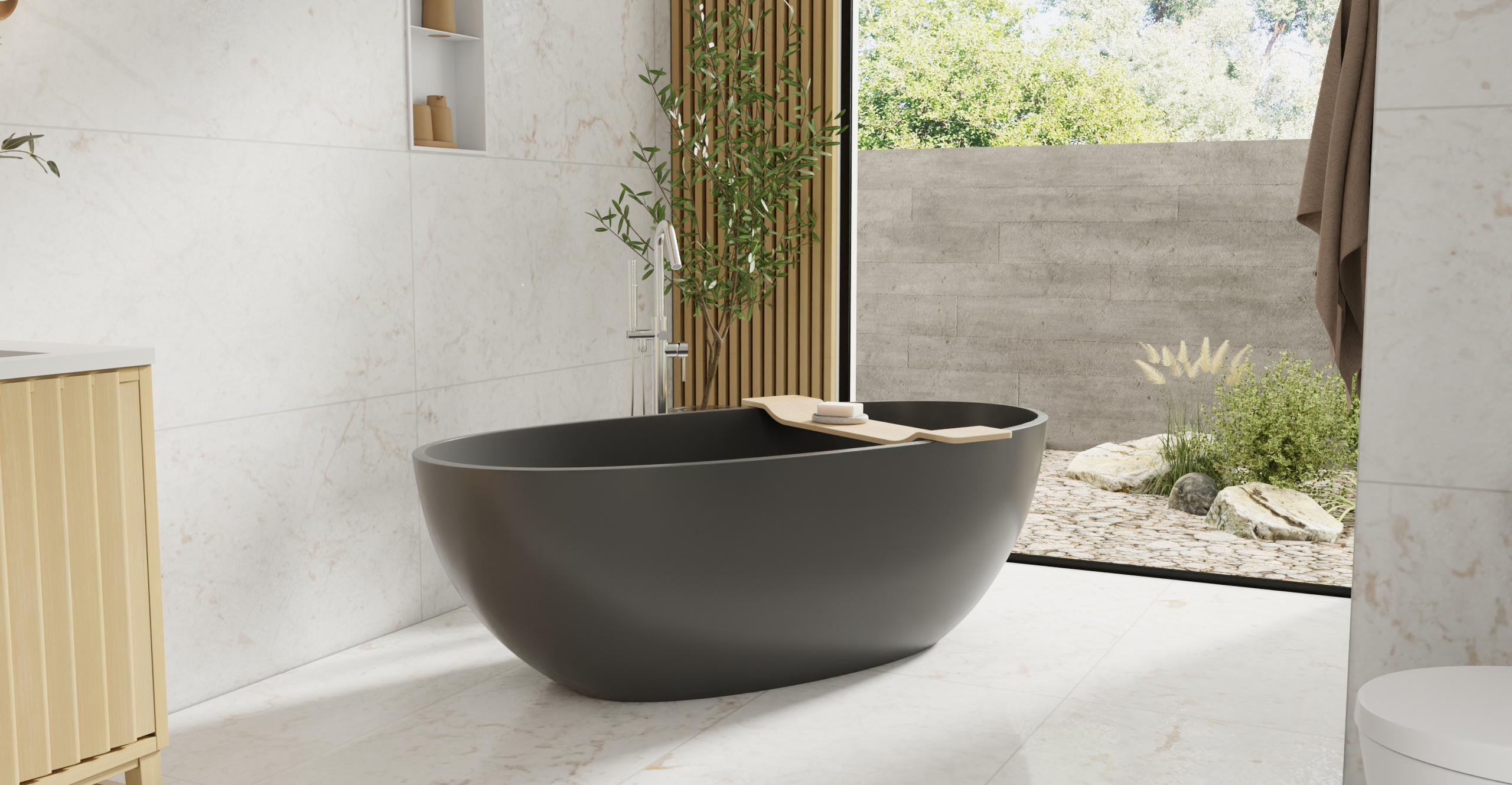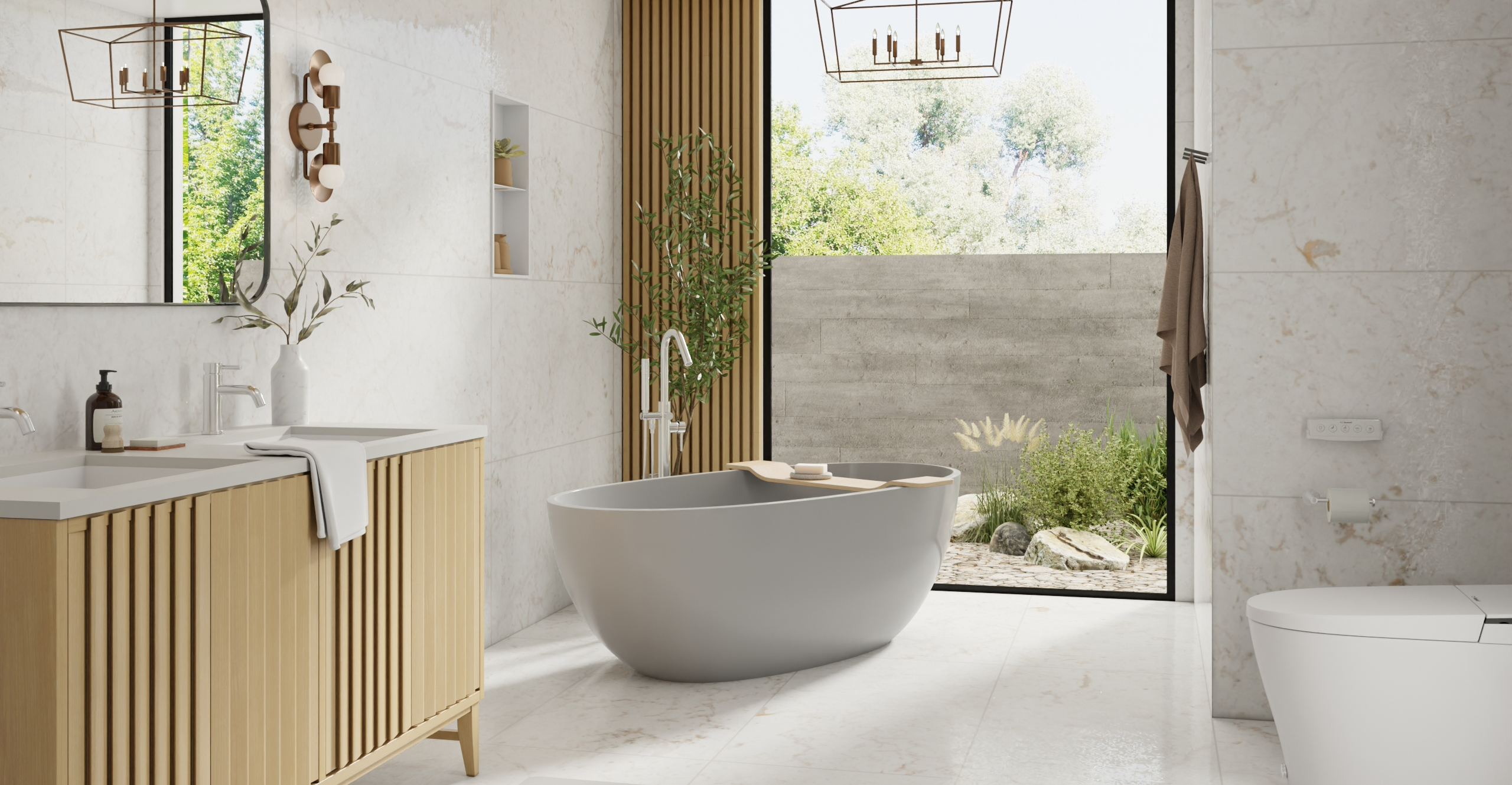 Envision your luxury bathroom with free templates and samples of Badeloft’s stone resin material.