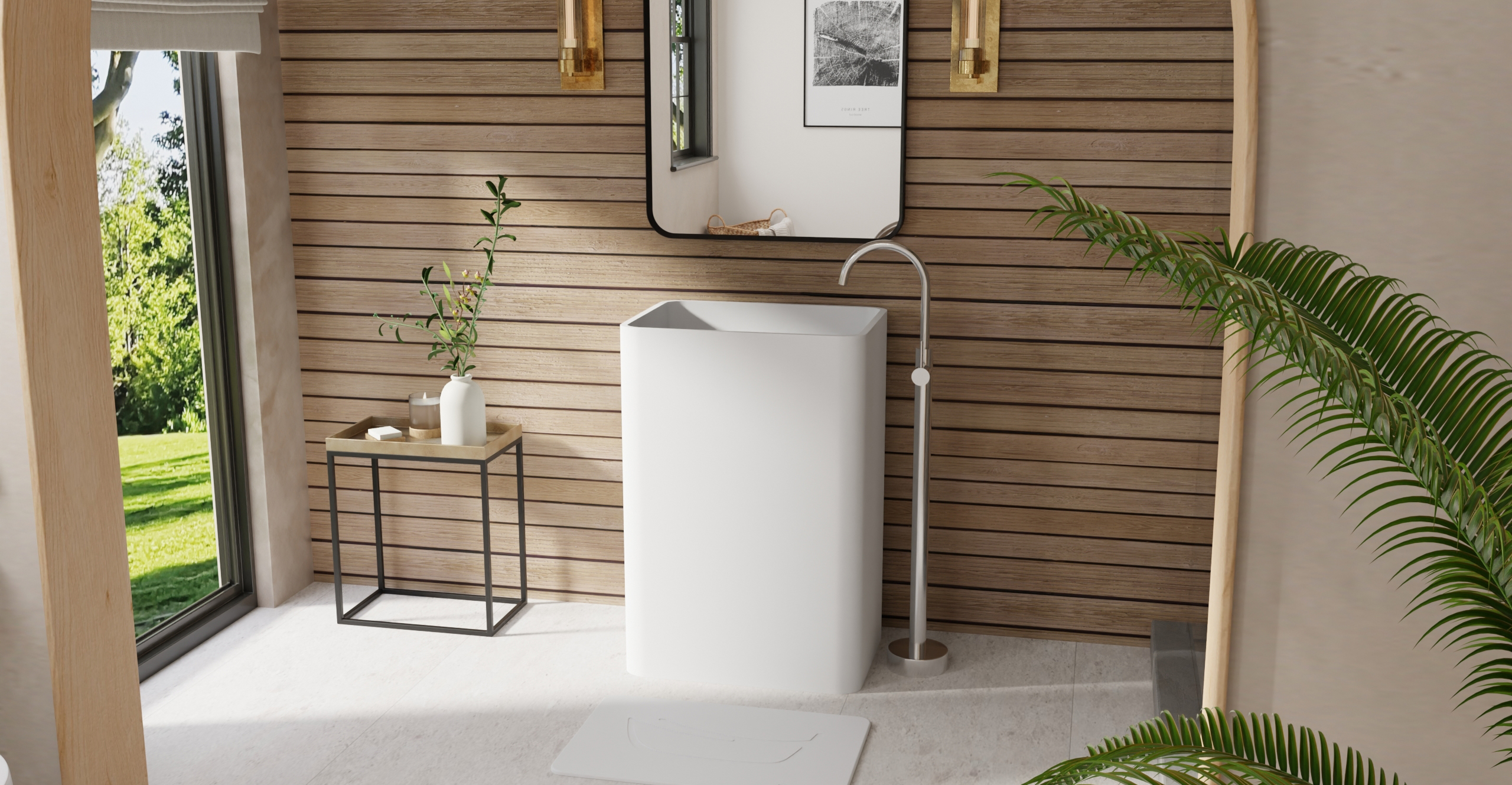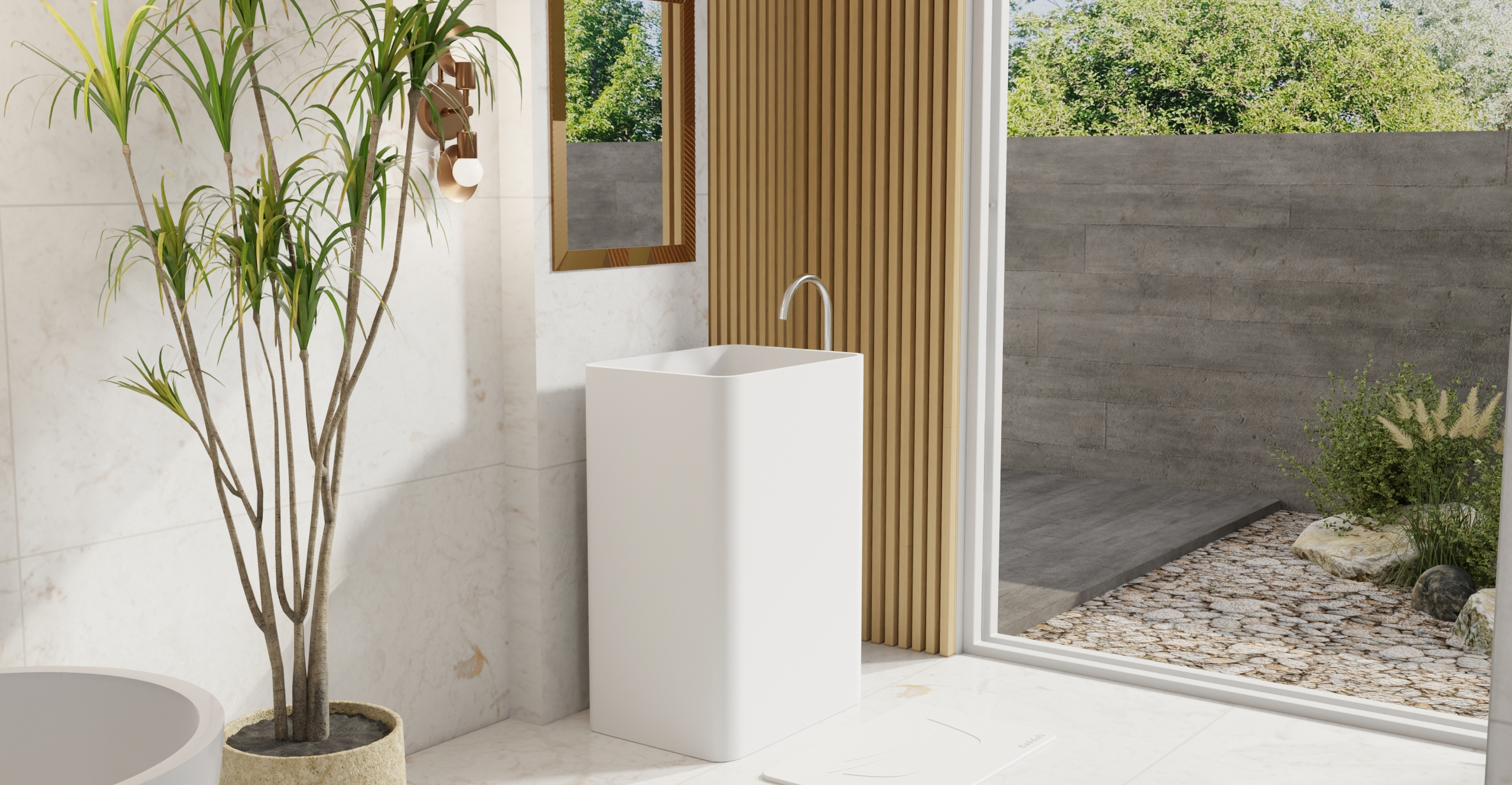 Envision your luxury bathroom with free templates and samples of Badeloft’s stone resin material.