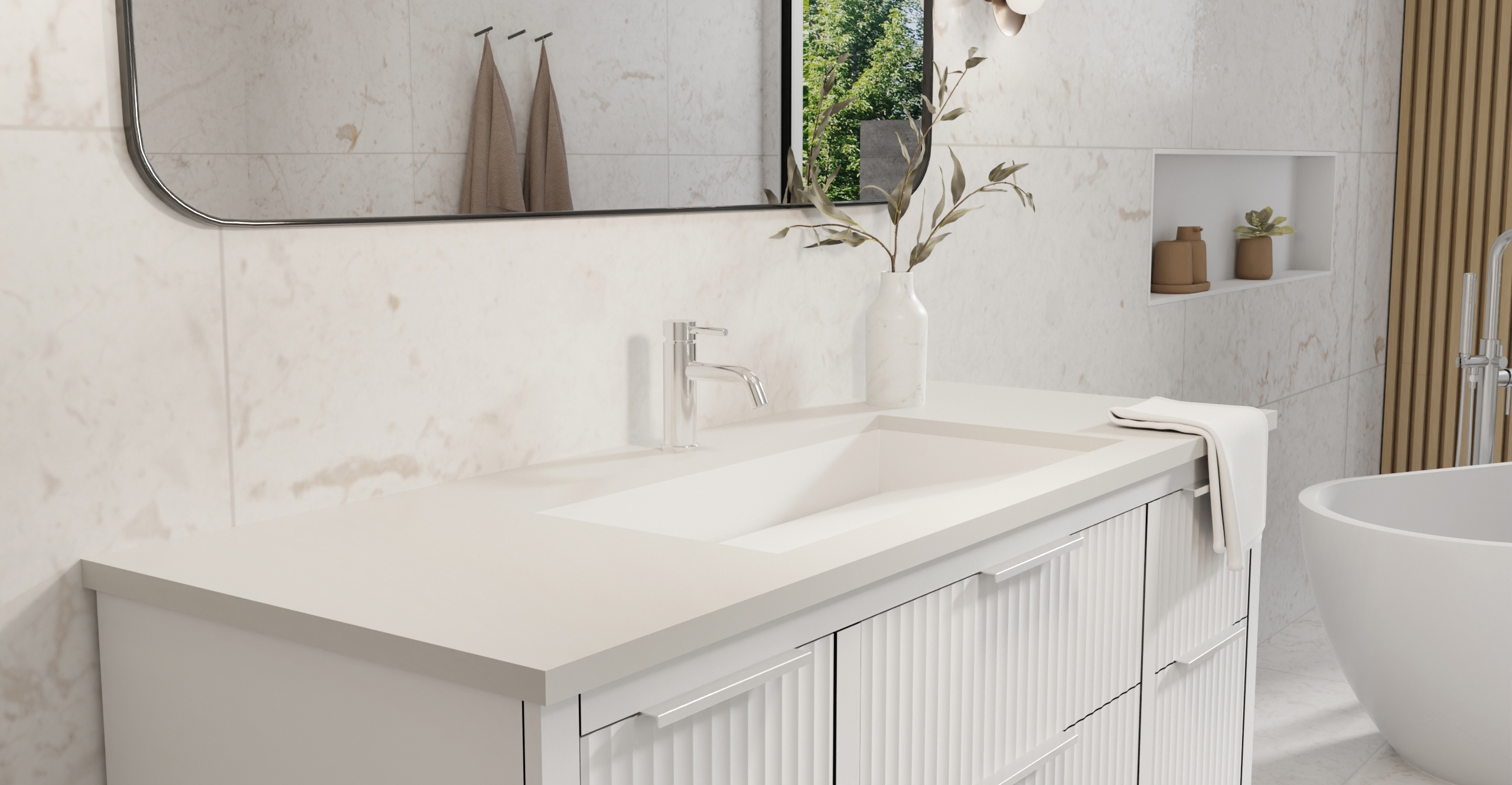 Envision your luxury bathroom with free templates and samples of Badeloft’s stone resin material.