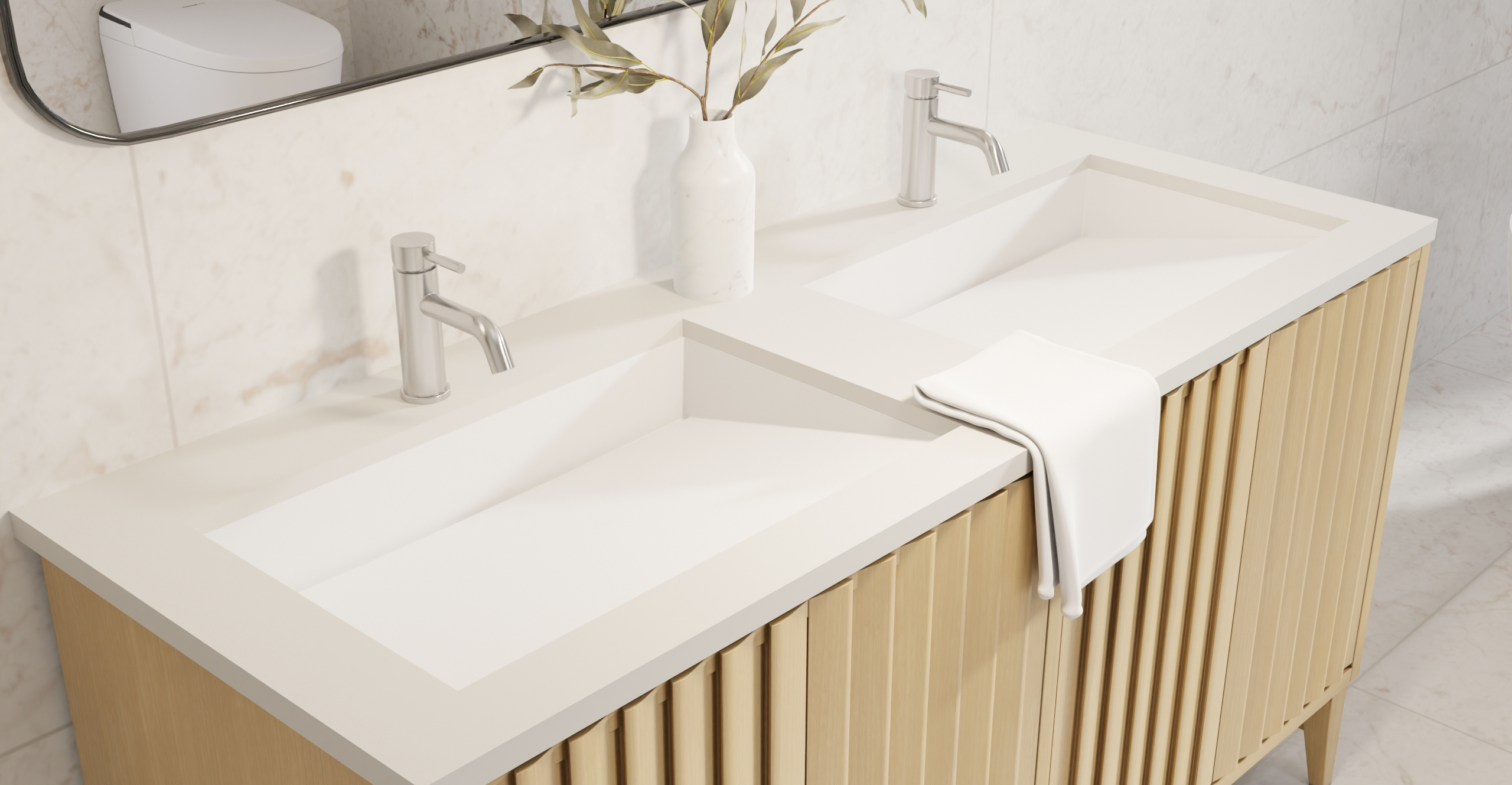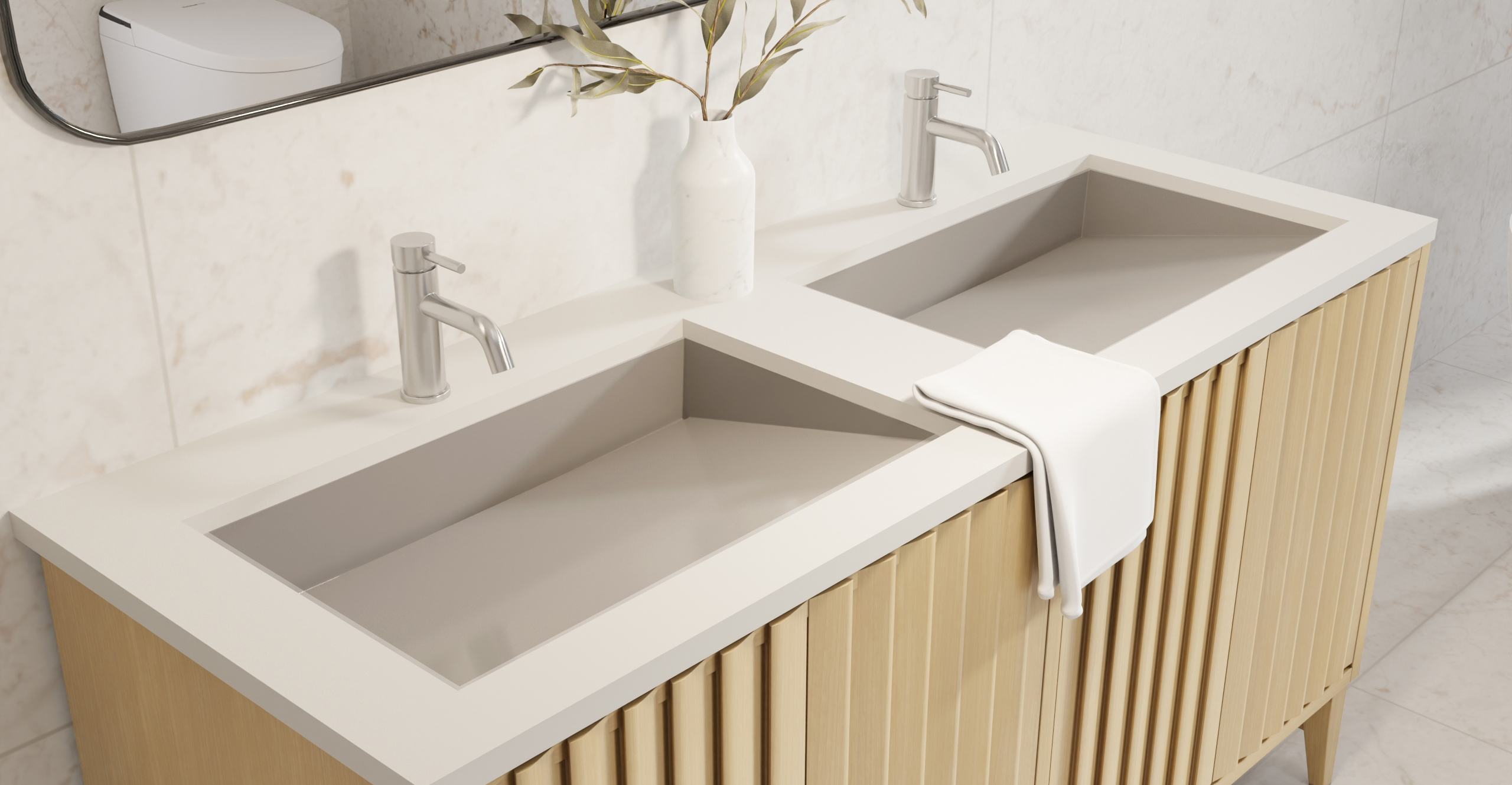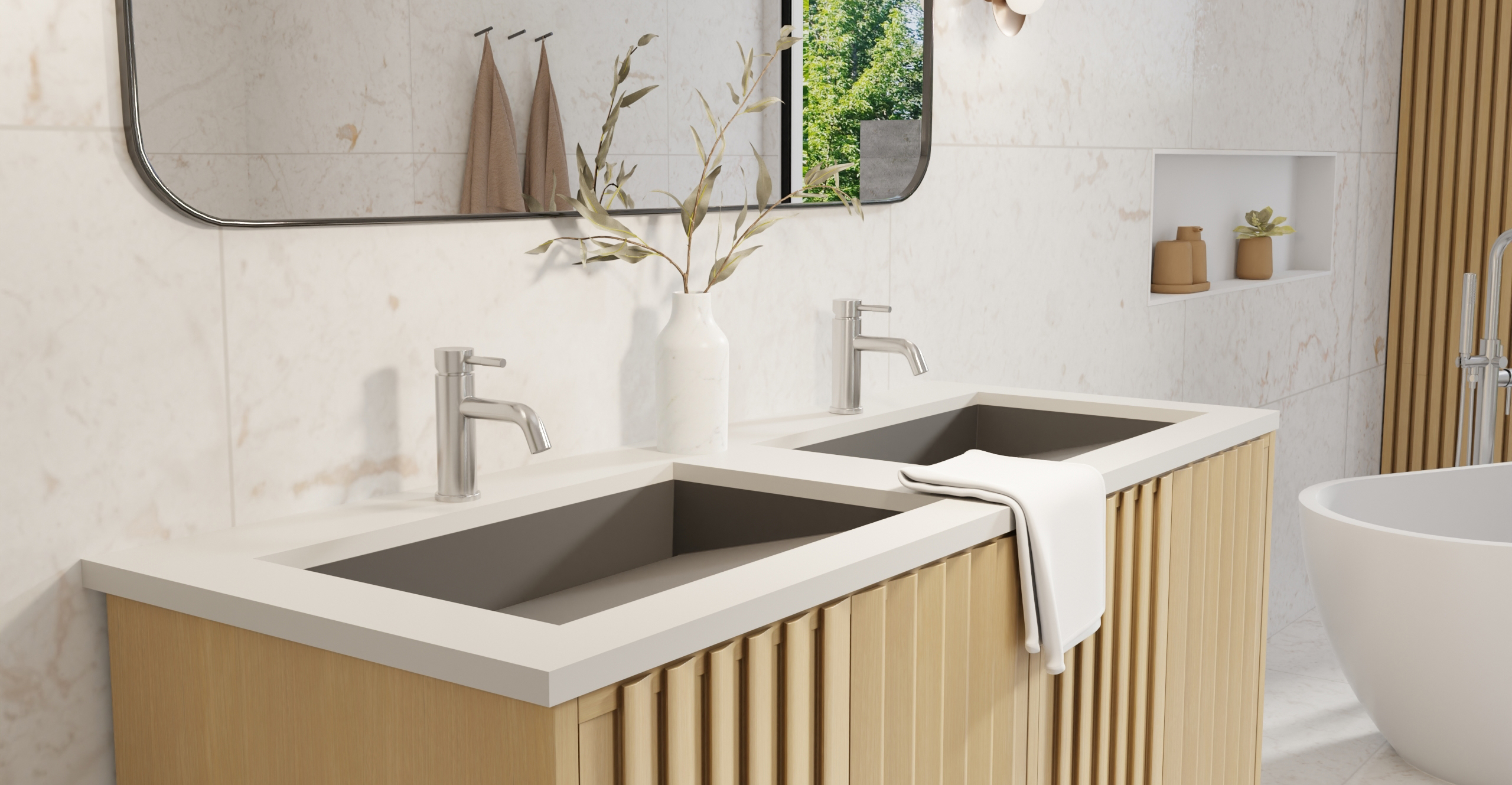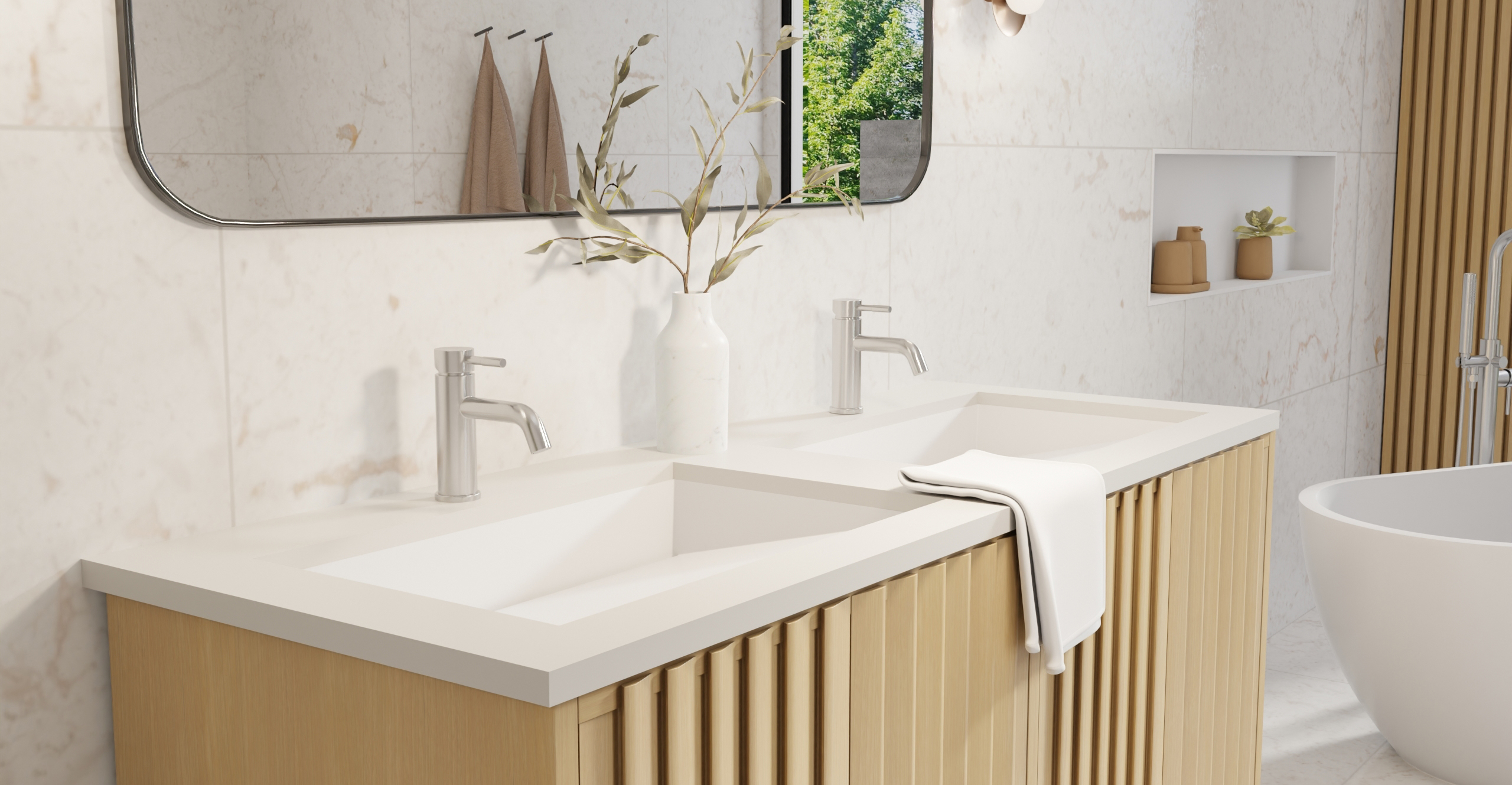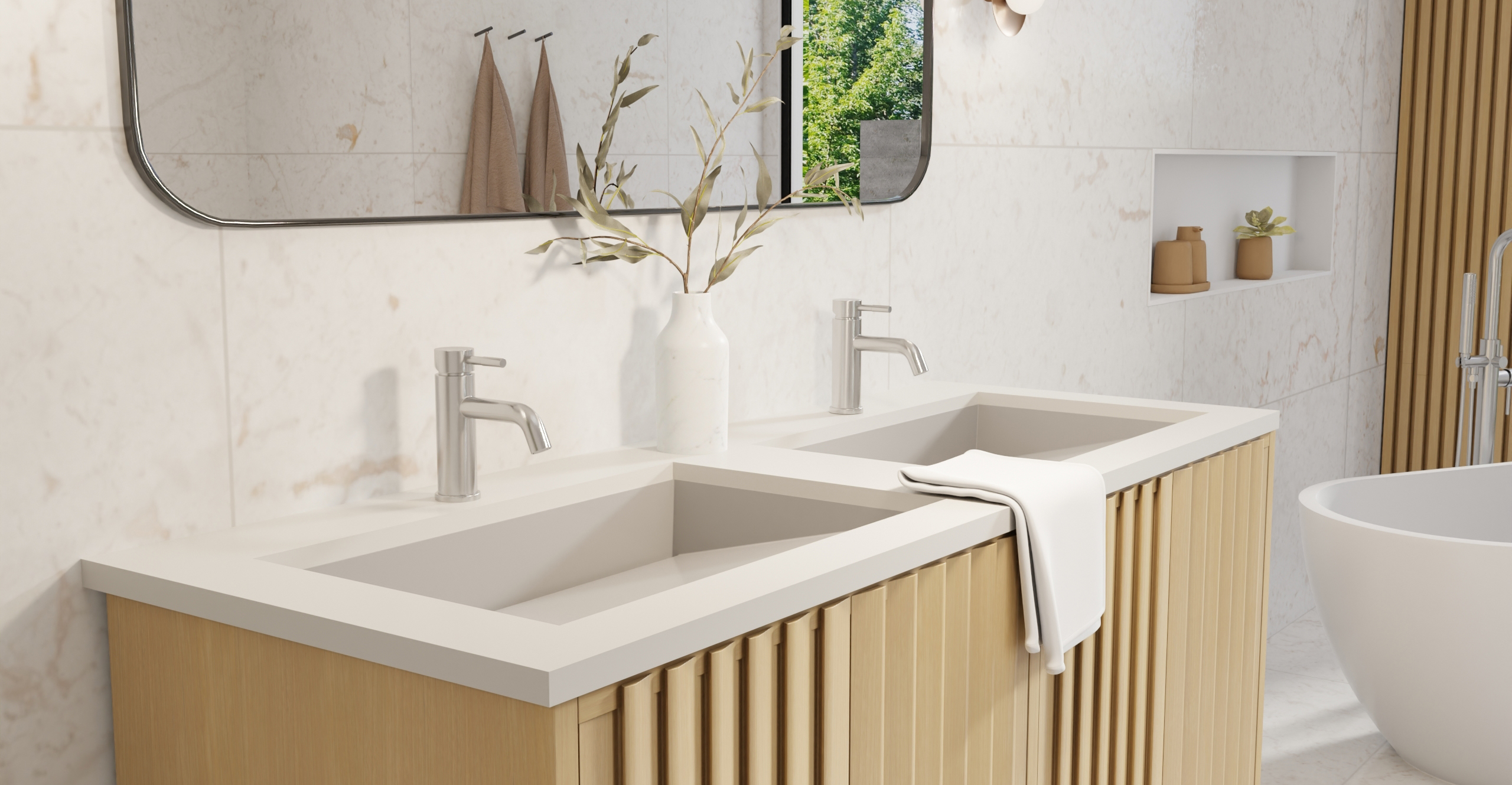 Envision your luxury bathroom with free templates and samples of Badeloft’s stone resin material.