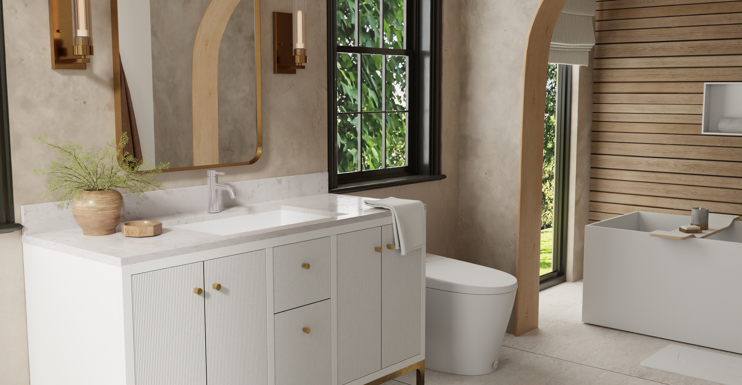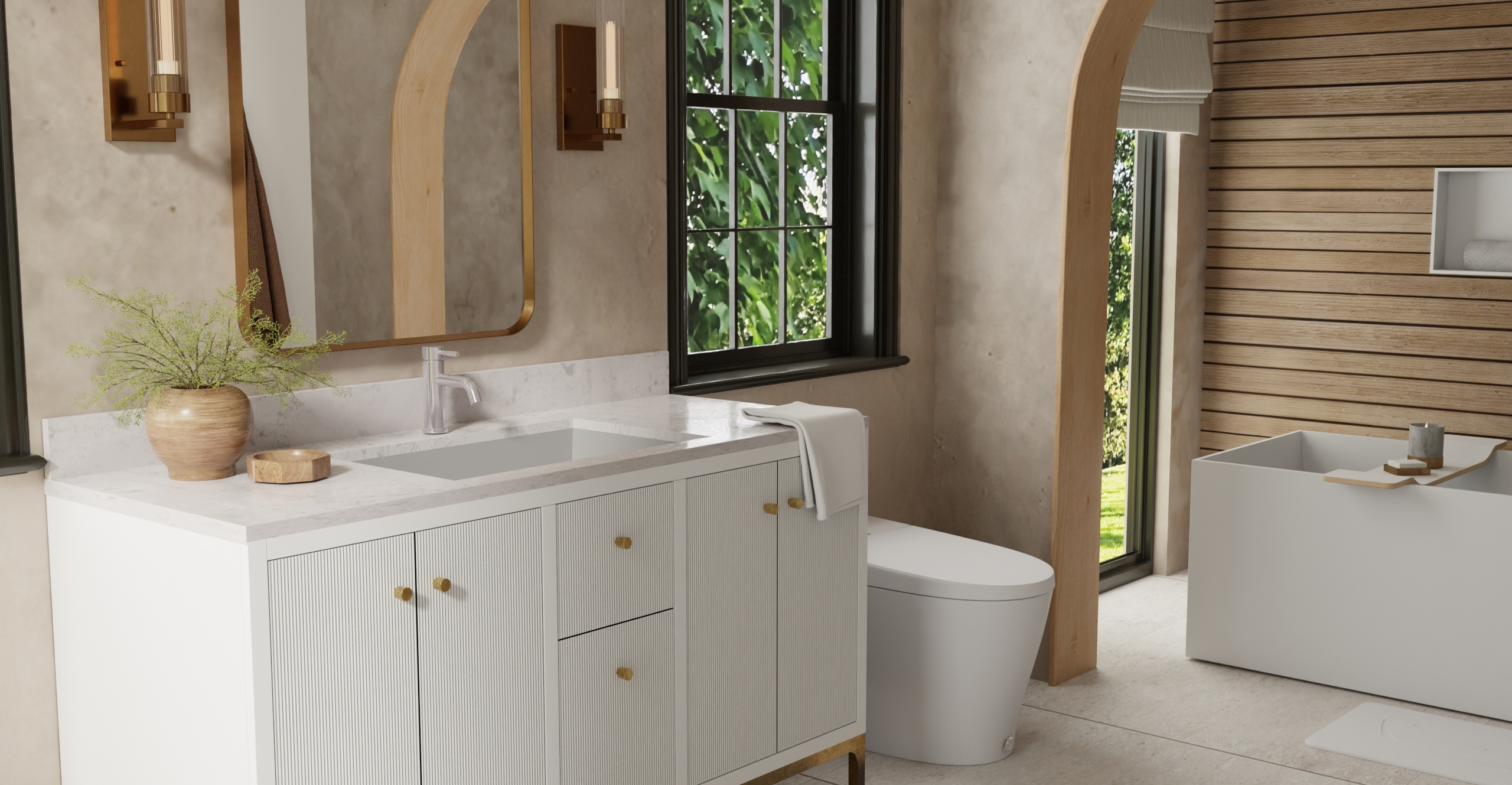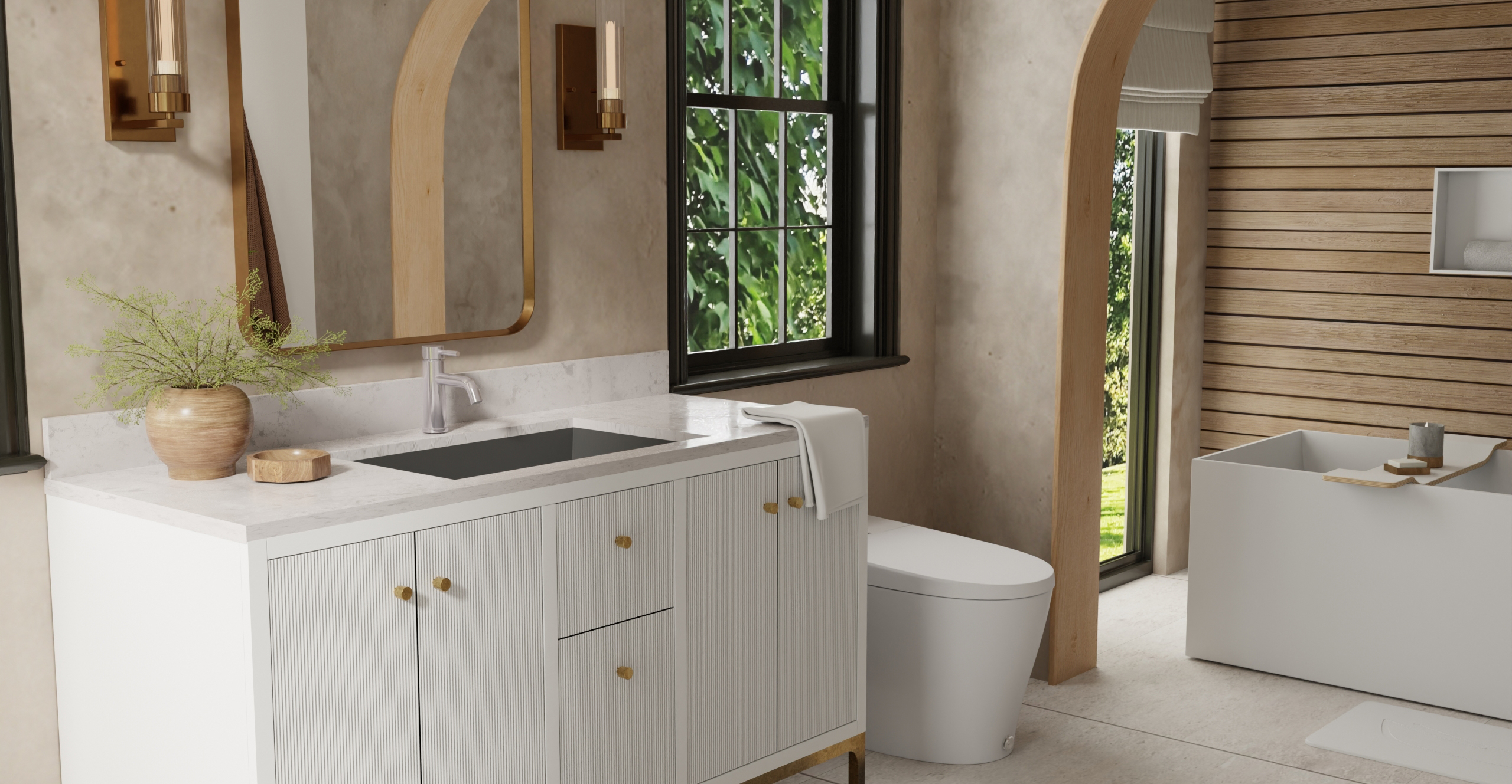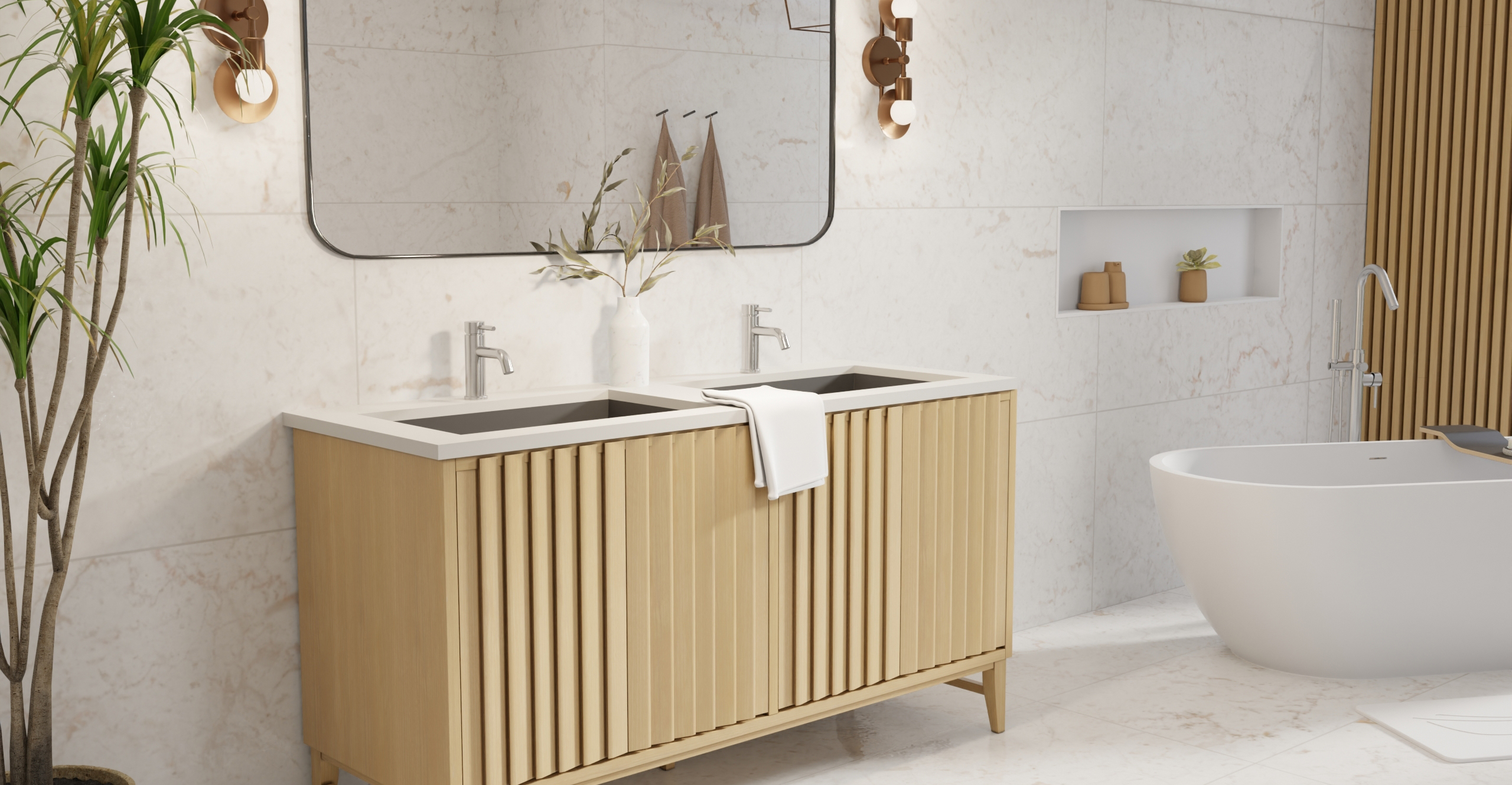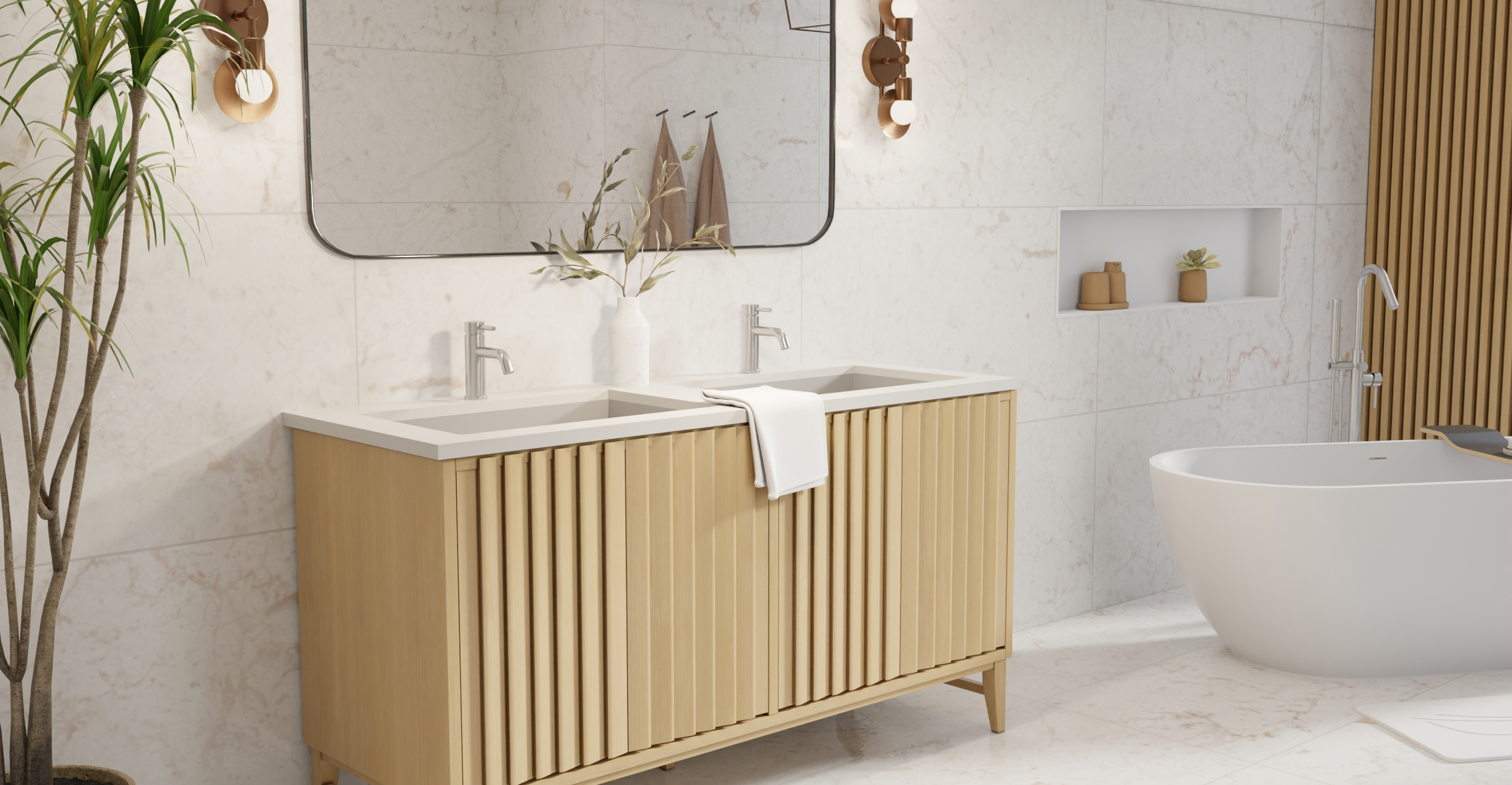 Envision your luxury bathroom with free templates and samples of Badeloft’s stone resin material.