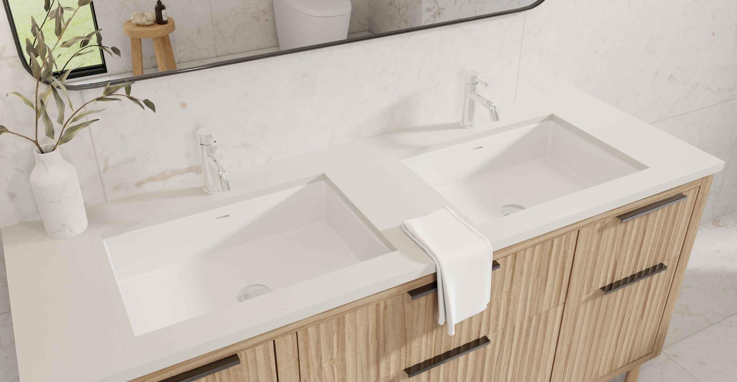 Envision your luxury bathroom with free templates and samples of Badeloft’s stone resin material.