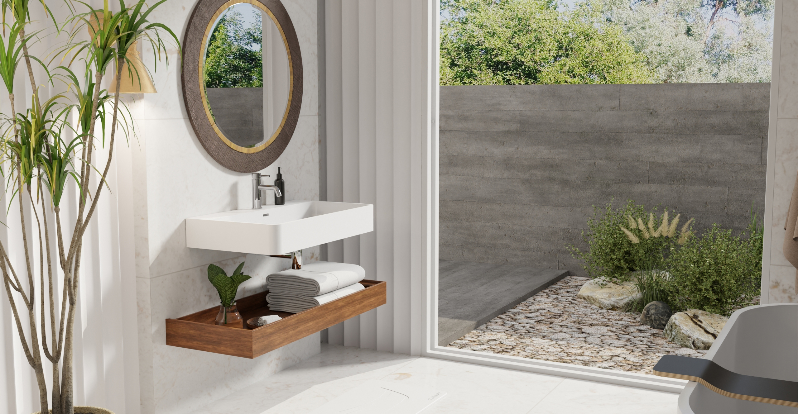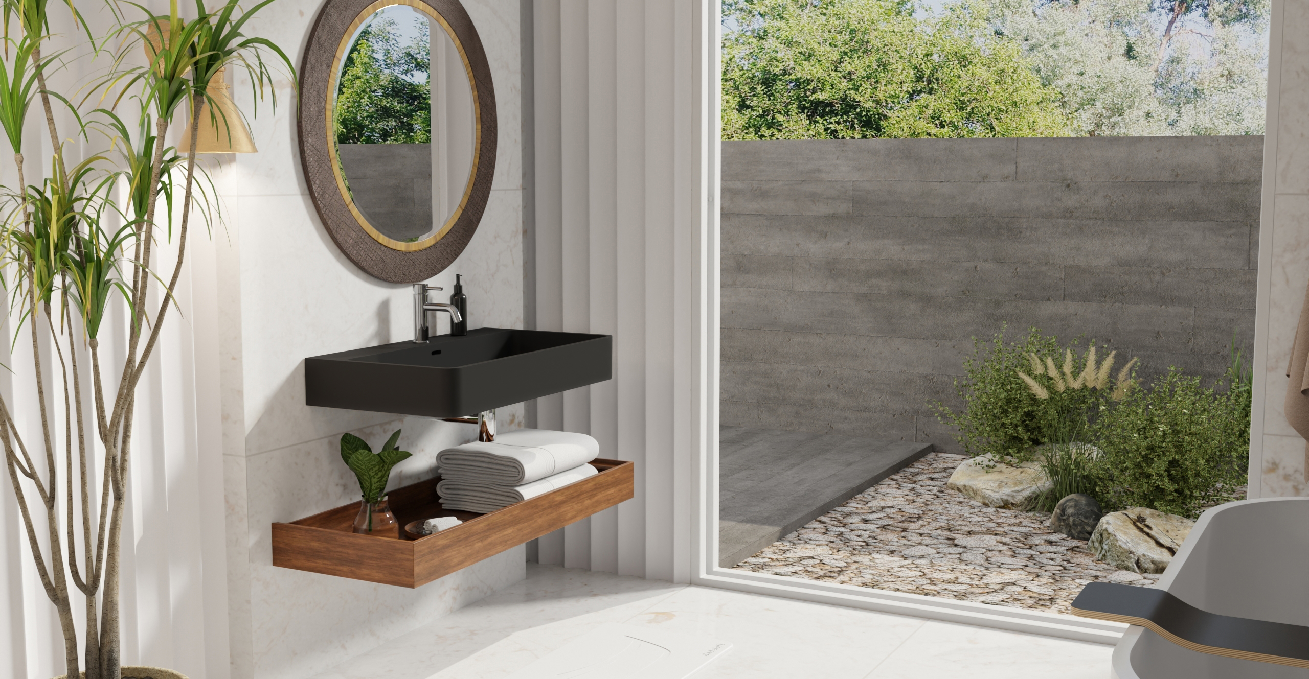 Envision your luxury bathroom with free templates and samples of Badeloft’s stone resin material.