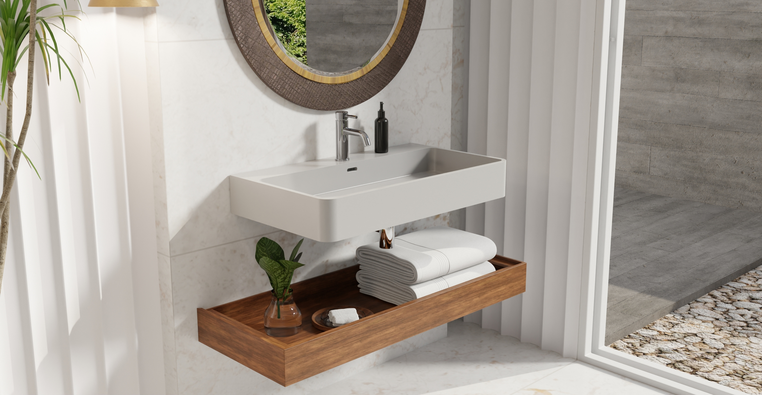 Badeloft sinks are meticulously crafted from premium stone resin (CaMg(CO3)2), chosen for its exceptional strength and elegance. The high calcium carbonate content ensures a smooth, non-porous surface that is as durable as it is stunning. Once you experience the quality and feel of stone resin, you’ll understand why it’s the ideal material for your bathroom.