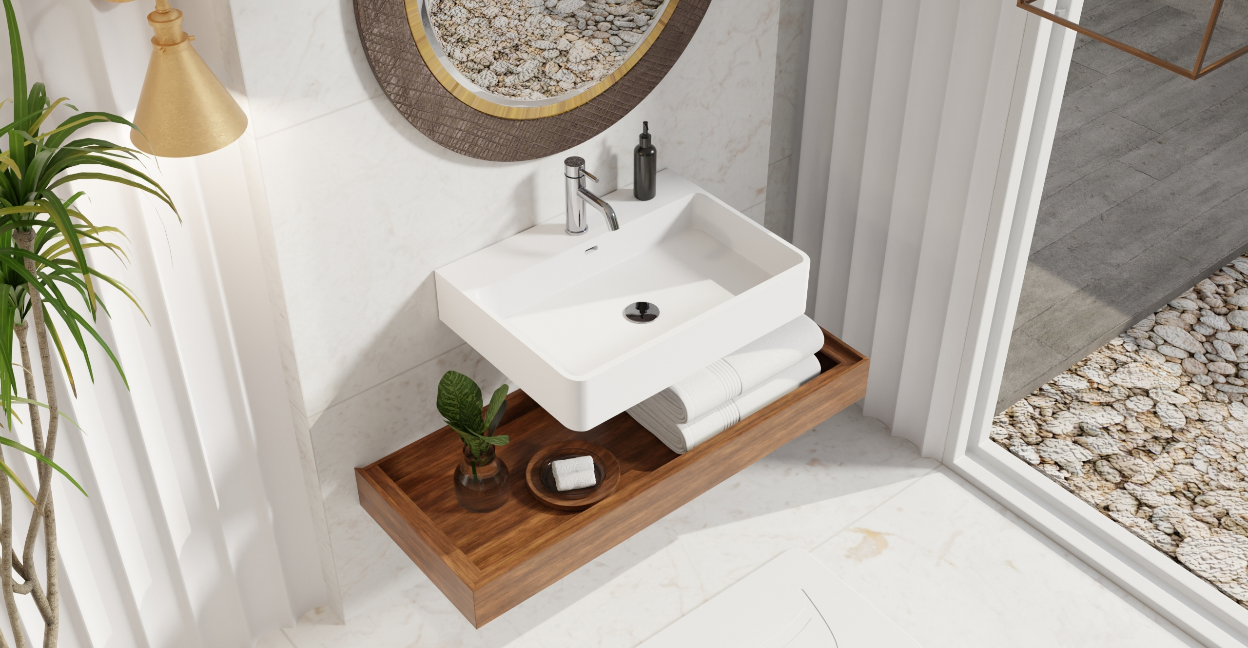 Stone resin sinks offer a minimalist and modern design that elevates any bathroom. The material’s seamless, non-porous surface resists stains, scratches, and bacteria, ensuring easy cleaning and a hygienic environment. With excellent durability and heat retention, these sinks are as practical as they are stylish. Their sleek, sloped design directs water effortlessly while adding a luxurious touch that’s built to last a lifetime.