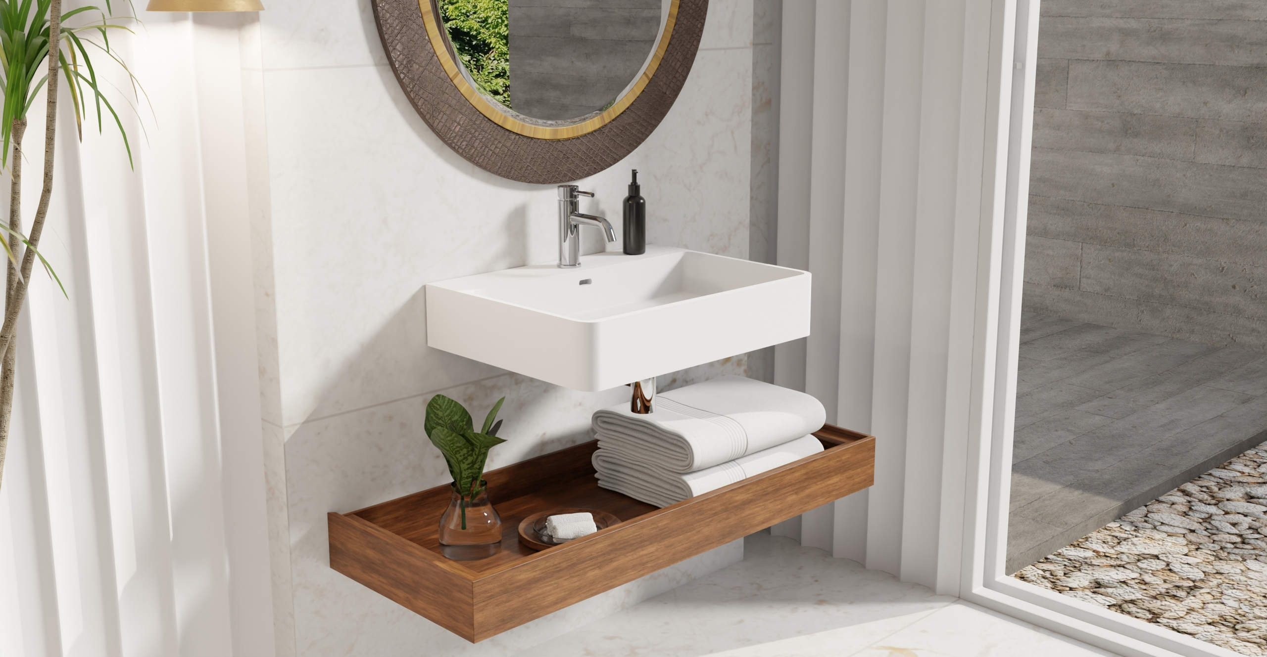 Envision your luxury bathroom with free templates and samples of Badeloft’s stone resin material.