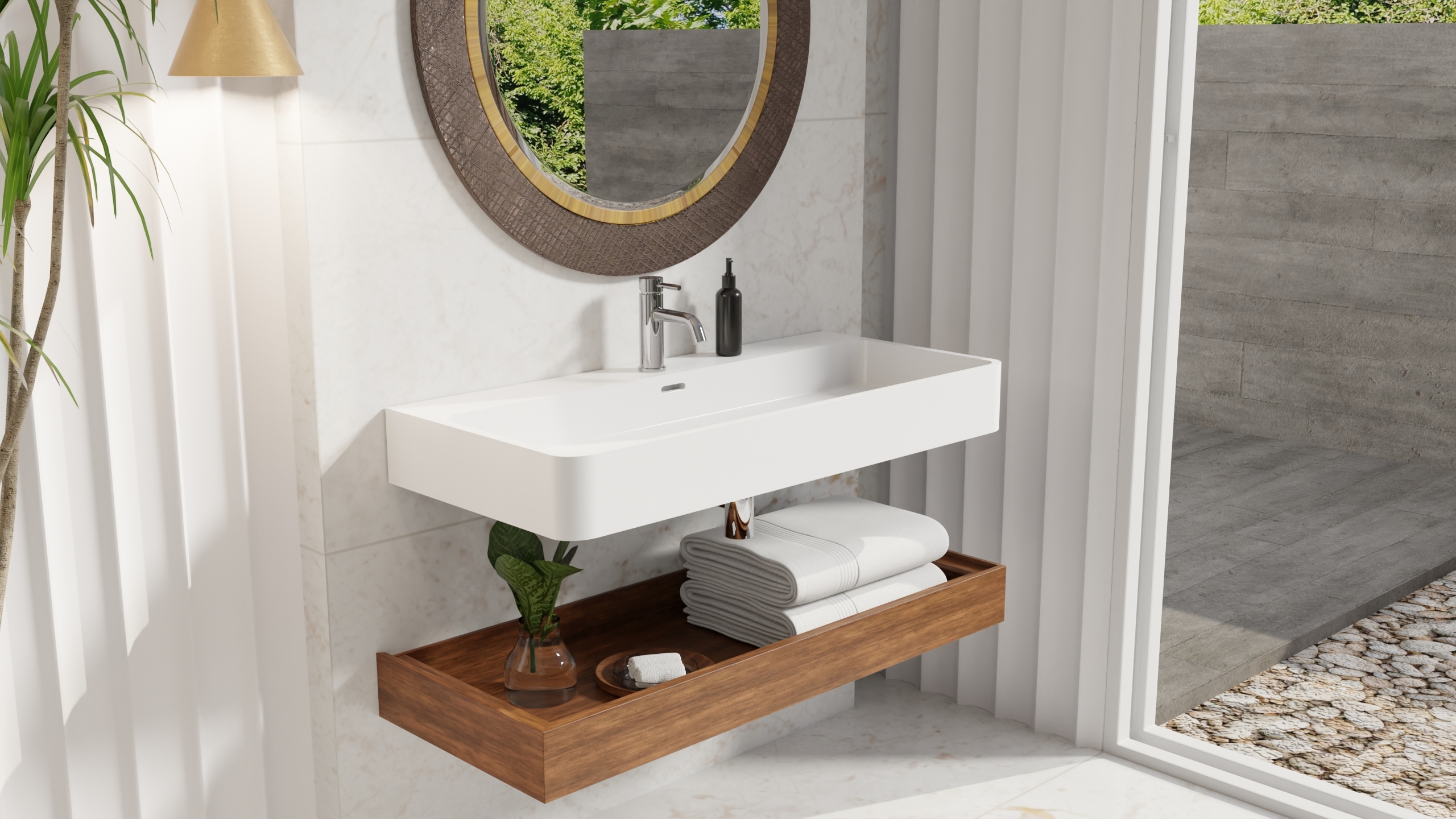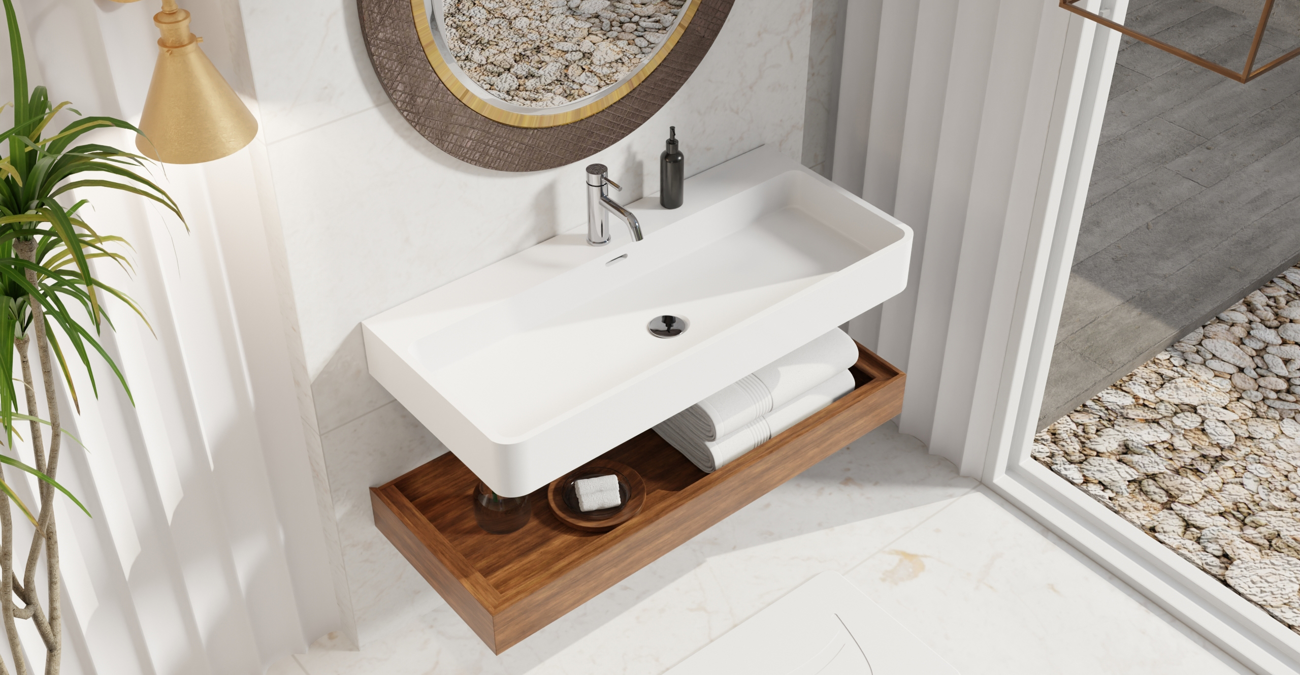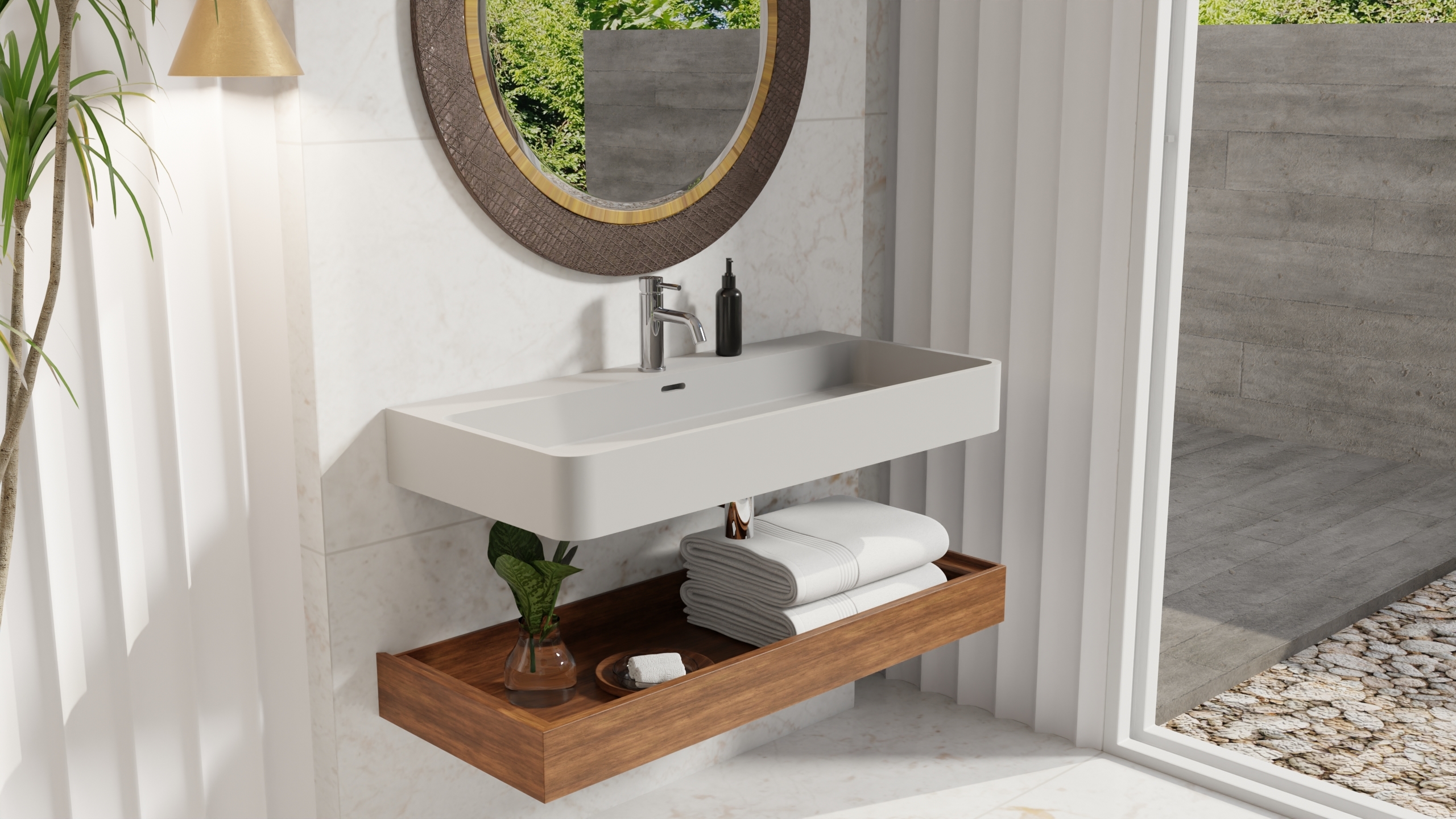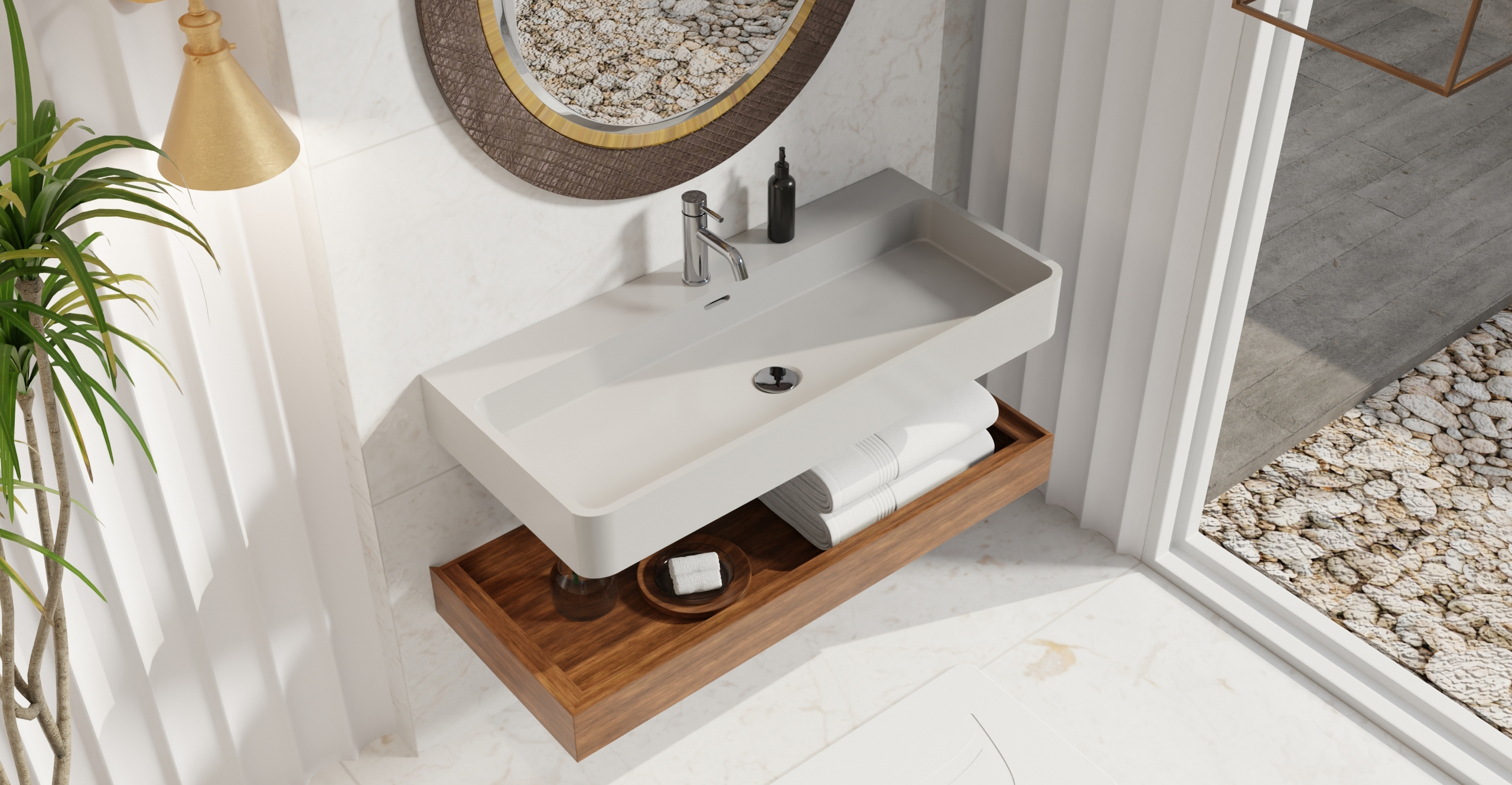 Badeloft sinks are meticulously crafted from premium stone resin (CaMg(CO3)2), chosen for its exceptional strength and elegance. The high calcium carbonate content ensures a smooth, non-porous surface that is as durable as it is stunning. Once you experience the quality and feel of stone resin, you’ll understand why it’s the ideal material for your bathroom.