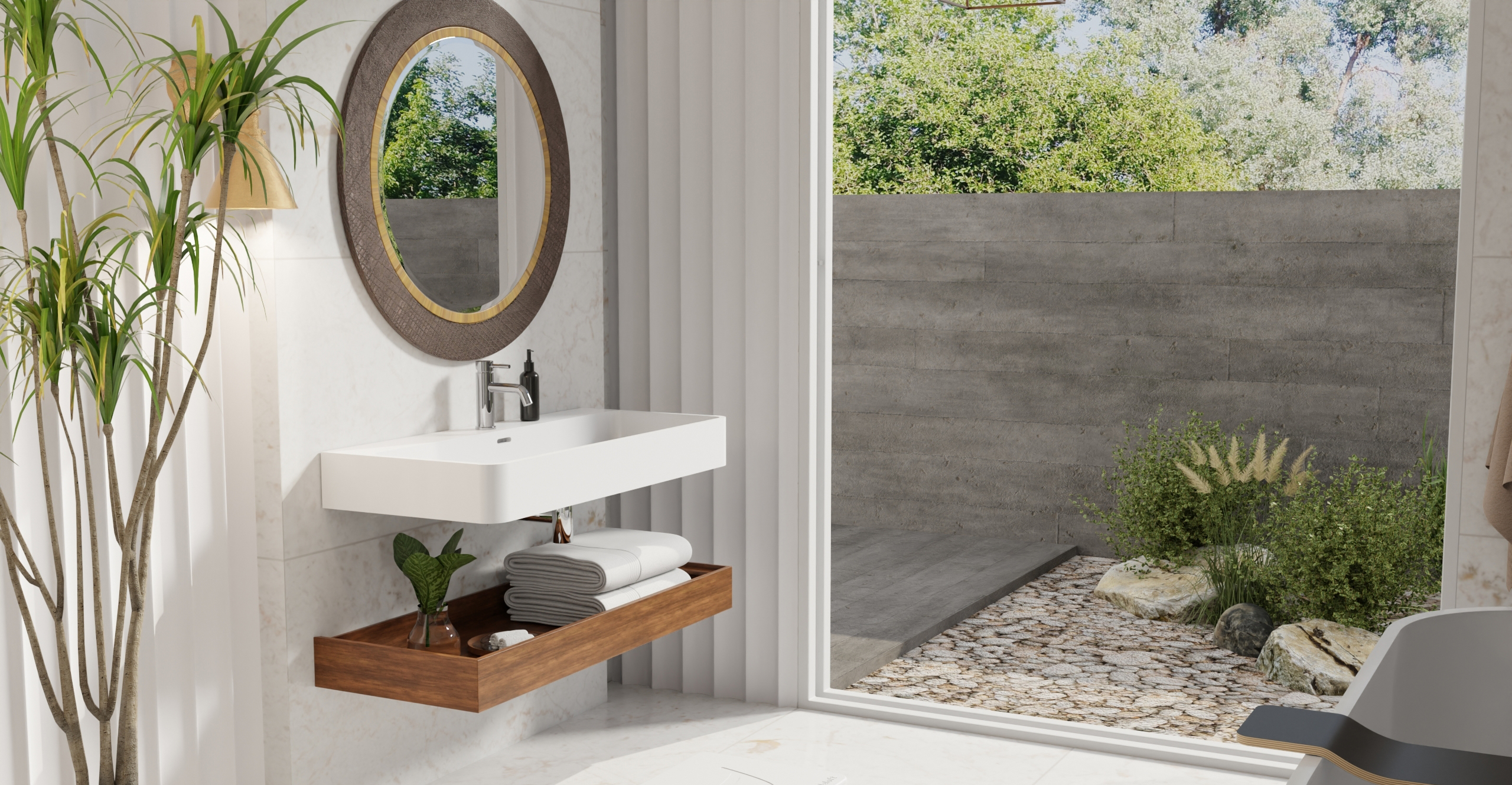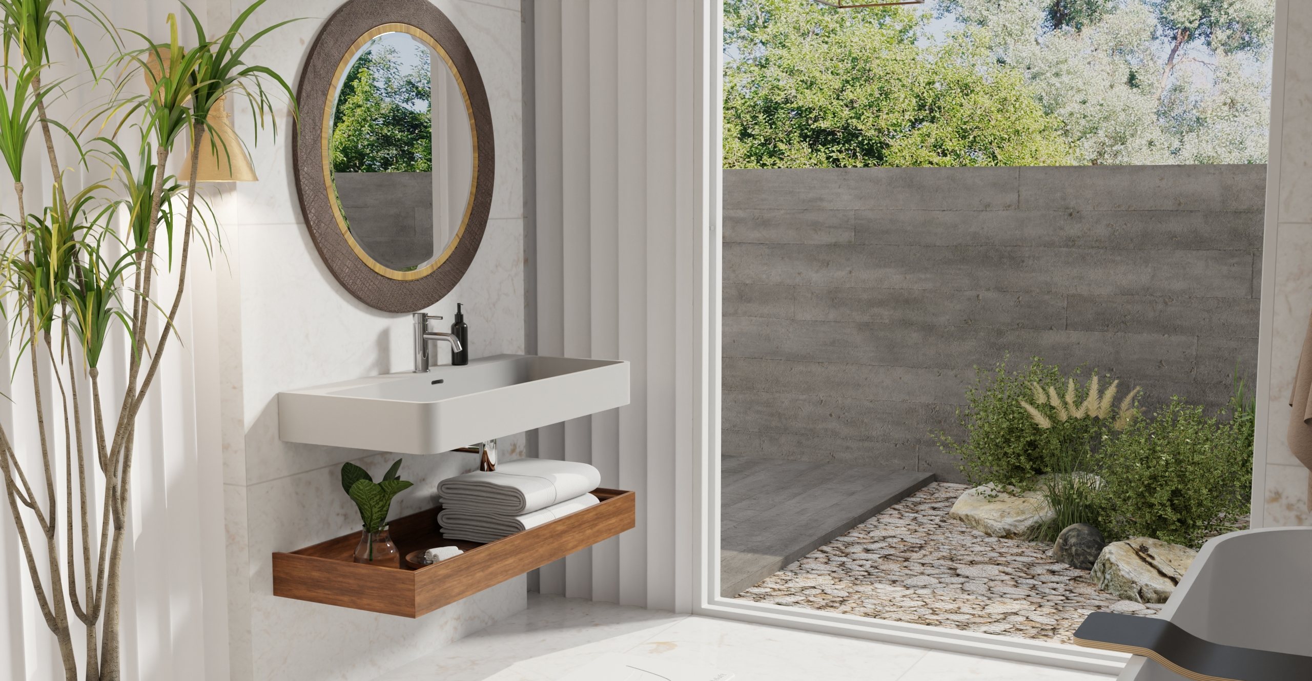 Envision your luxury bathroom with free templates and samples of Badeloft’s stone resin material.