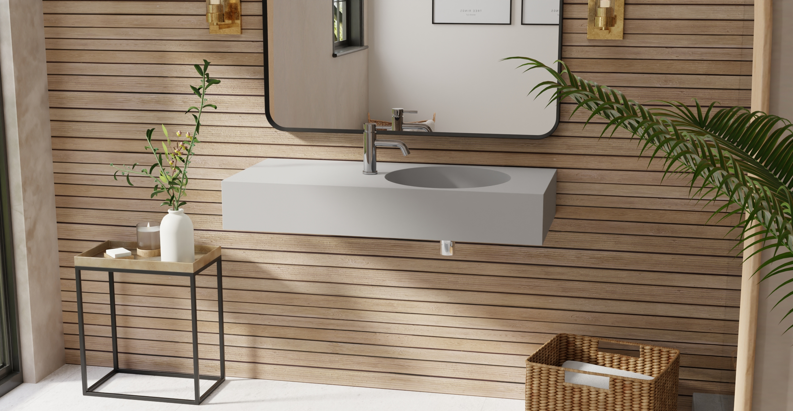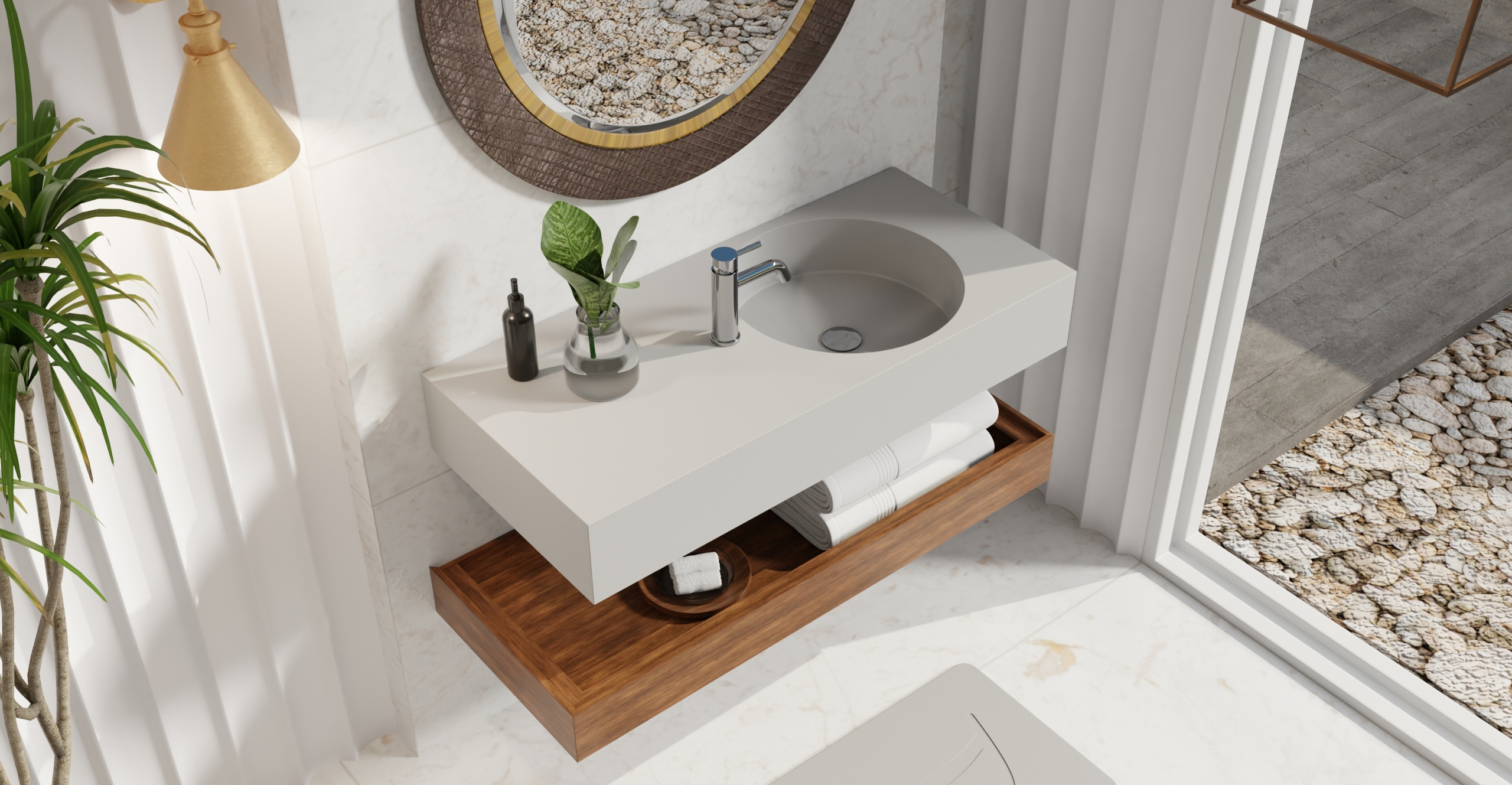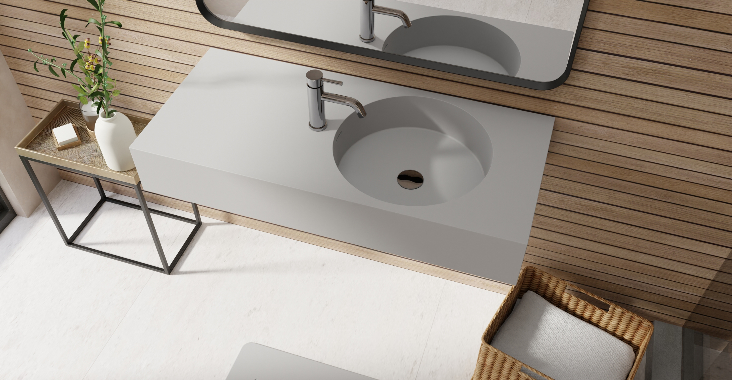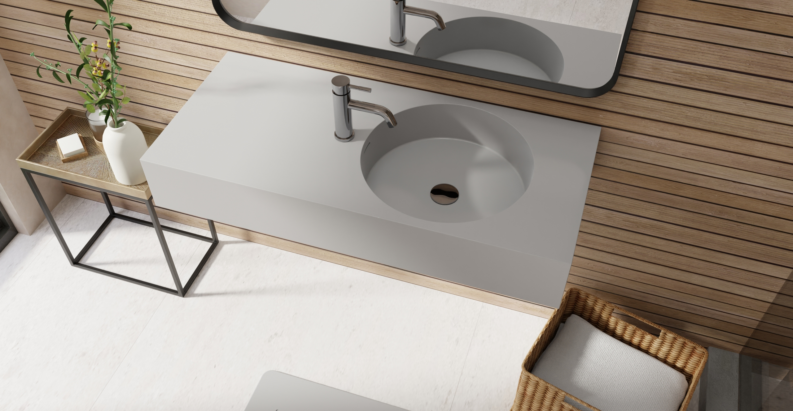 Envision your luxury bathroom with free templates and samples of Badeloft’s stone resin material.