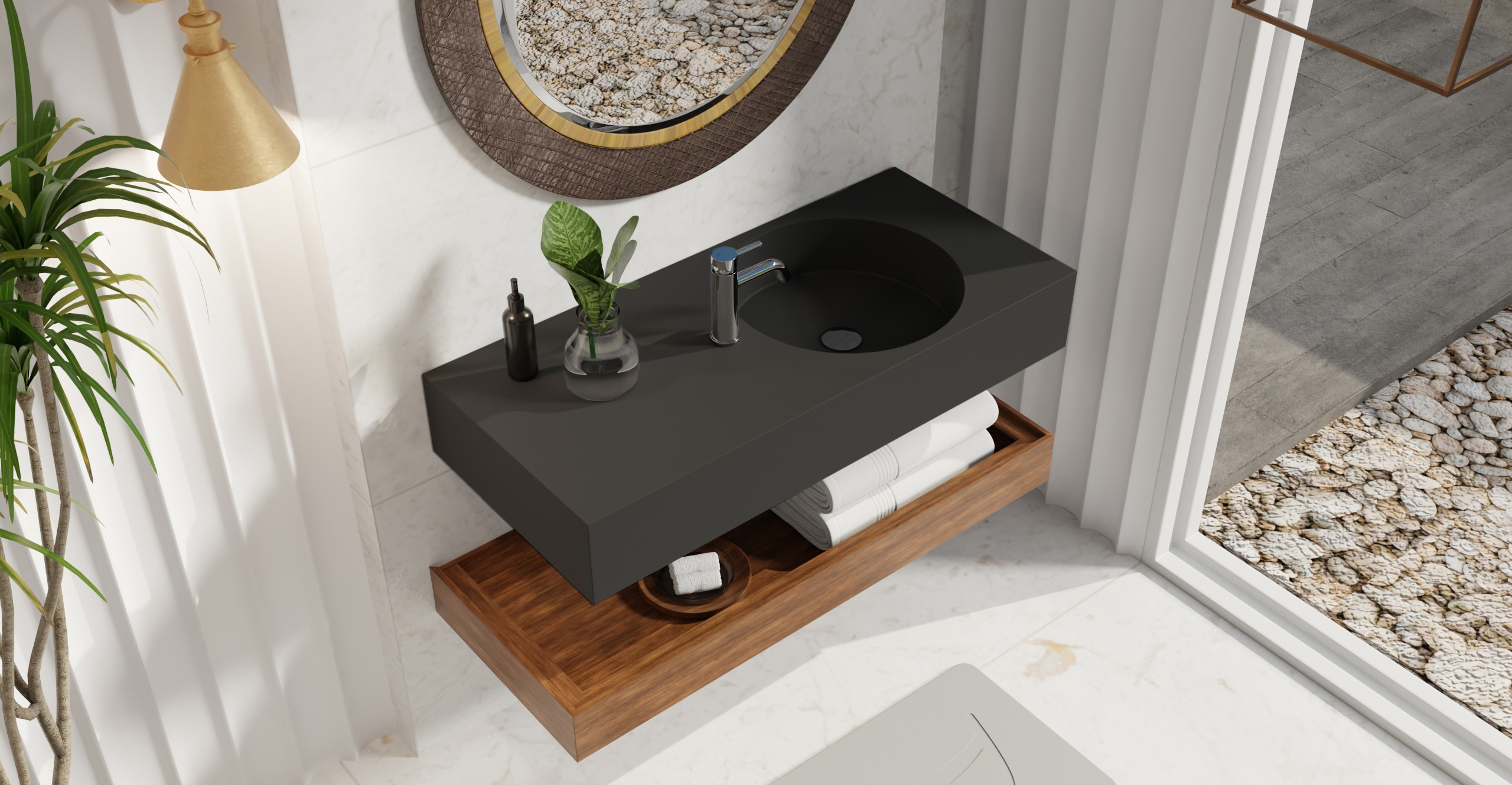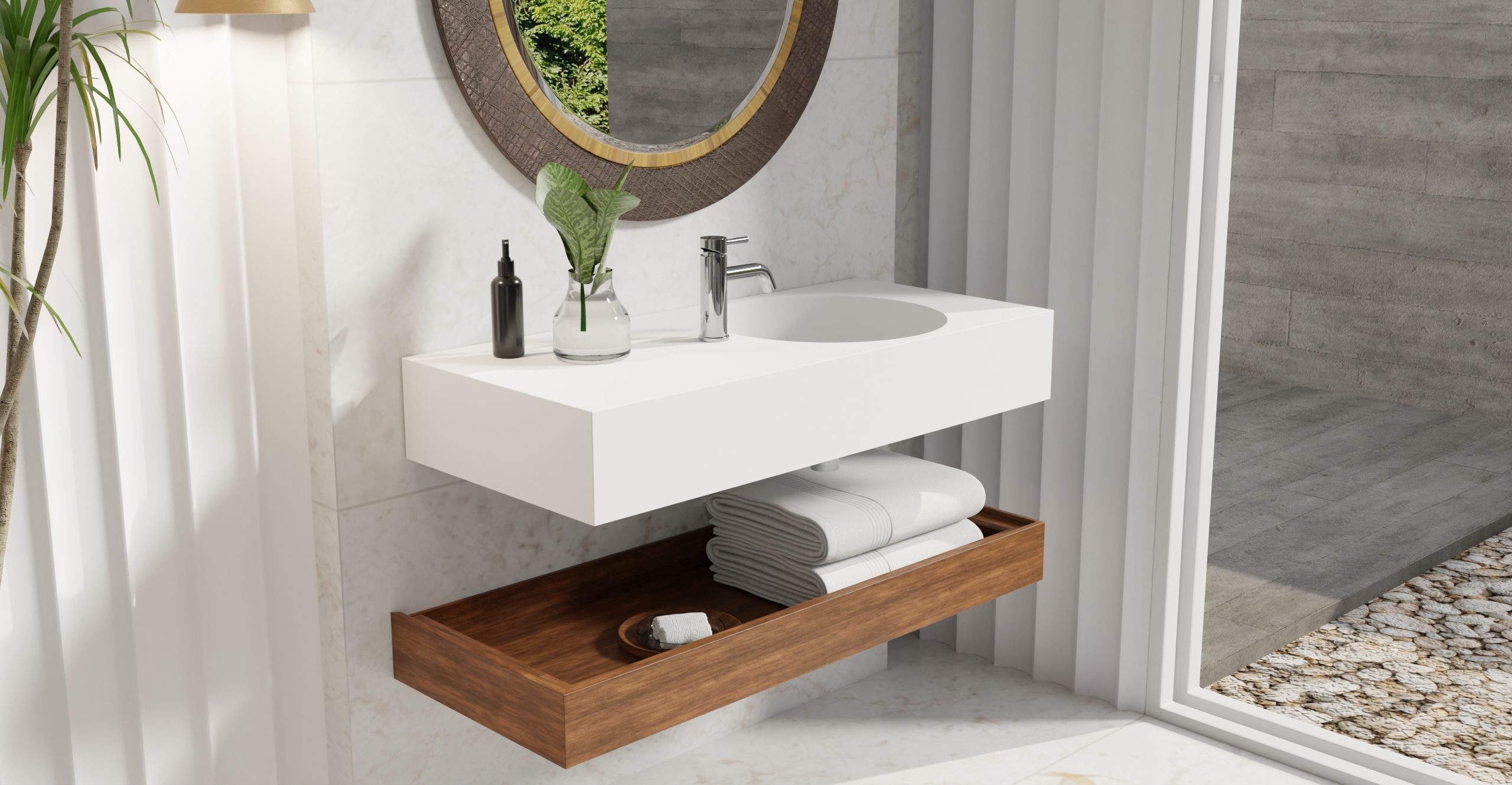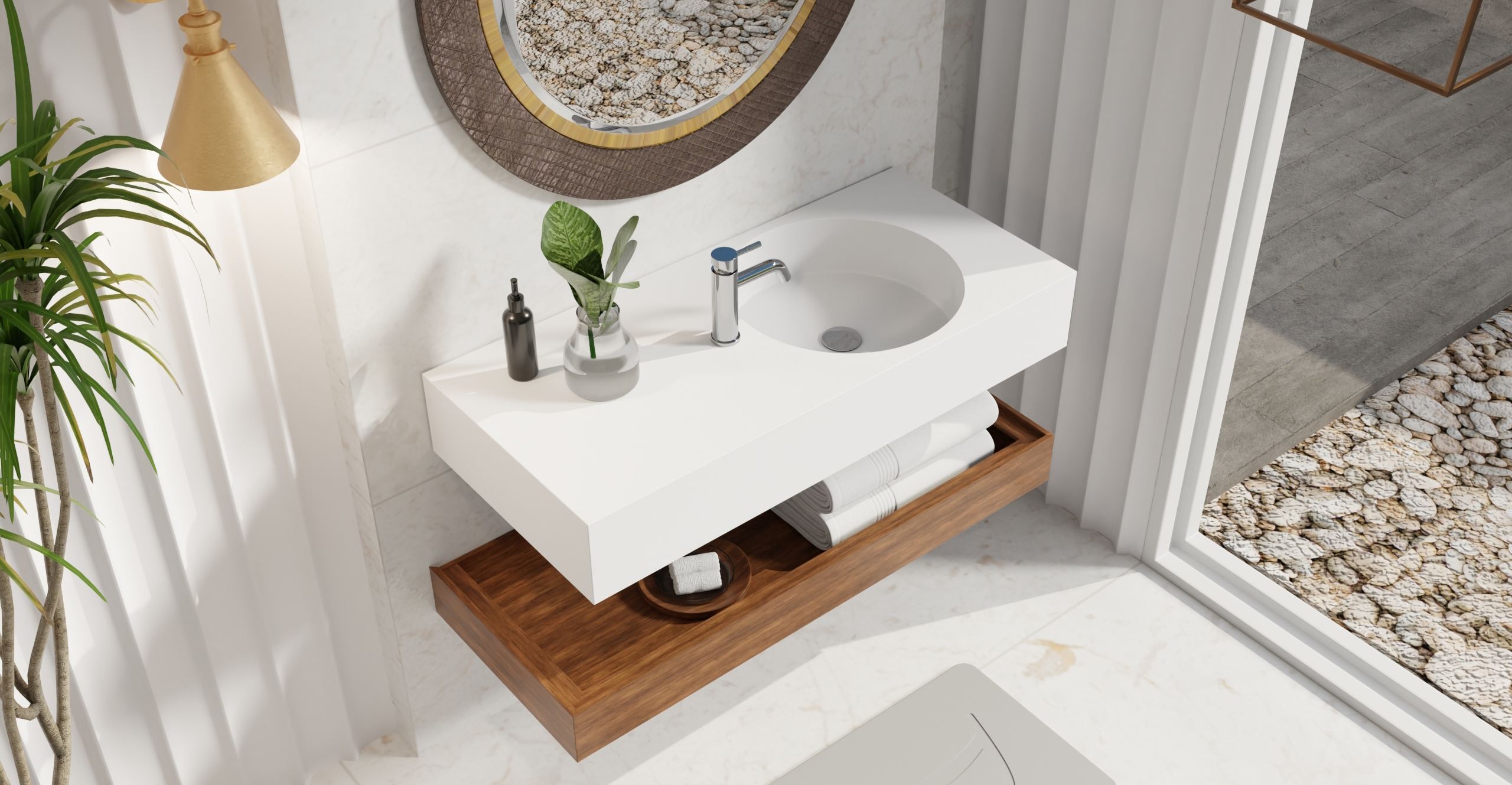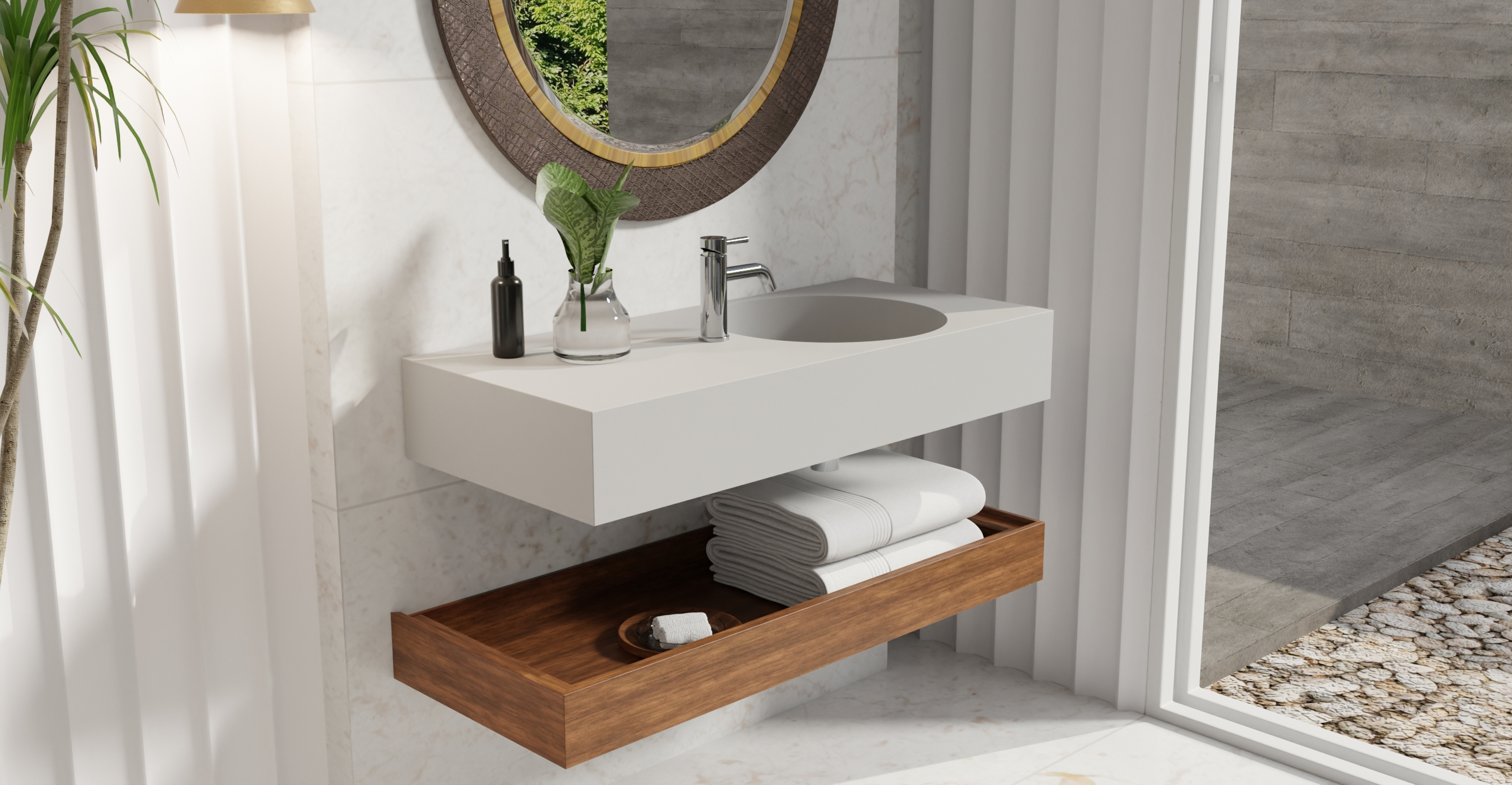 Envision your luxury bathroom with free templates and samples of Badeloft’s stone resin material.