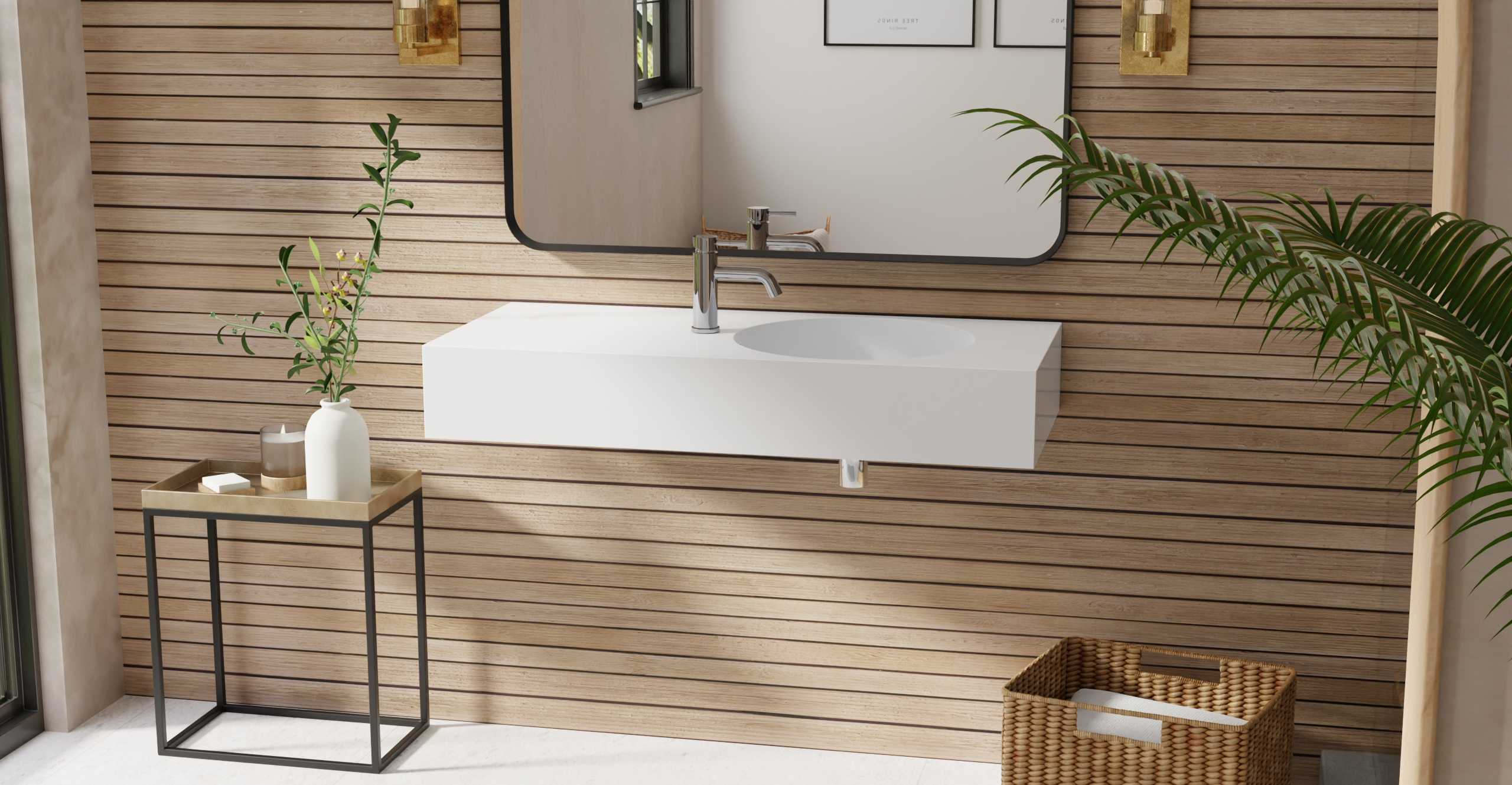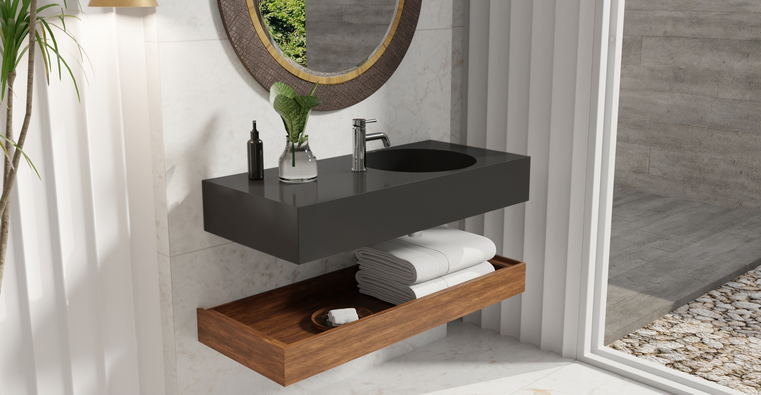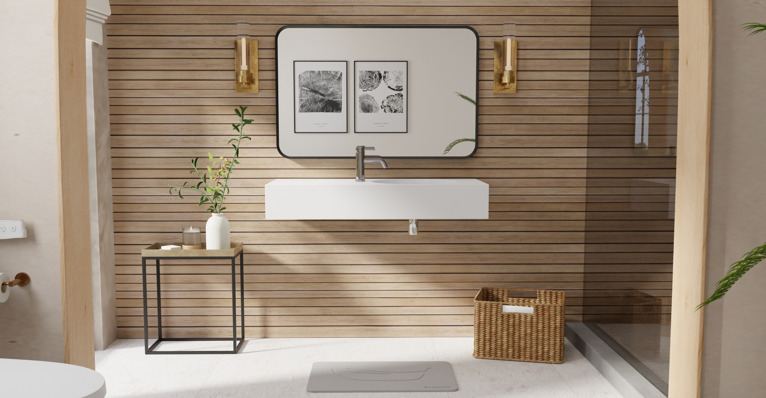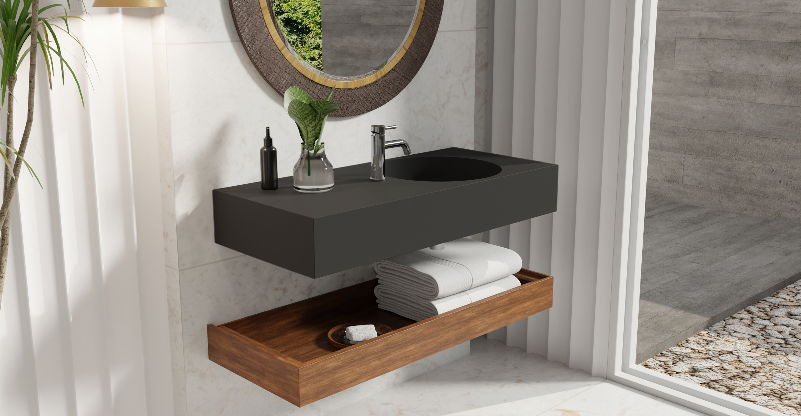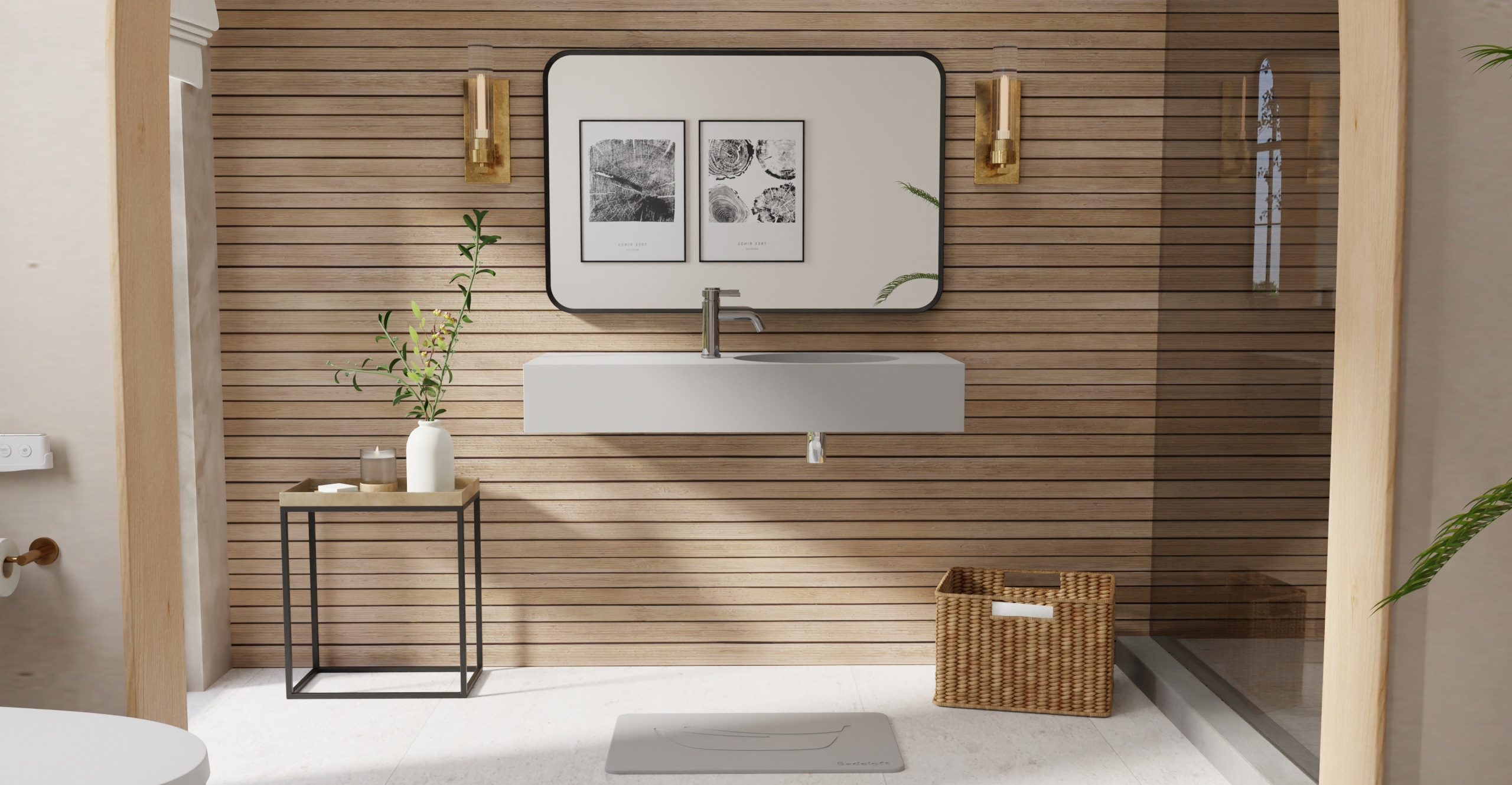 Envision your luxury bathroom with free templates and samples of Badeloft’s stone resin material.