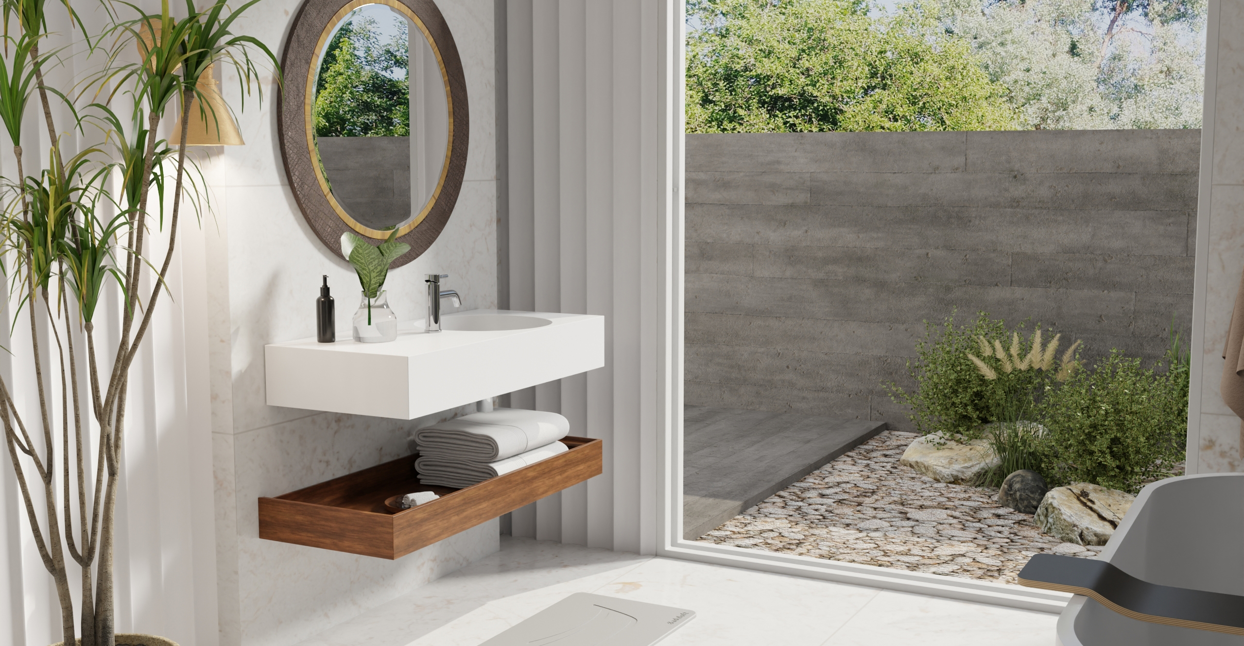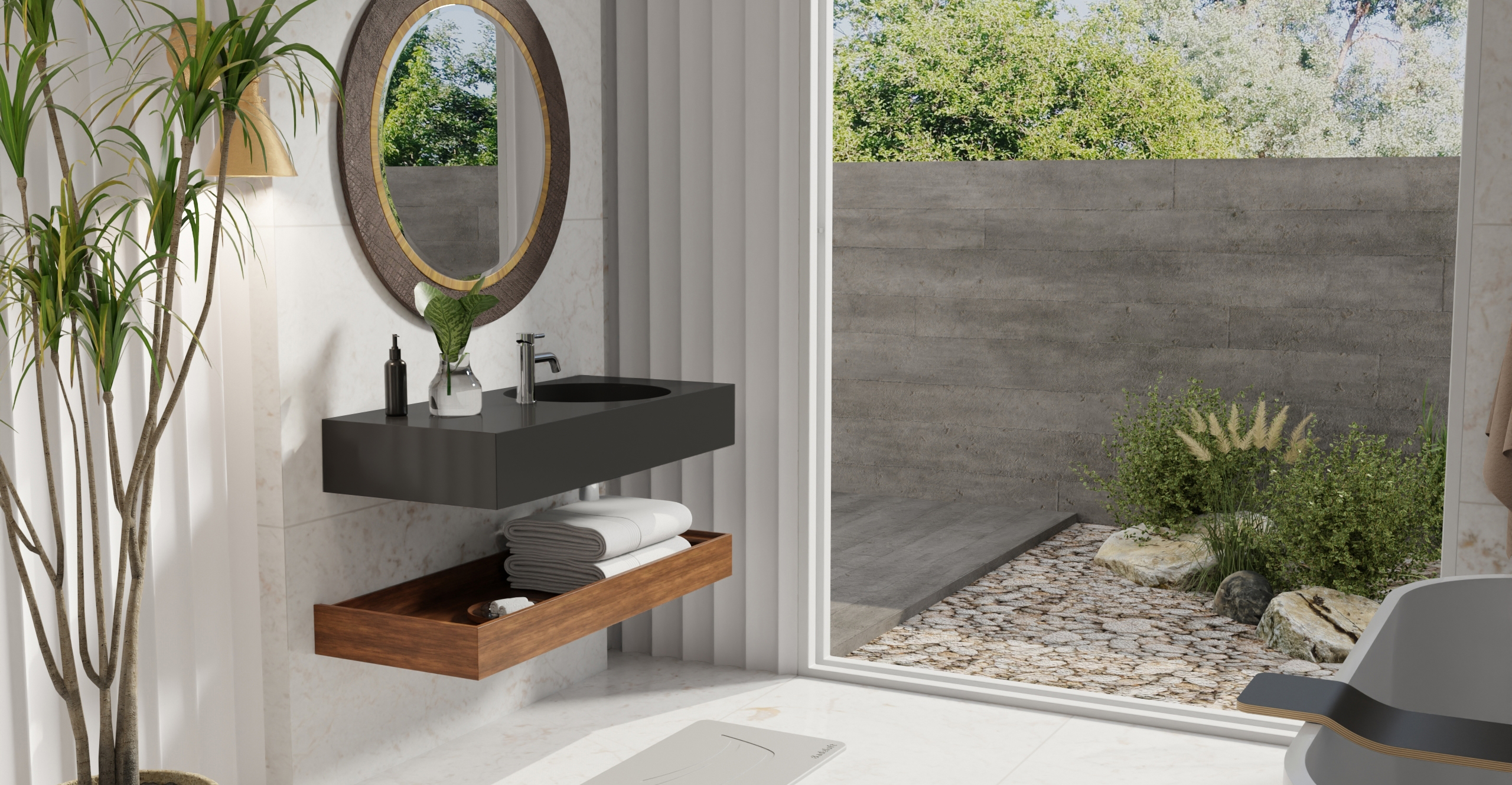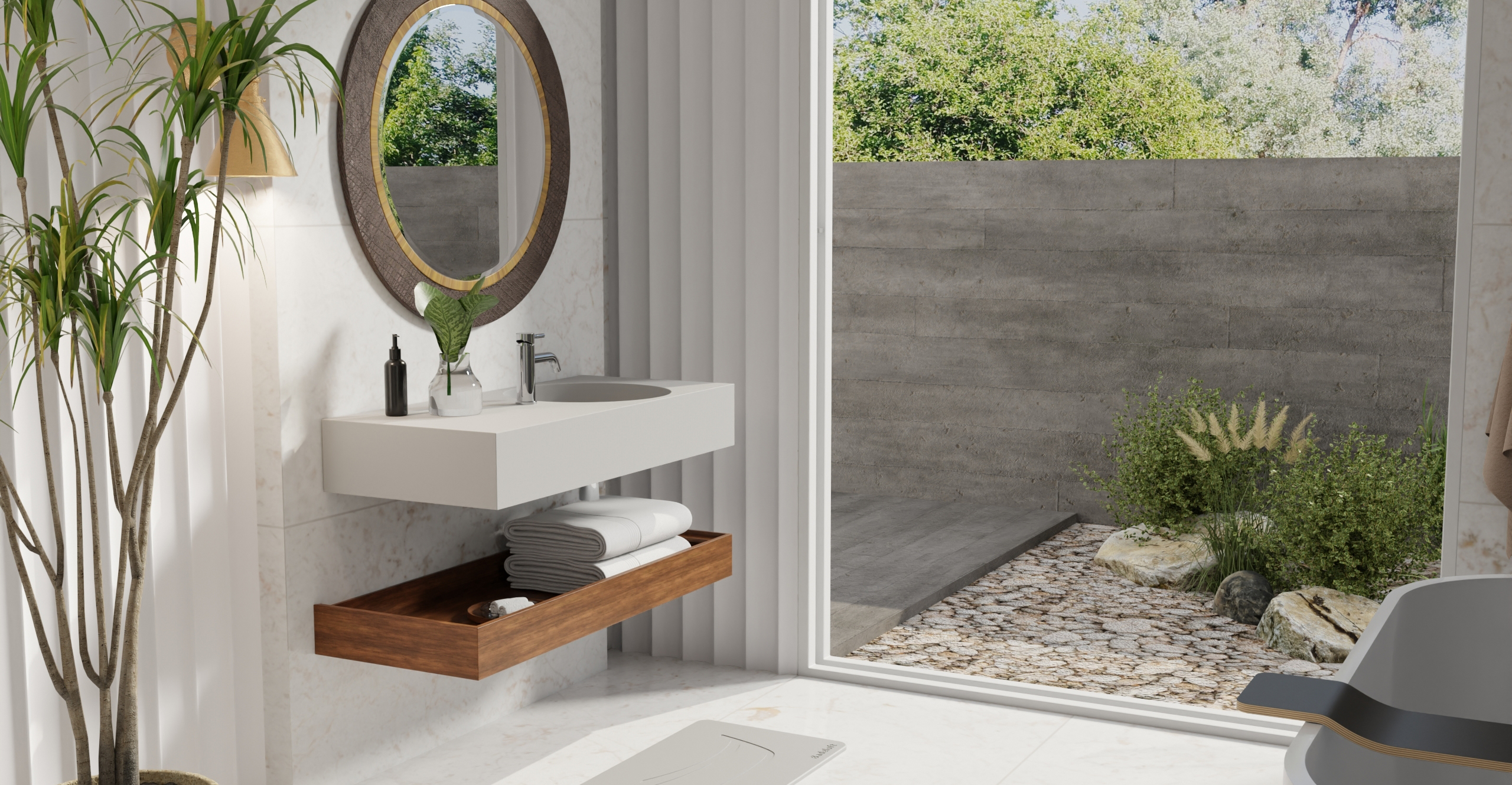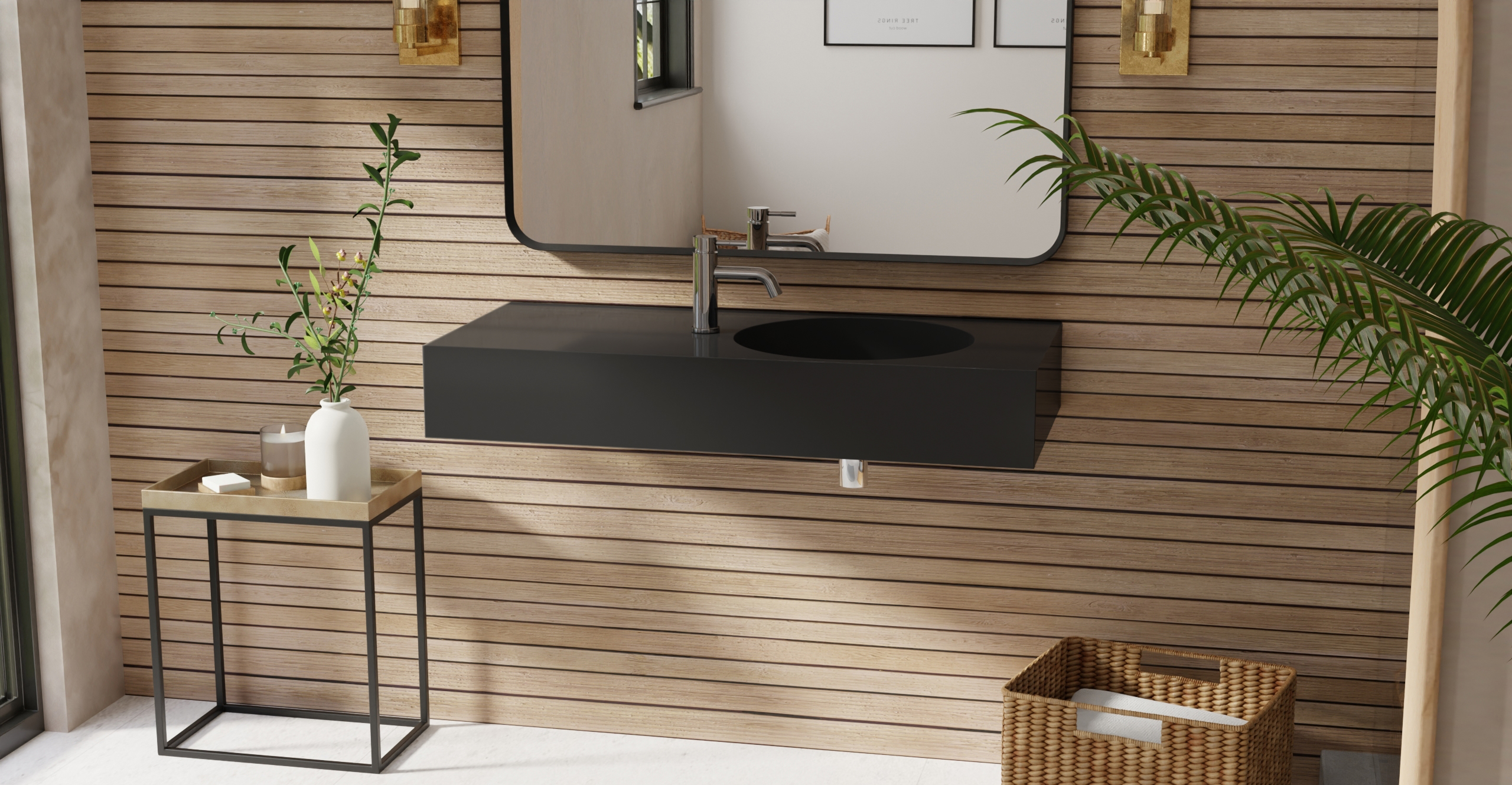 Envision your luxury bathroom with free templates and samples of Badeloft’s stone resin material.