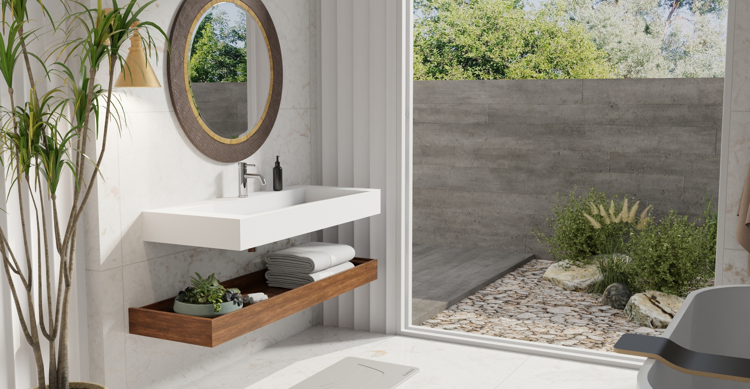 Envision your luxury bathroom with free templates and samples of Badeloft’s stone resin material.