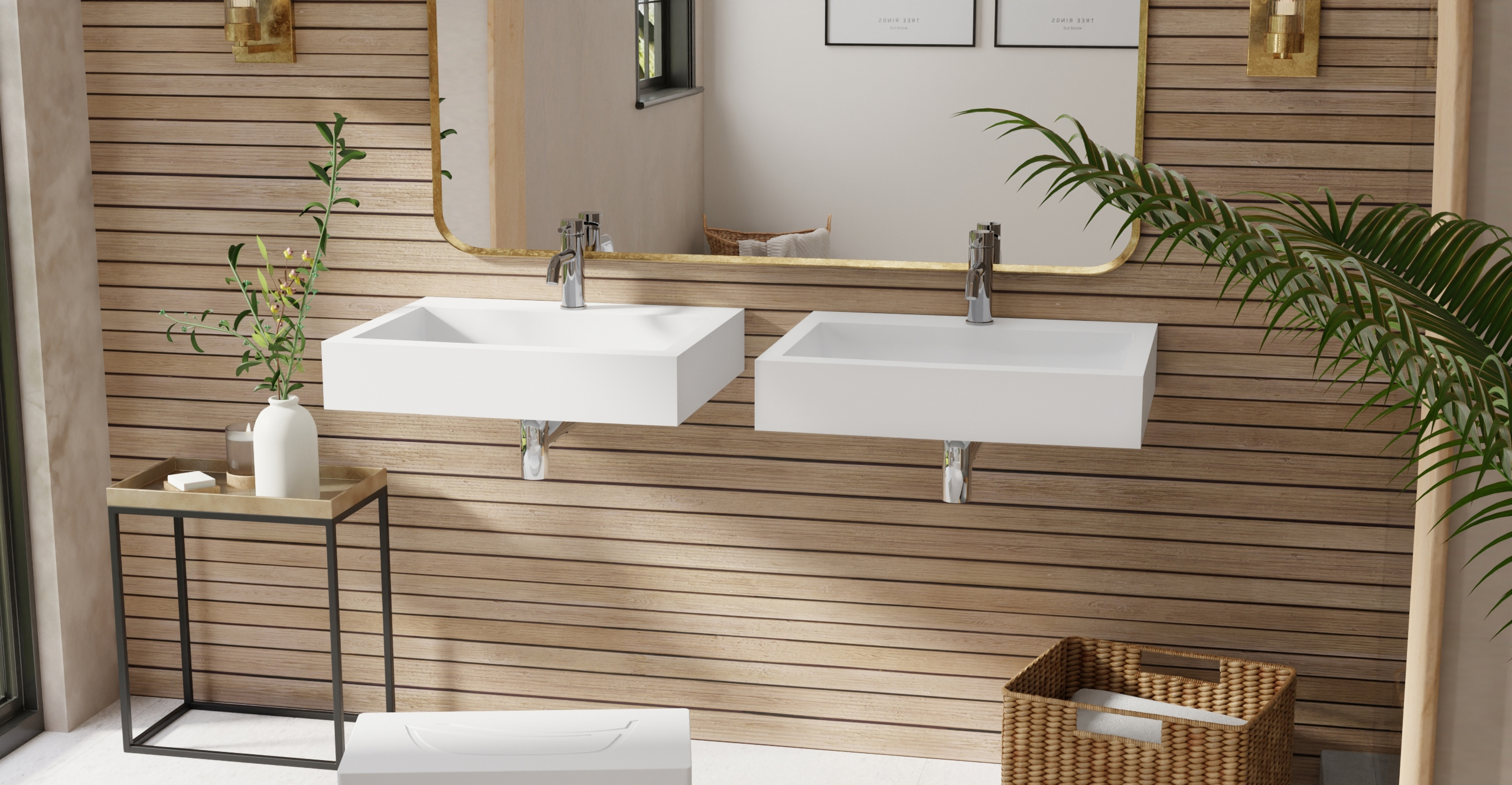 Envision your luxury bathroom with free templates and samples of Badeloft’s stone resin material.